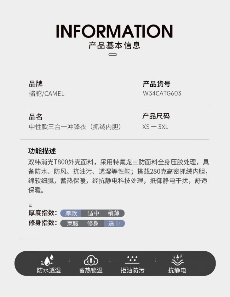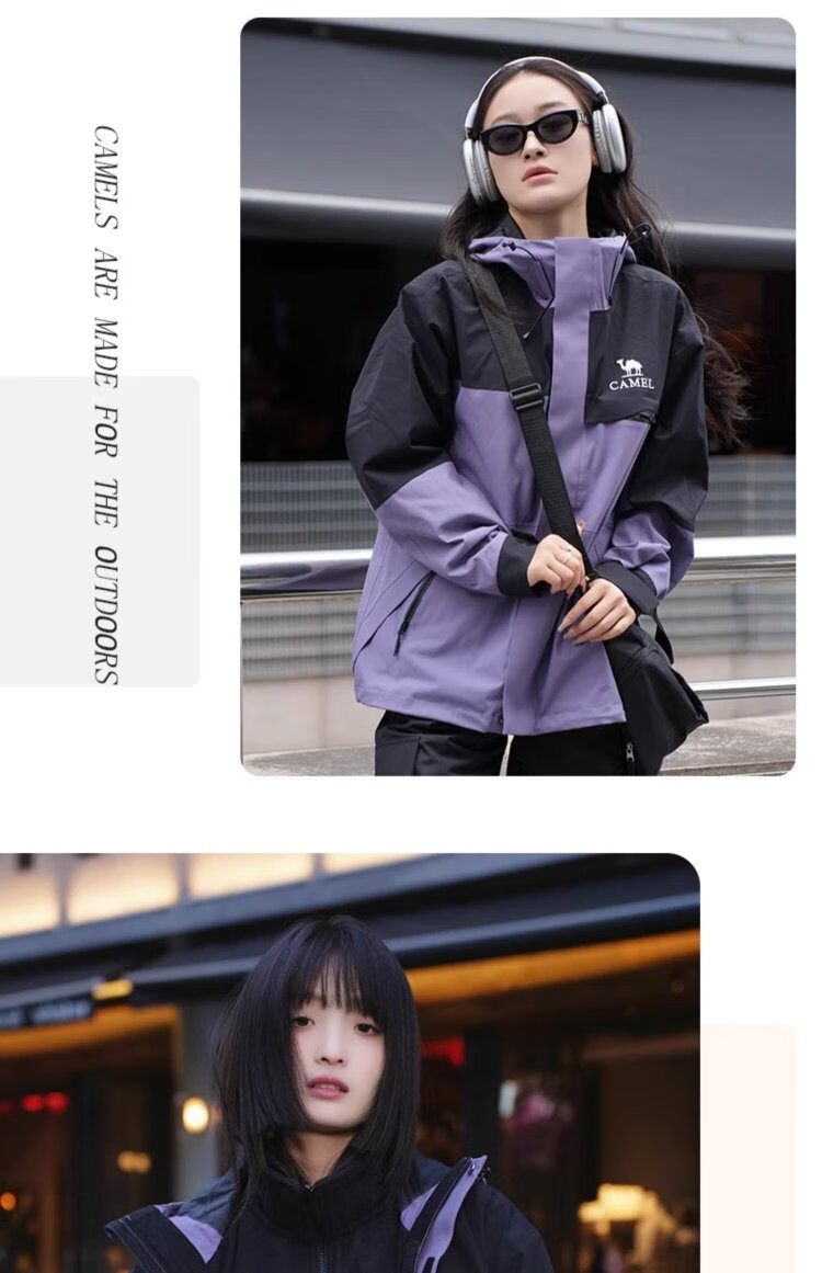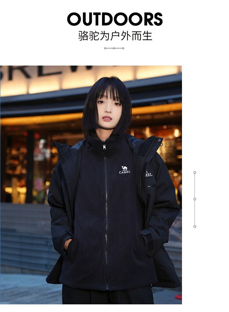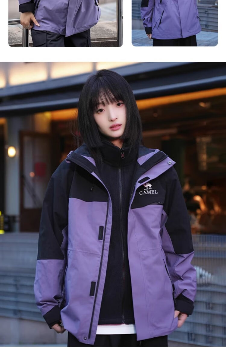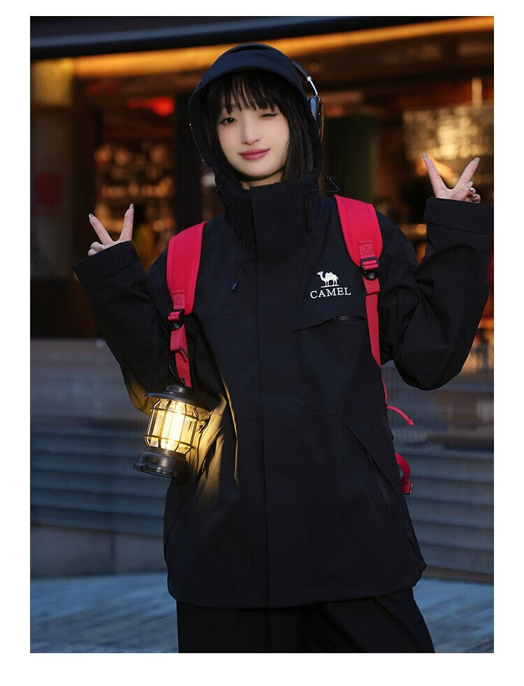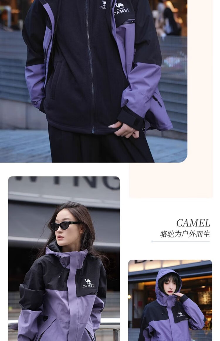 Camel (CAMEL) Women's Three-Proof Orange Jacket Three-in-One Spring and Autumn New Mountaineering Windproof and Waterproof Casual Jacket