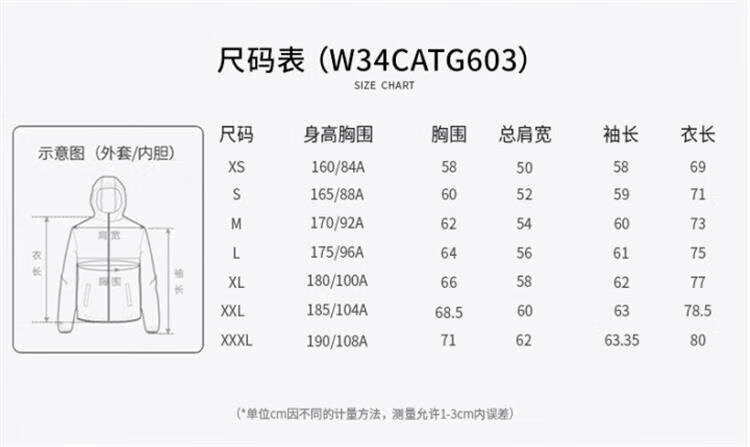 China (cm) 165 / 88-90 170 / 96-98 175 / 108-110 180 / 118-122 185 / 126-130