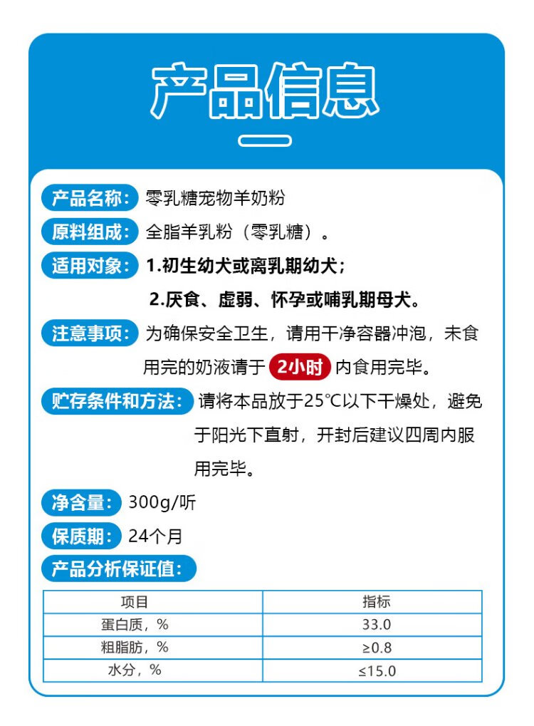 Cute Pet Star Dog High Protein Goat Milk Powder 300g Newborn Dogs 0 Lactose Goat Milk Powder Puppies Goat Milk Powder Dog Special Goat Milk Powder