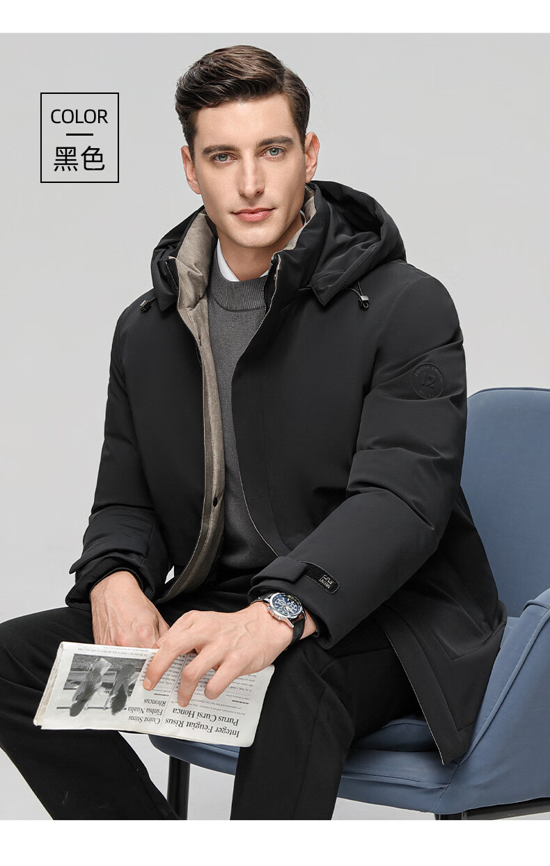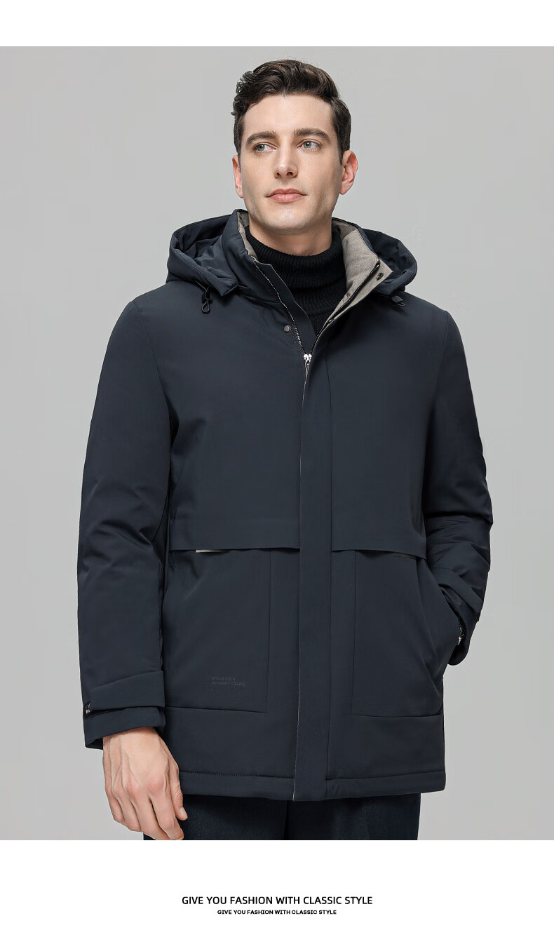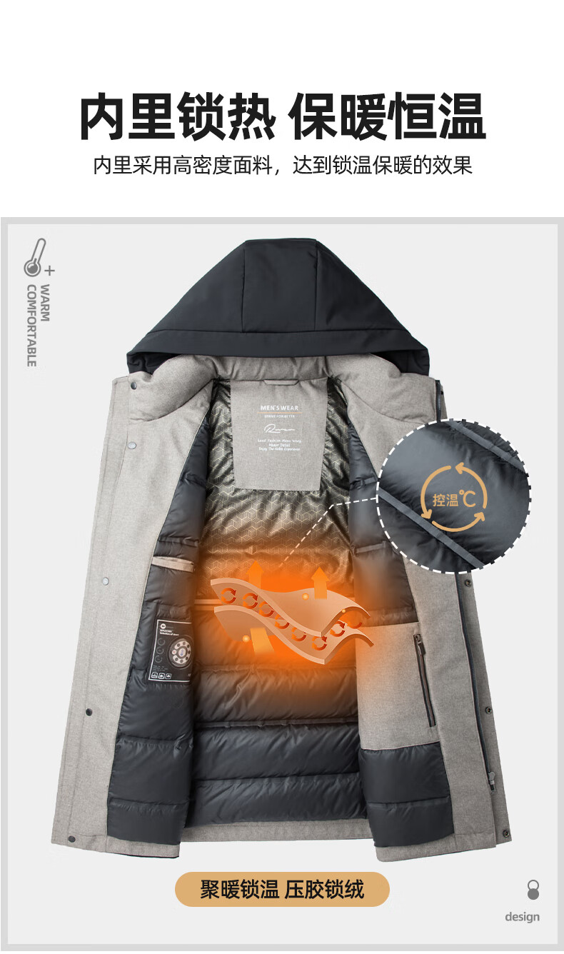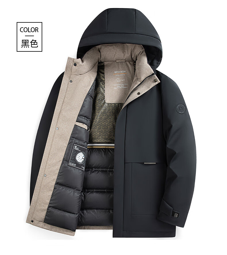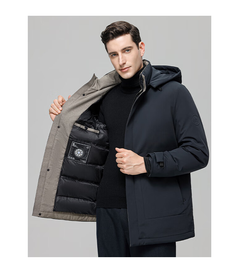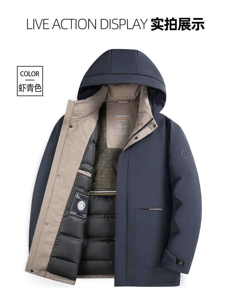 ROMON goose down jacket men's mid-length detachable hooded winter thickened warm jacket 23779 shrimp 180