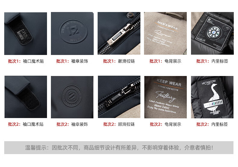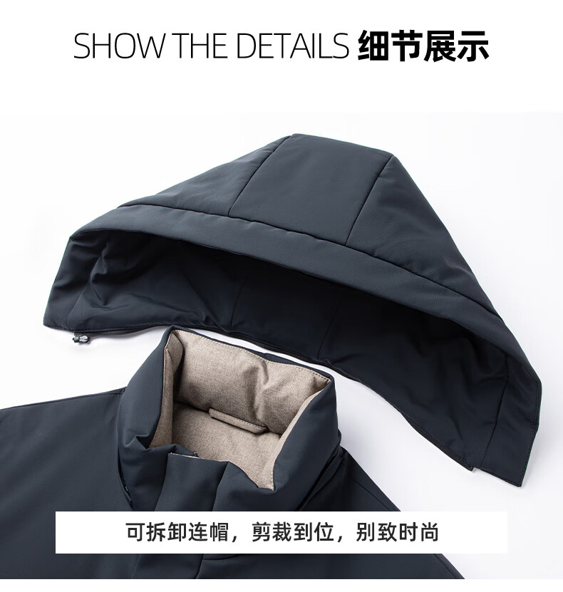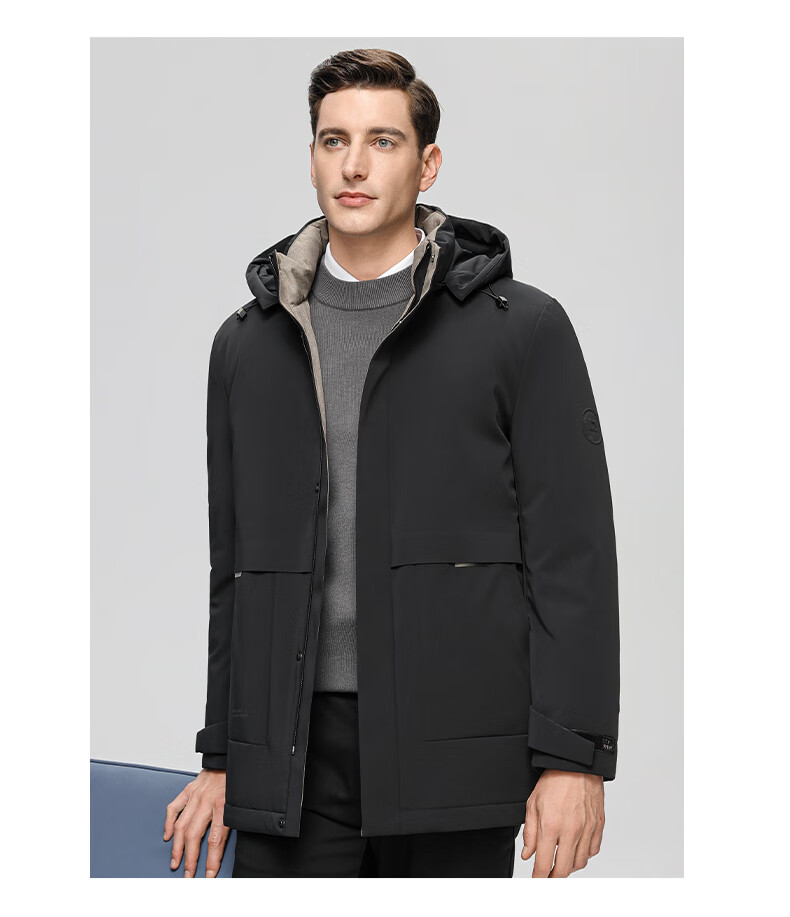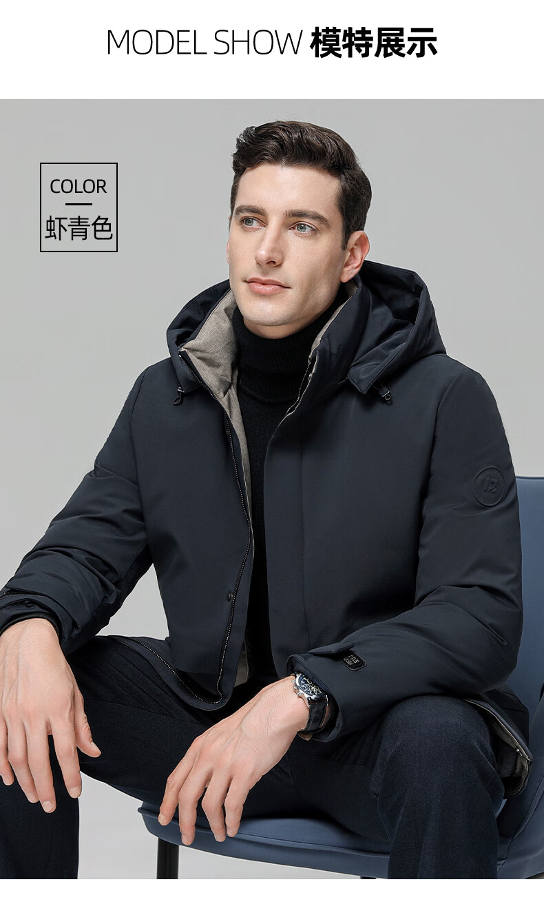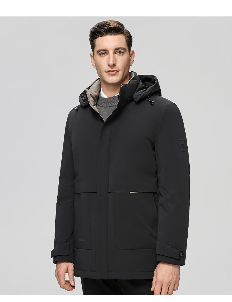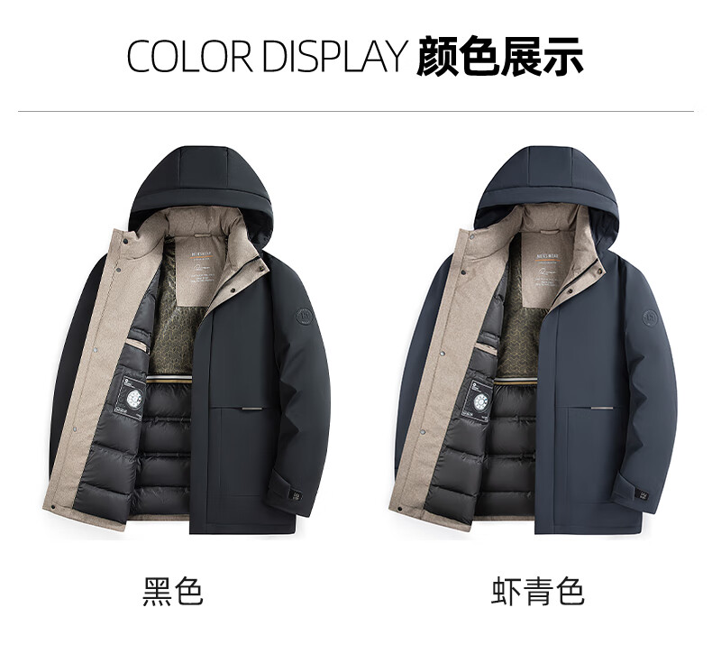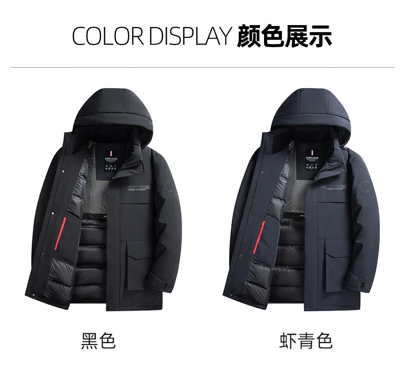ROMON goose down jacket men's mid-length detachable hooded winter thickened warm jacket 23779 shrimp 180