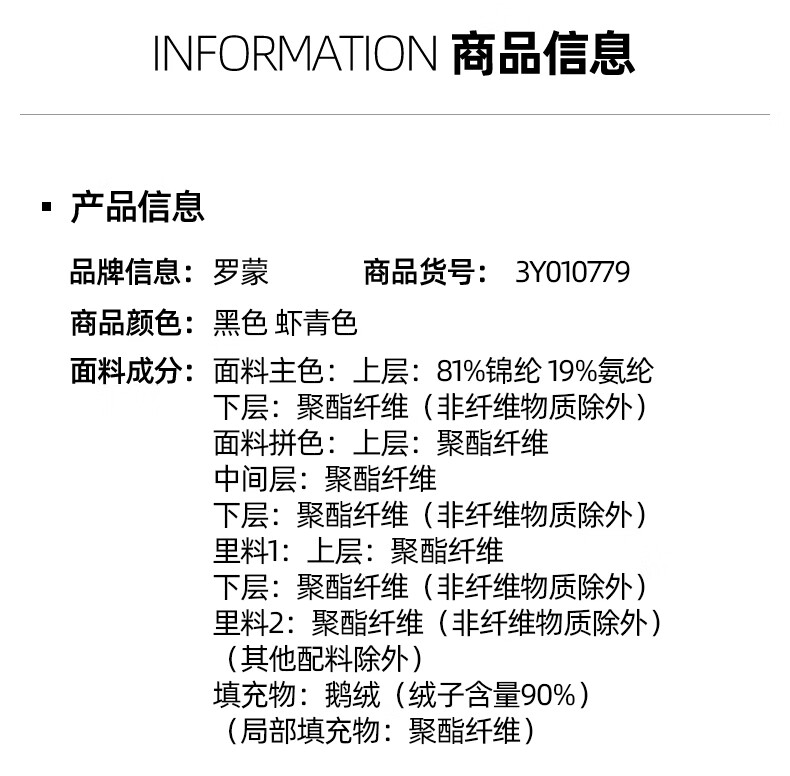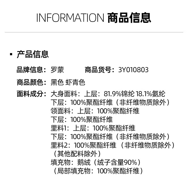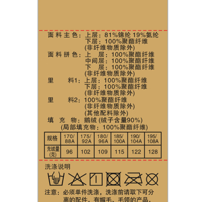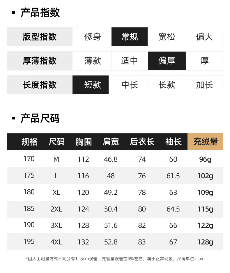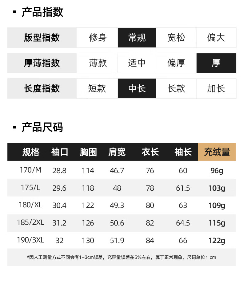 China (cm) 165 / 88-90 170 / 96-98 175 / 108-110 180 / 118-122 185 / 126-130