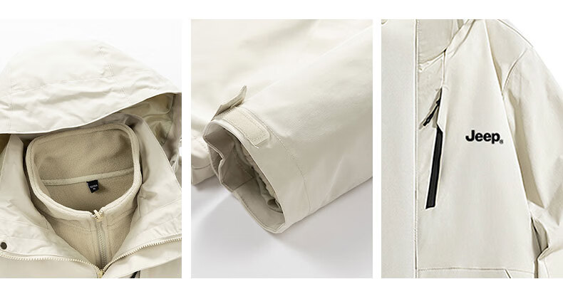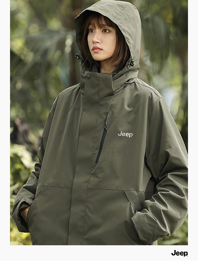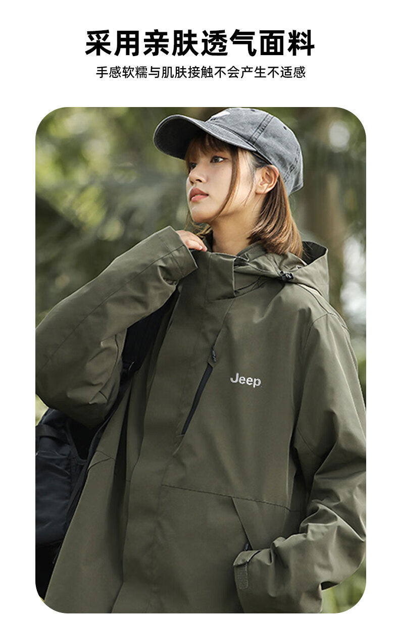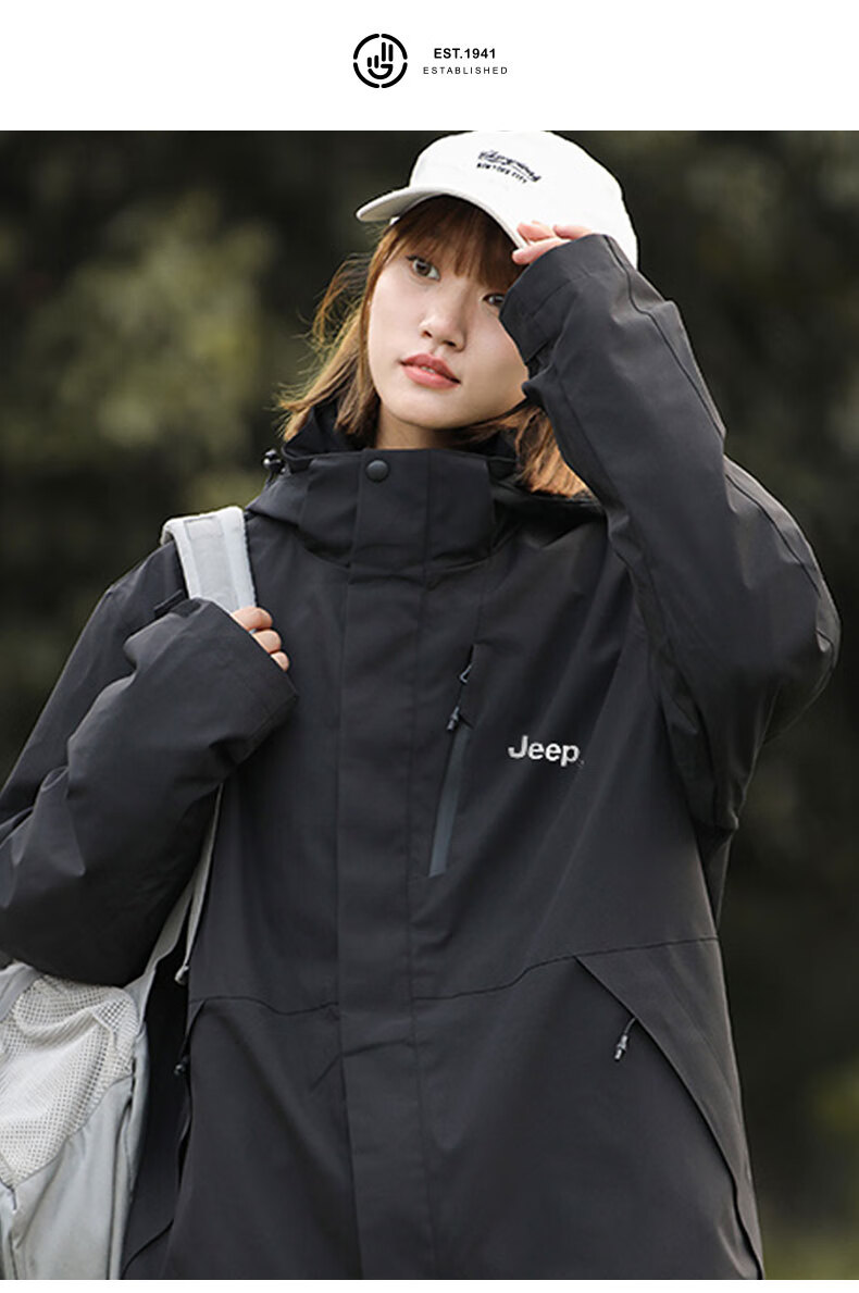 吉普(JEEP)冲锋夹克衣男女同款三合一两件套保暖防风加绒外套 幻影黑 XL