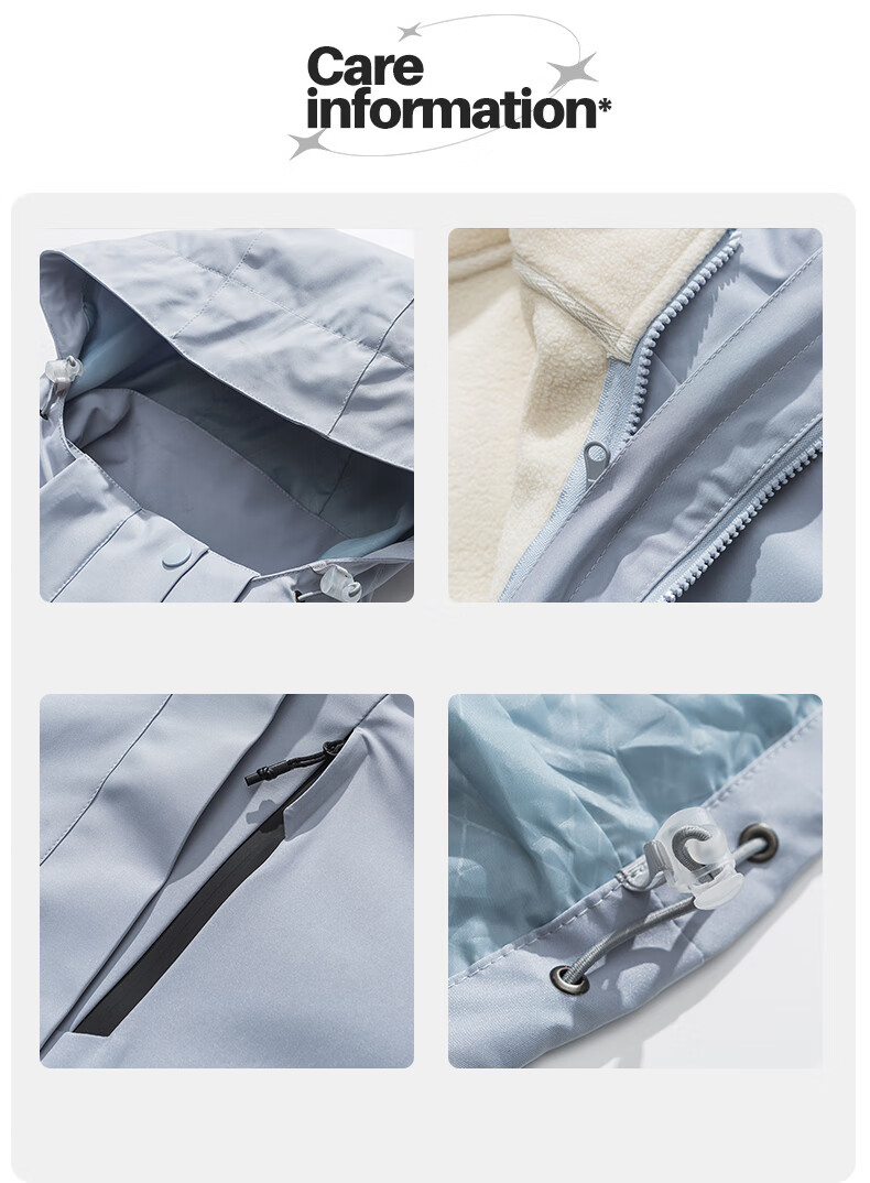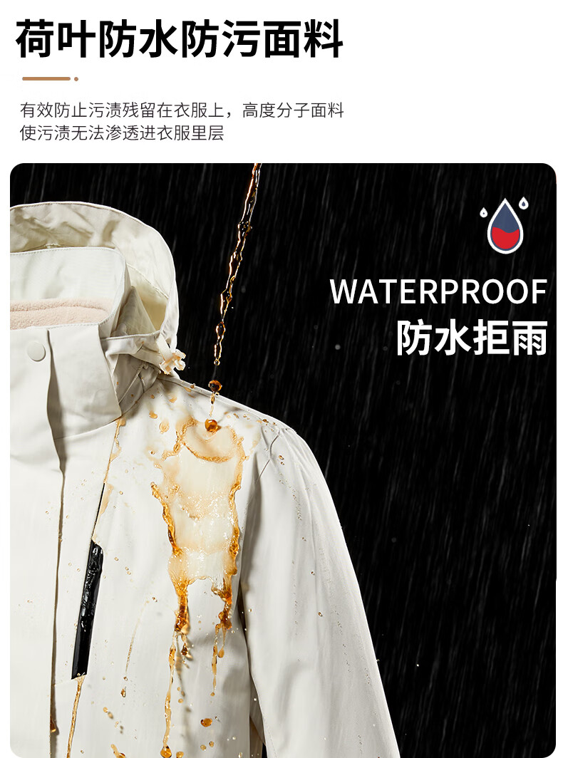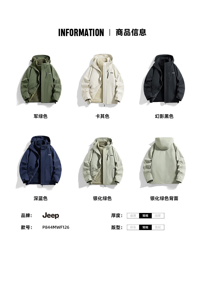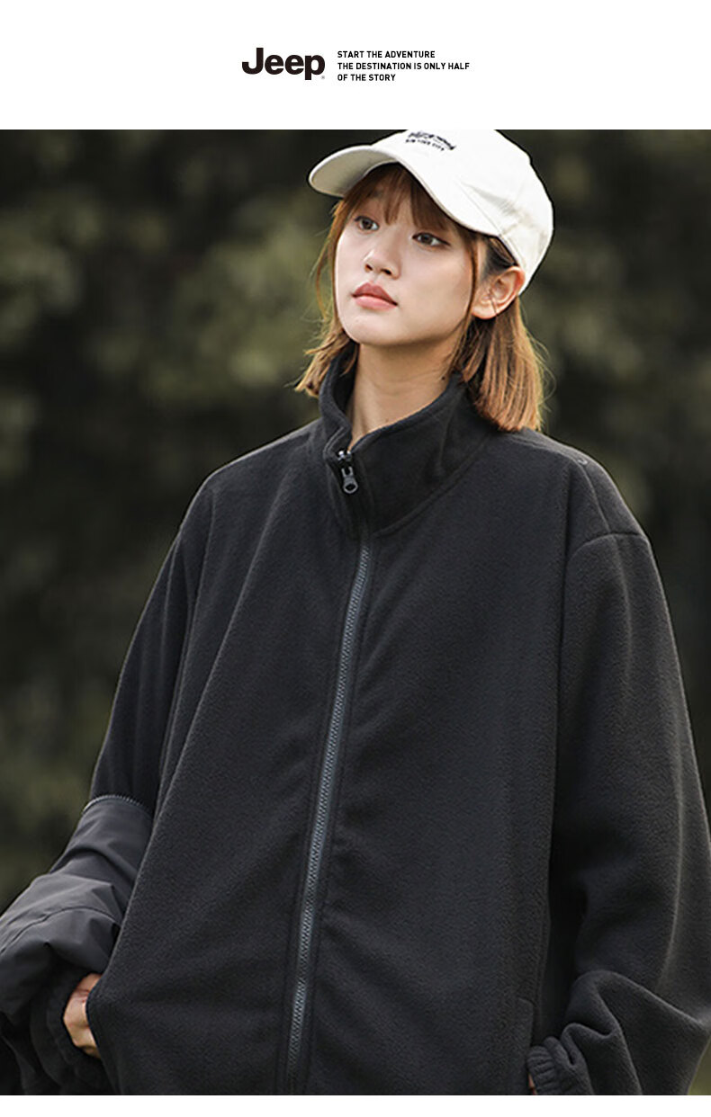 吉普(JEEP)冲锋夹克衣男女同款三合一两件套保暖防风加绒外套 幻影黑 XL