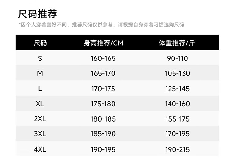China (cm) 160-165/84-86 165-170 / 88-90 167-172 / 92-96 168-173 / 98-102 170-176 / 106-110