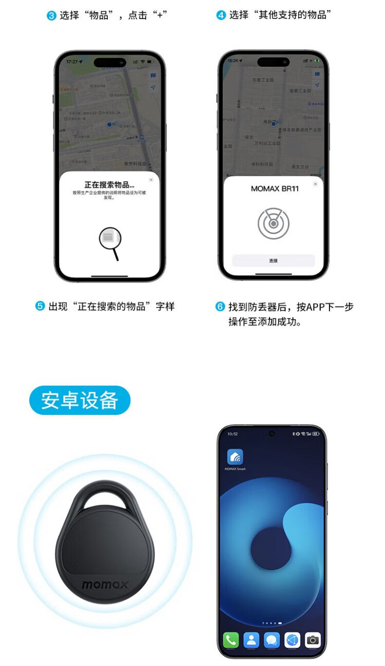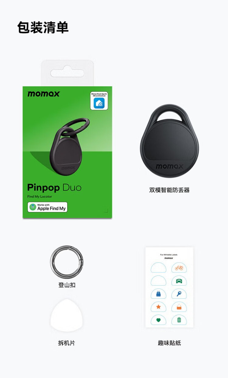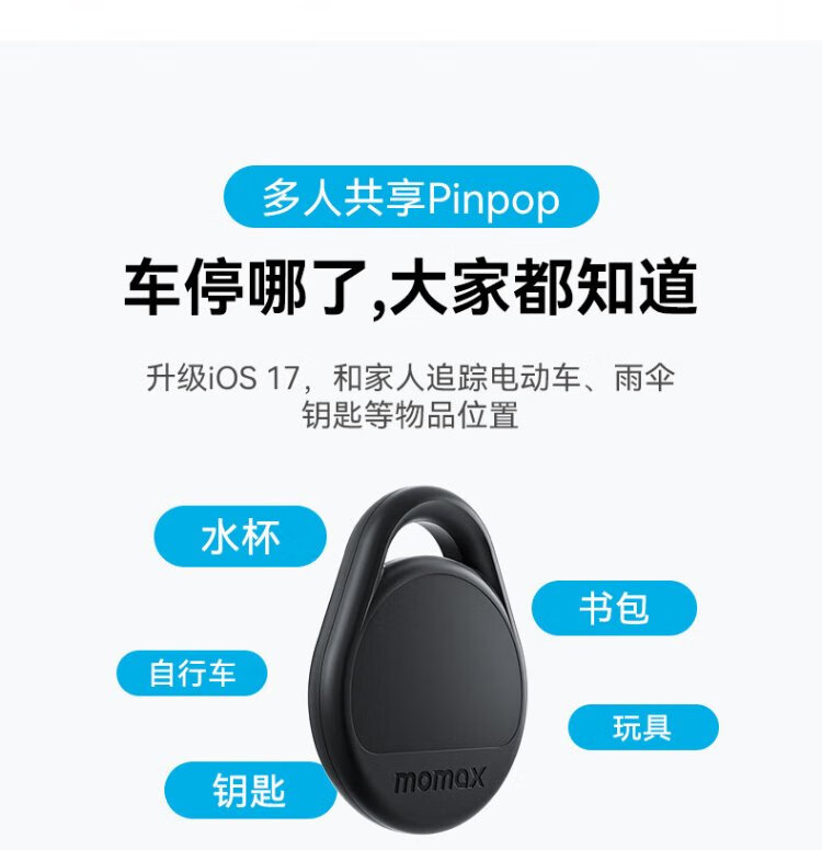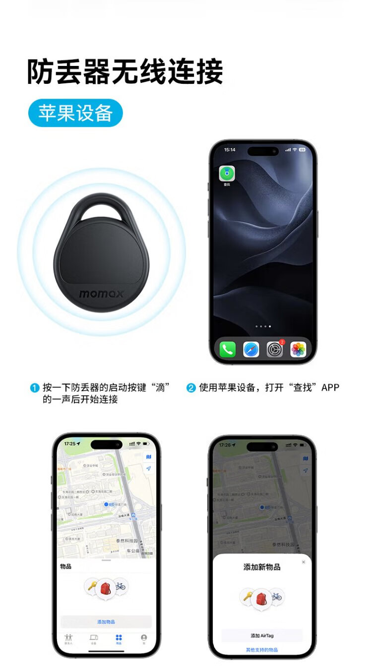 MOMAX AirTag Apple Officially Certified Positioning Tracker Anti-Lost Device Suitable for iPhone 17 Xiaomi Huawei Tag Accurate Positioning Children Pets Elderly Luggage Cars