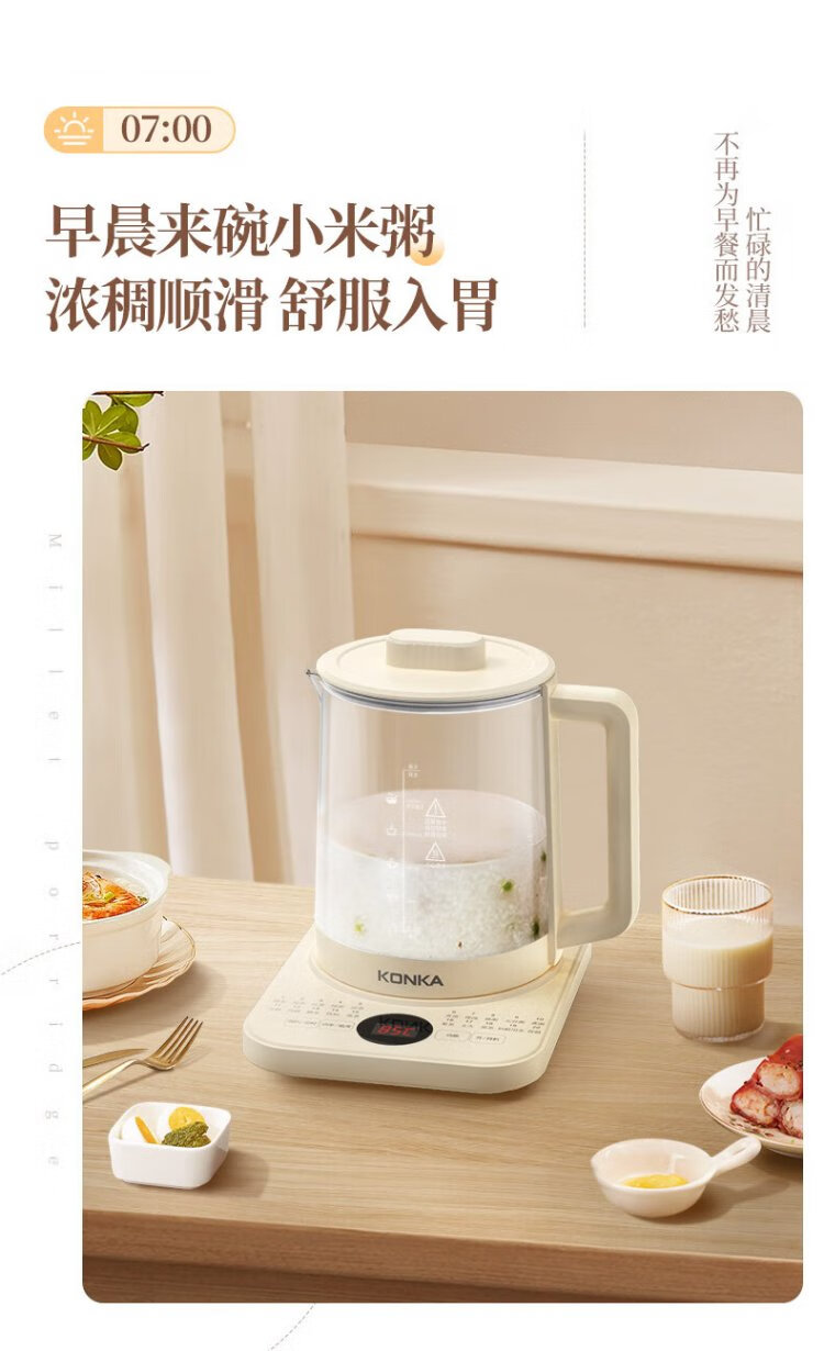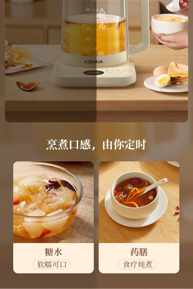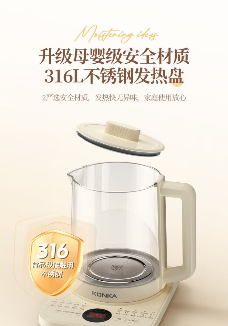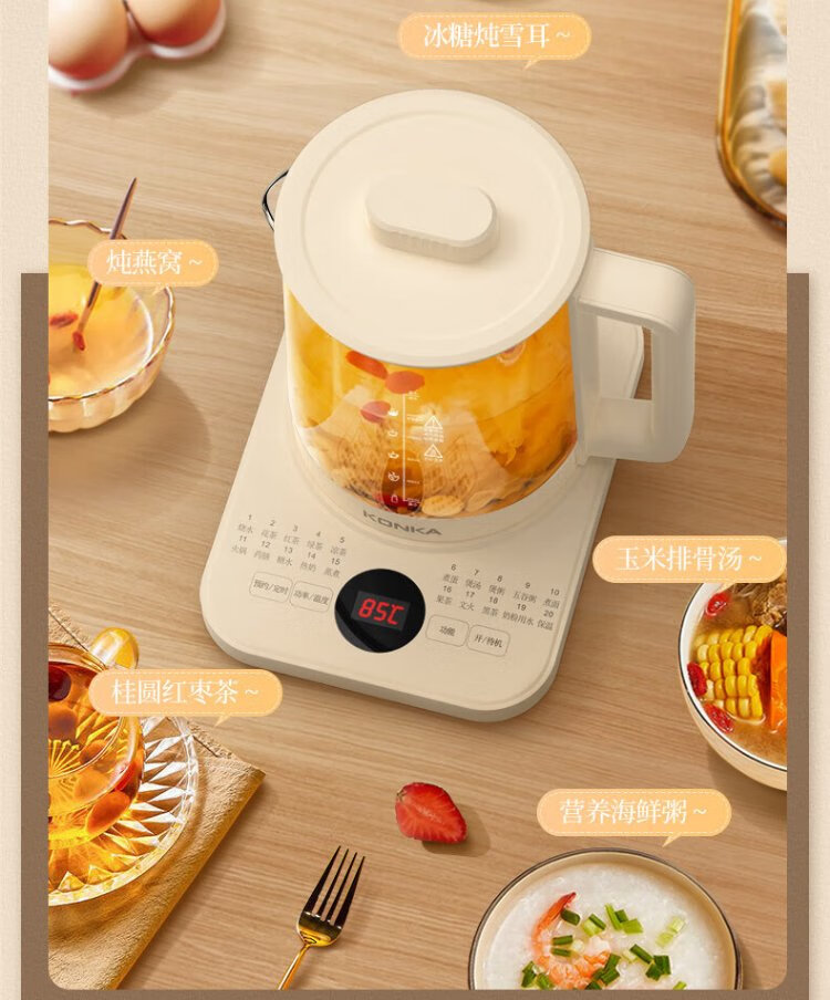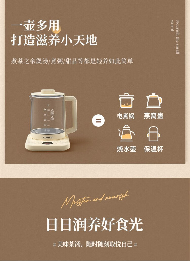 KONKA health pot 316 tea kettle, decoction kettle, glass insulation kettle, electric kettle, mini glass tea kettle 1.8L KYSH-1834E-W