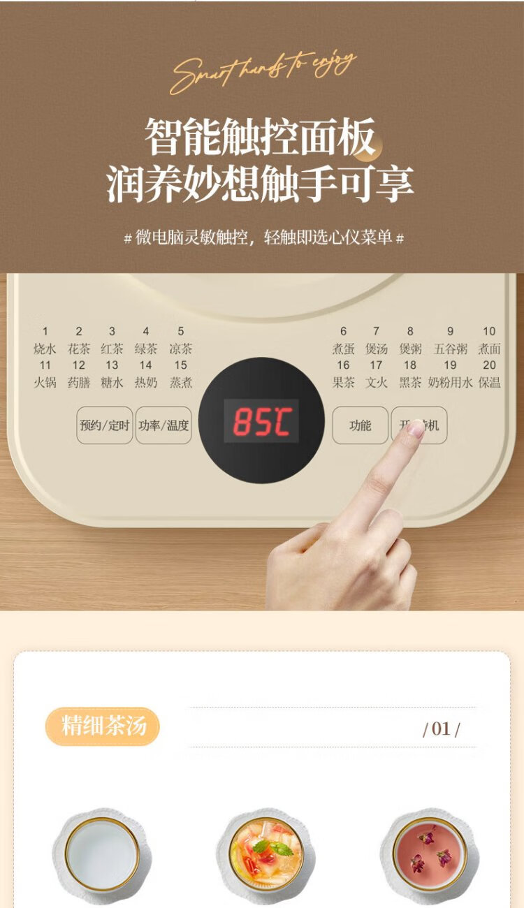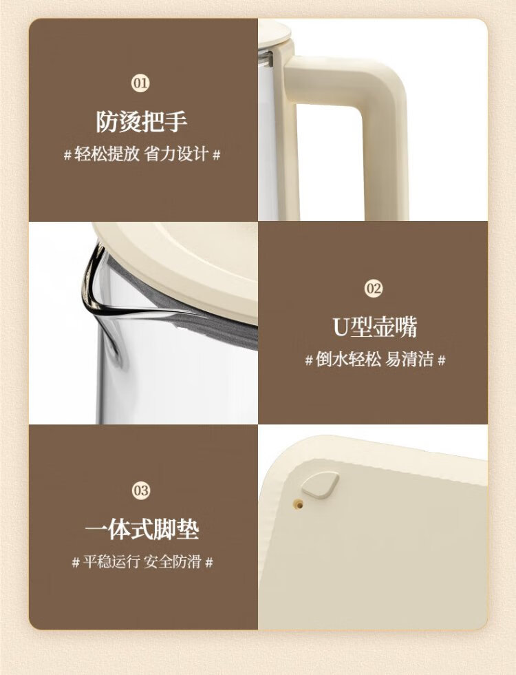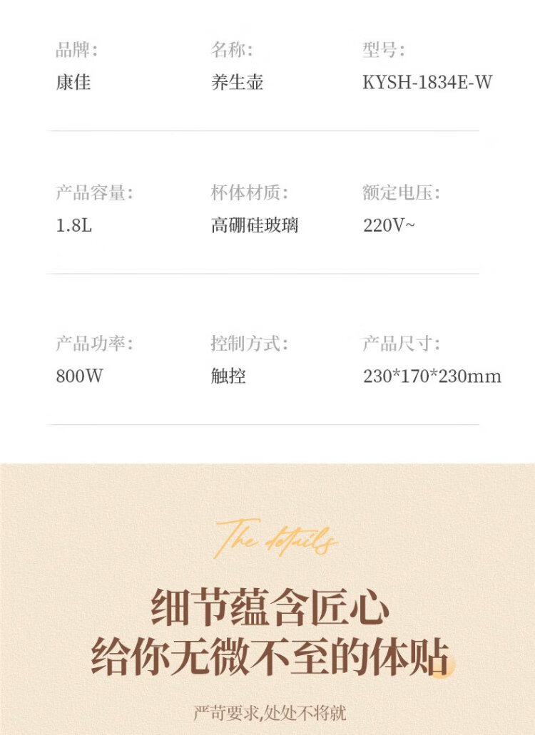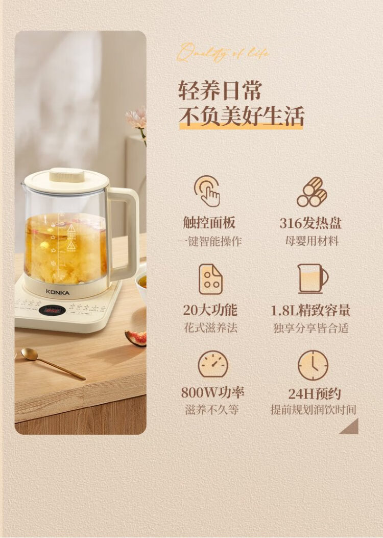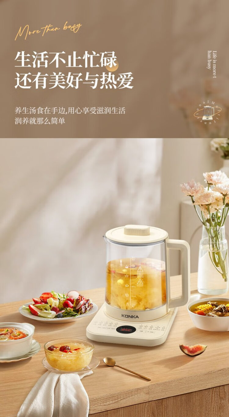 KONKA health pot 316 tea kettle, decoction kettle, glass insulation kettle, electric kettle, mini glass tea kettle 1.8L KYSH-1834E-W