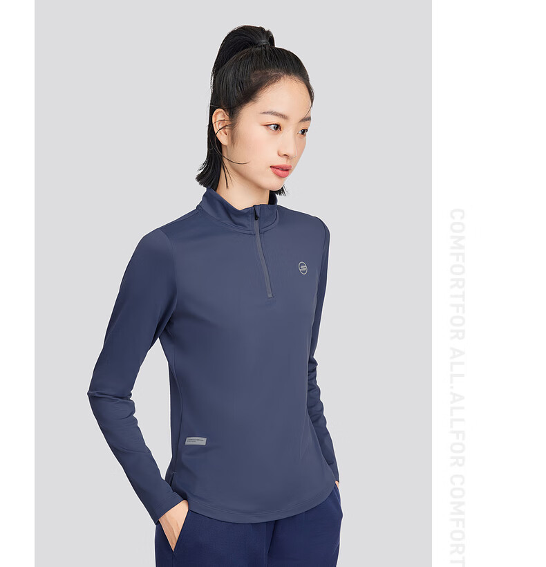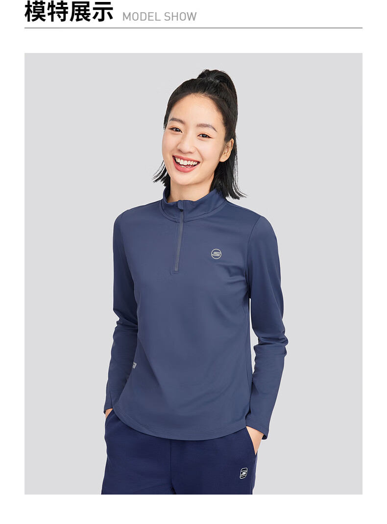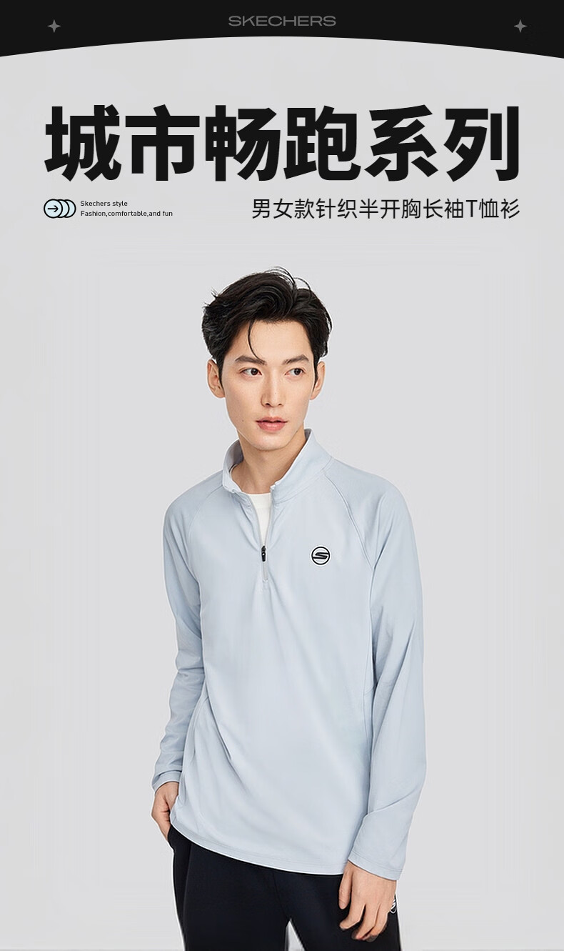 Skechers men's and women's same style slim long-sleeved sports T-shirt stand collar comfortable top P424M192