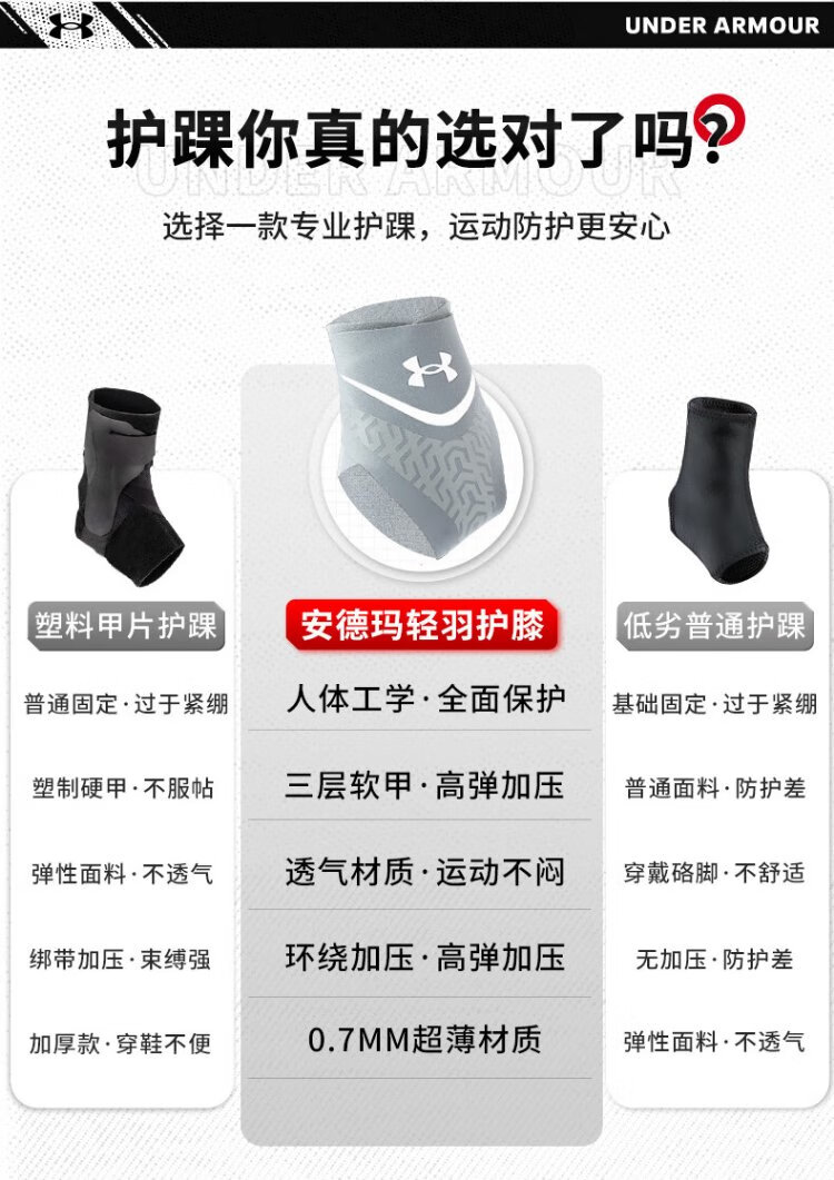 Under Armor ankle sprain protective gear recovery set sports basketball anti sprain foot injury fixed brace ankle protector to keep warm