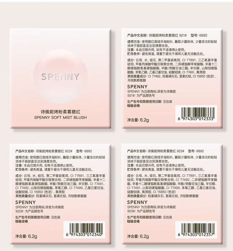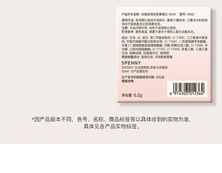 Spenny/Spenny Baked Powder Soft Mist Blush Tea Apricot Powder Bean Paste Powder Shrinks and Expands Color to Brighten Color 924# Hojicha Brown