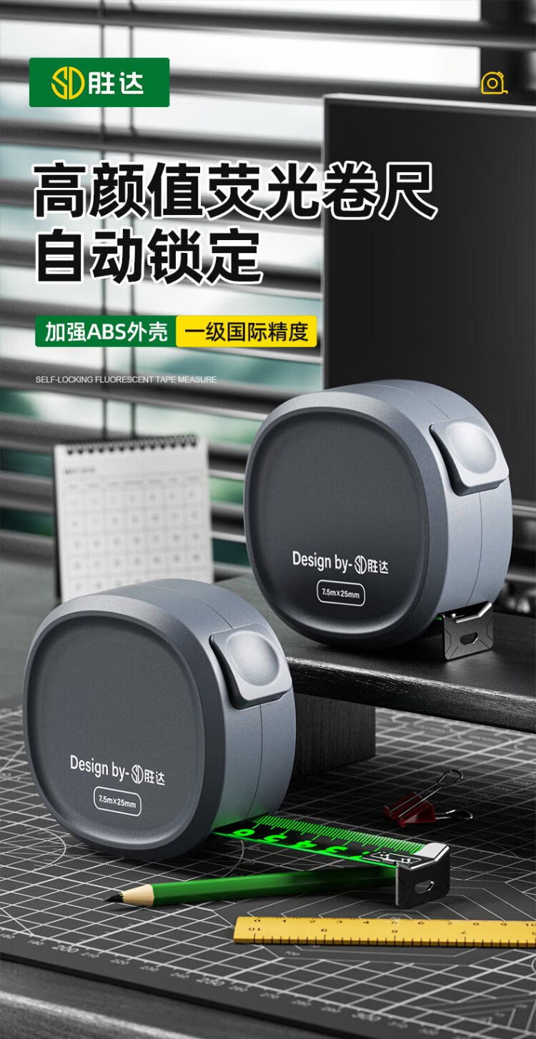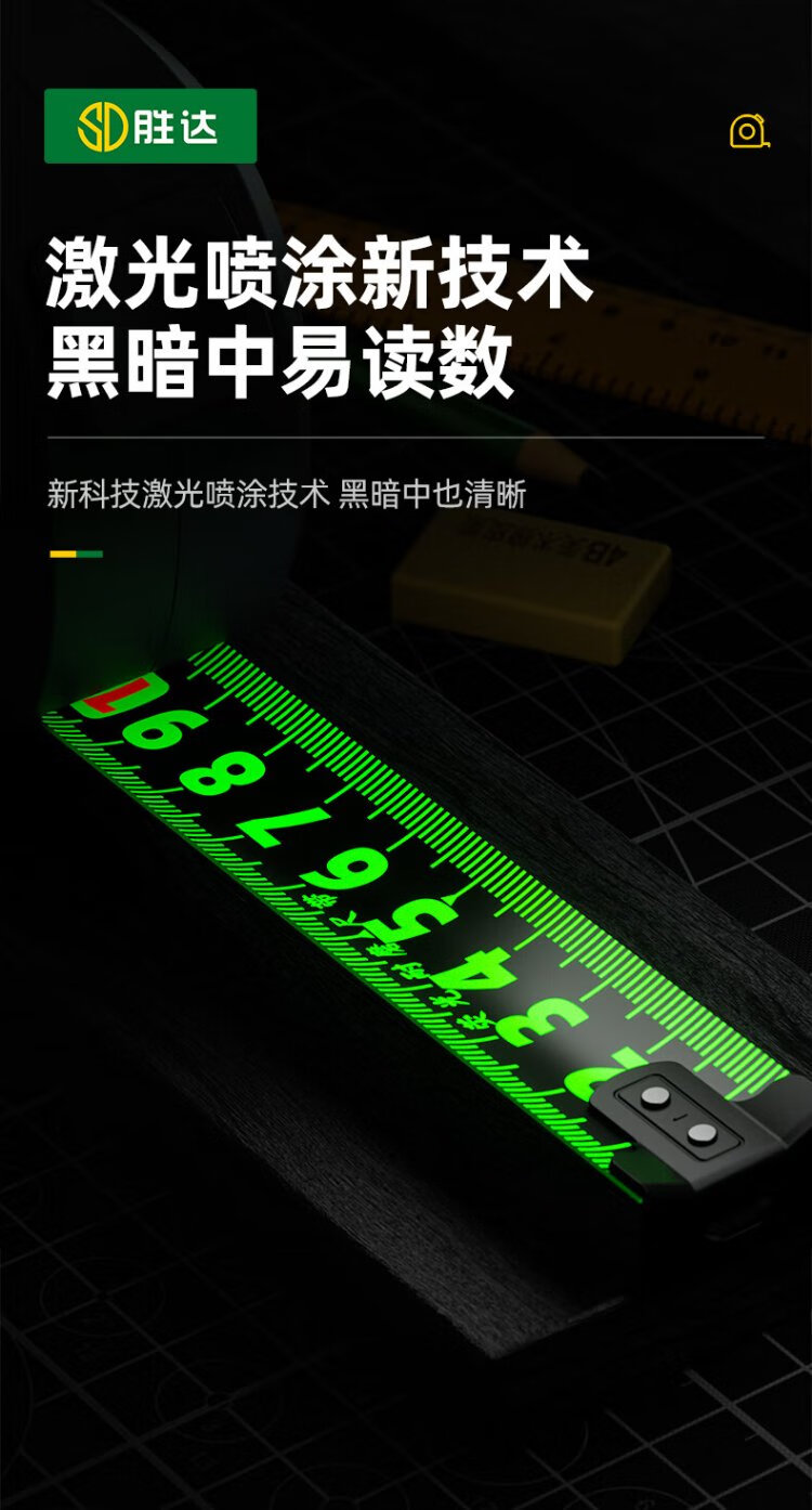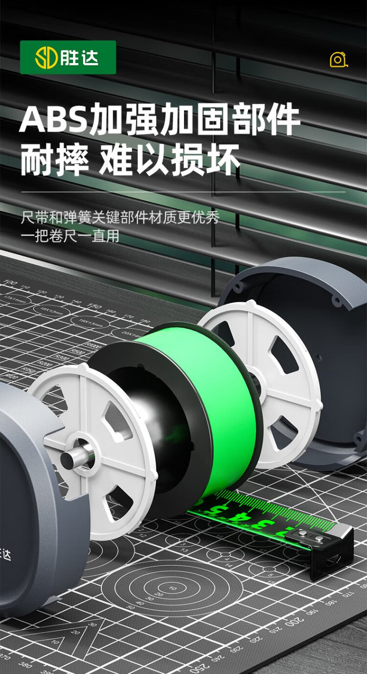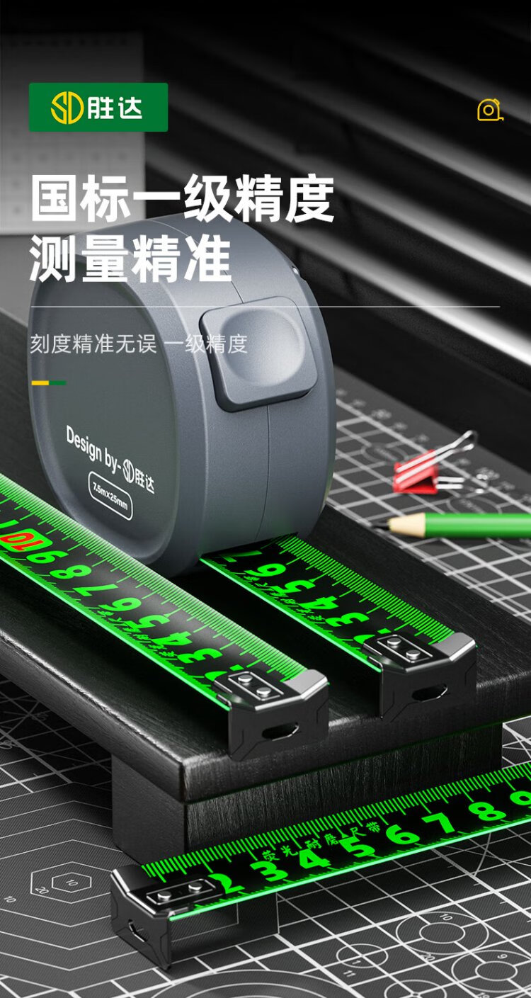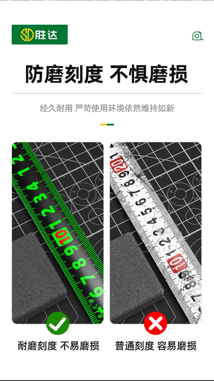 Shengda self-locking tape measure 3 meters household genuine steel tape measure thickened and hardened meter ruler box ruler high-precision ruler 3m*16mm