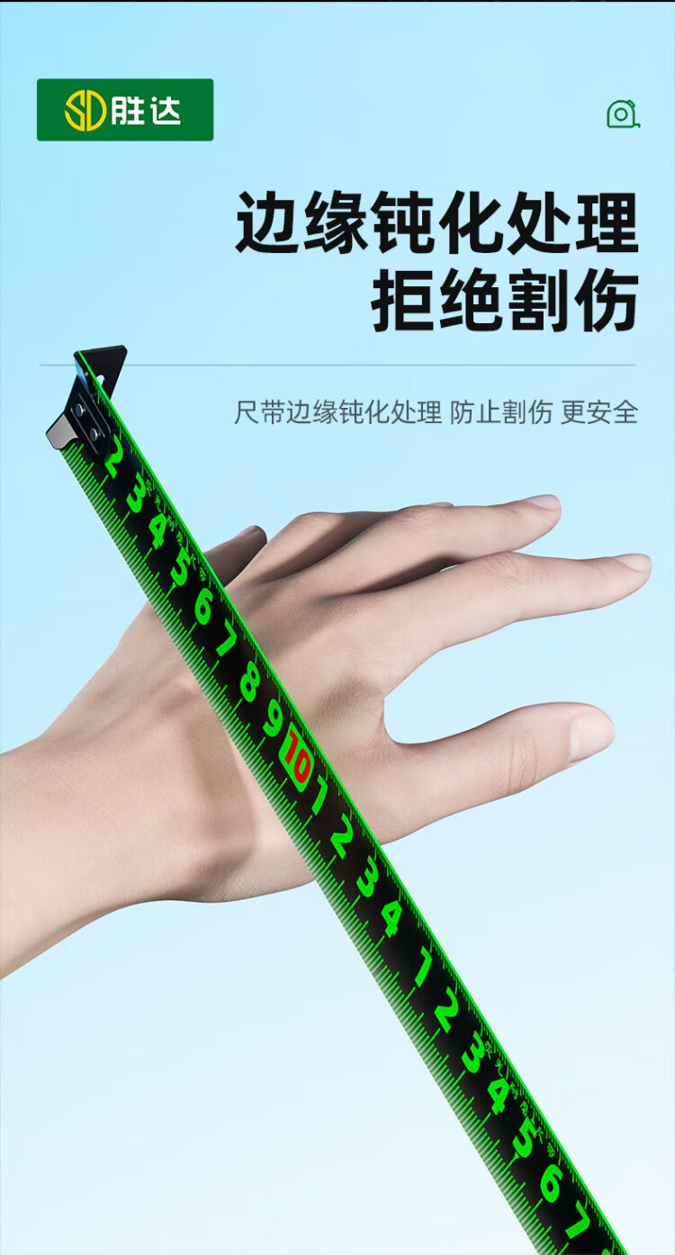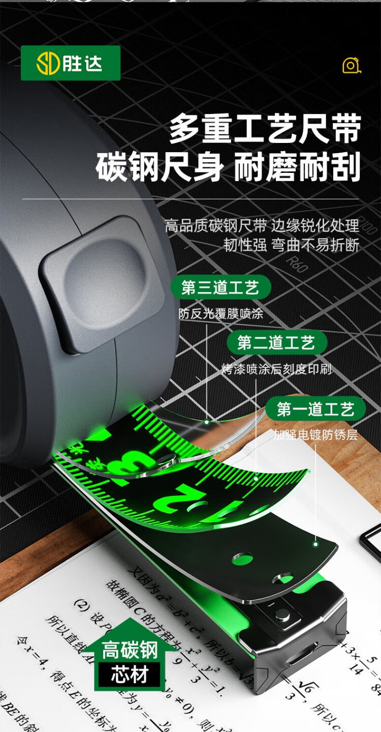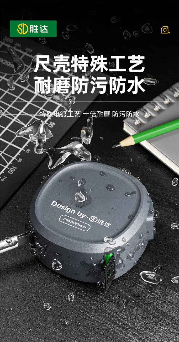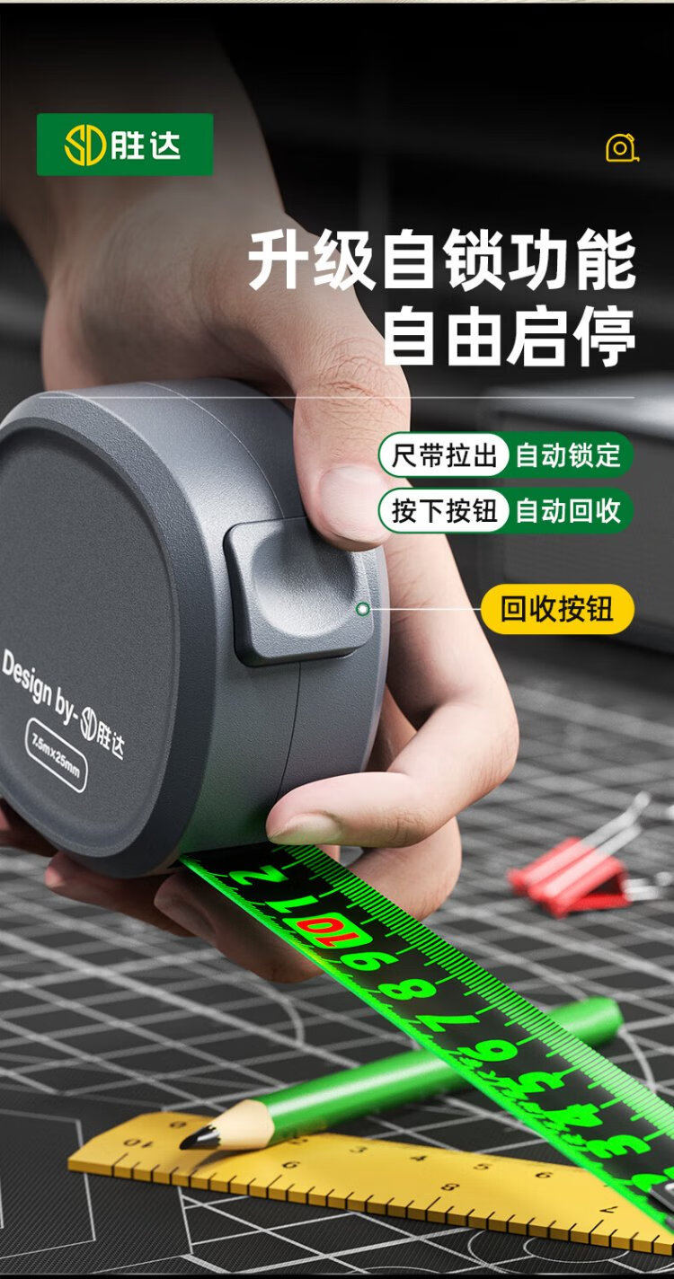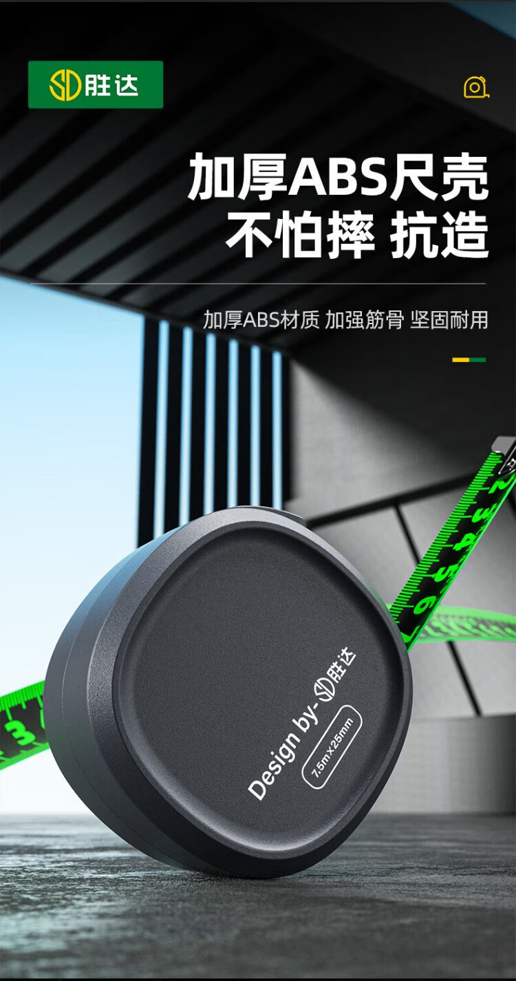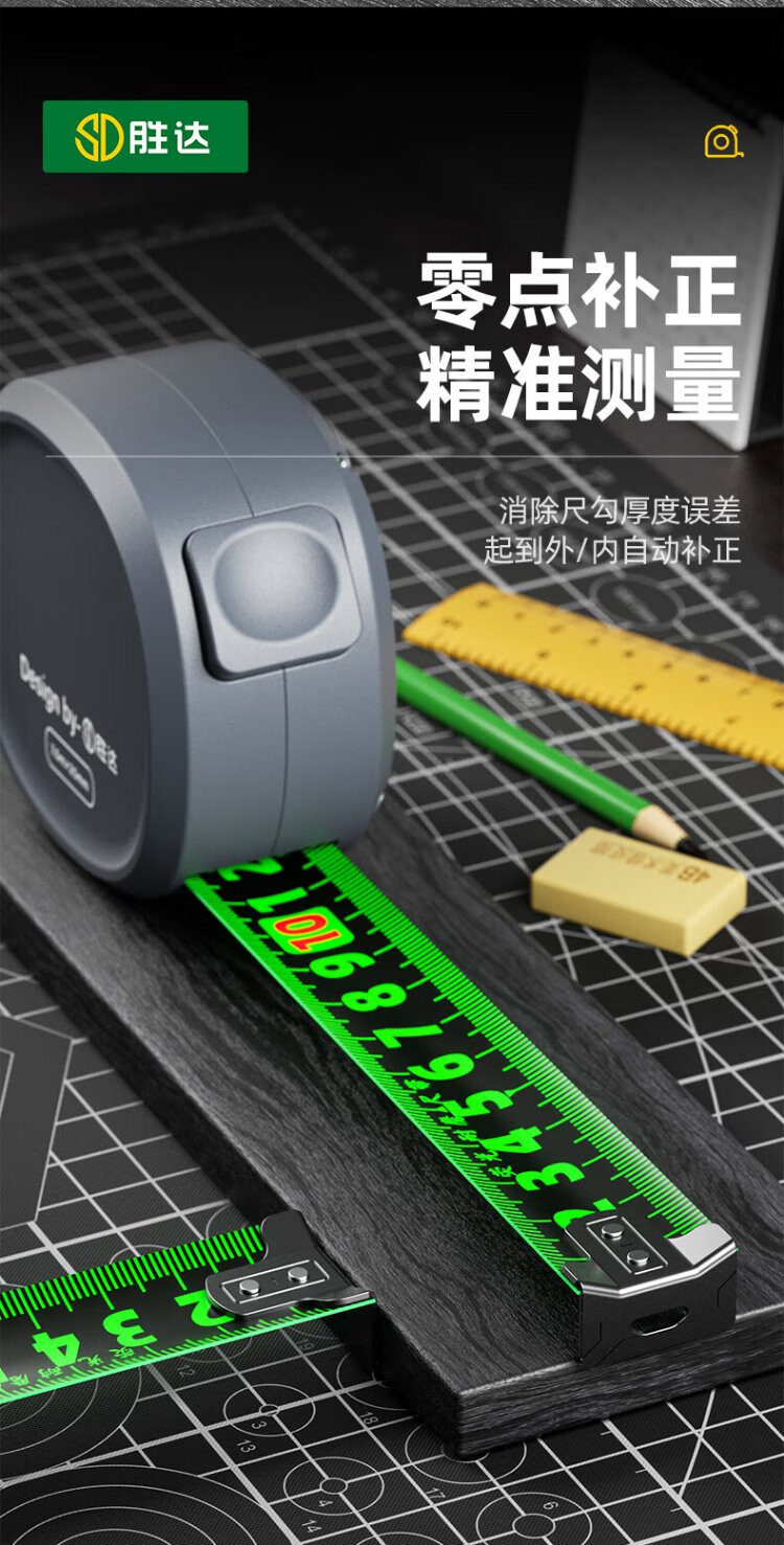Shengda self-locking tape measure 3 meters household genuine steel tape measure thickened and hardened meter ruler box ruler high-precision ruler 3m*16mm
