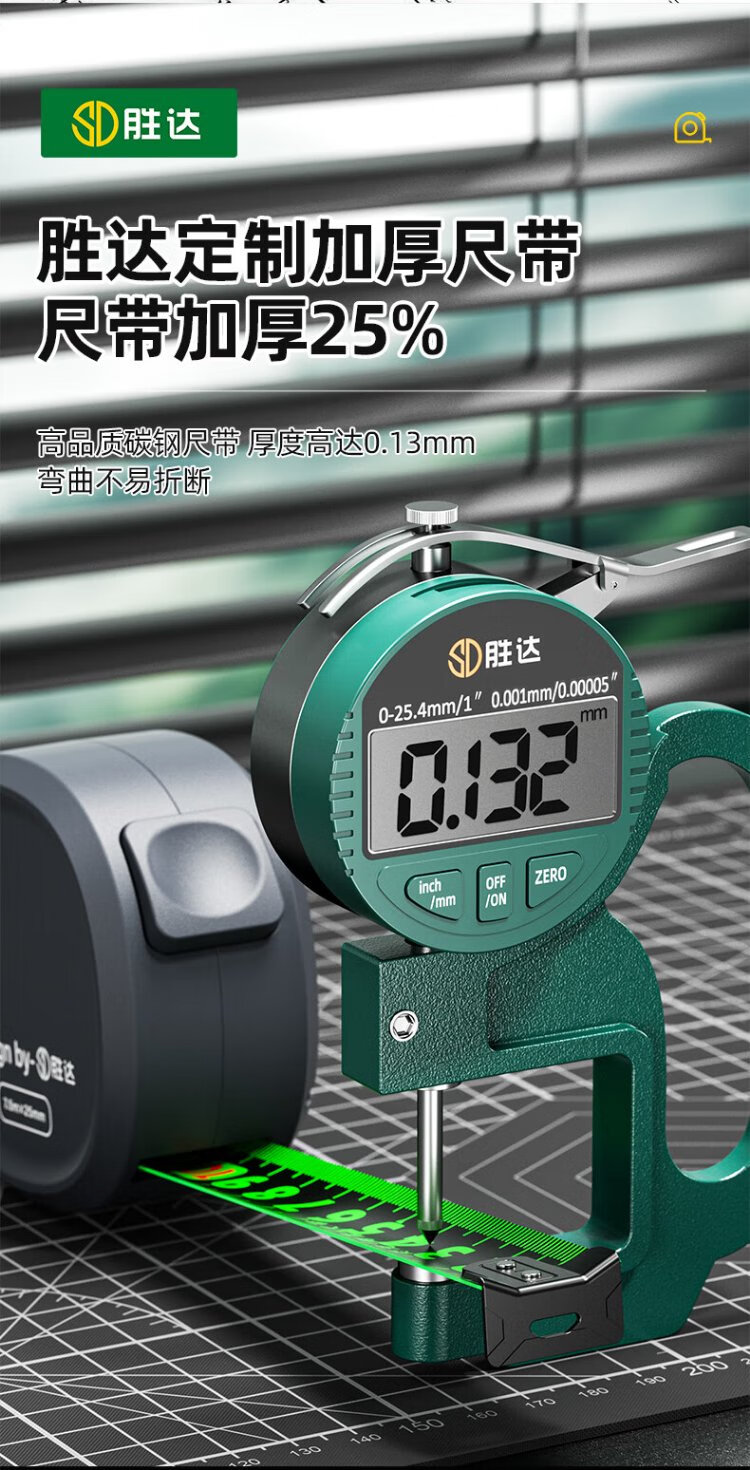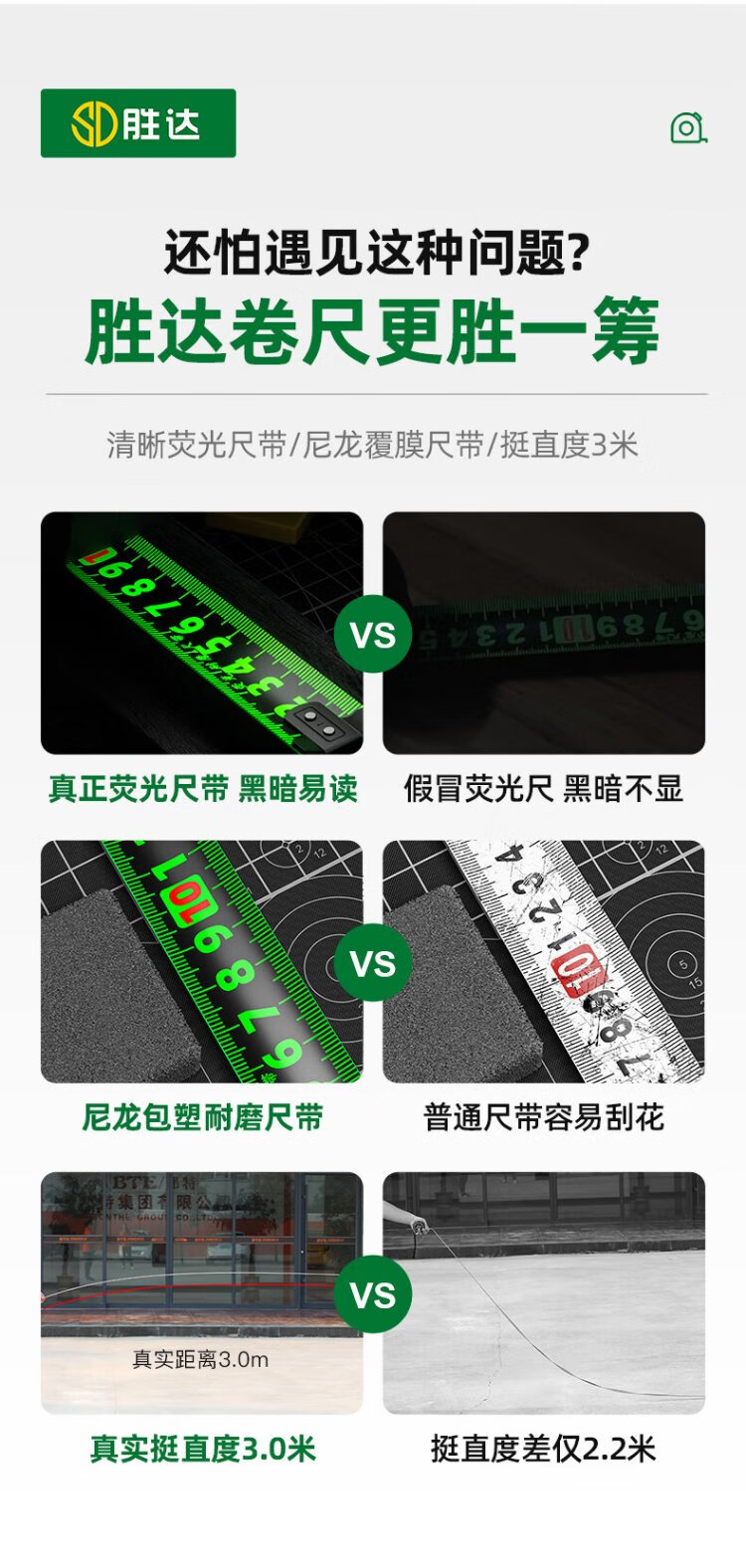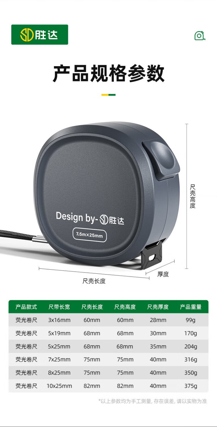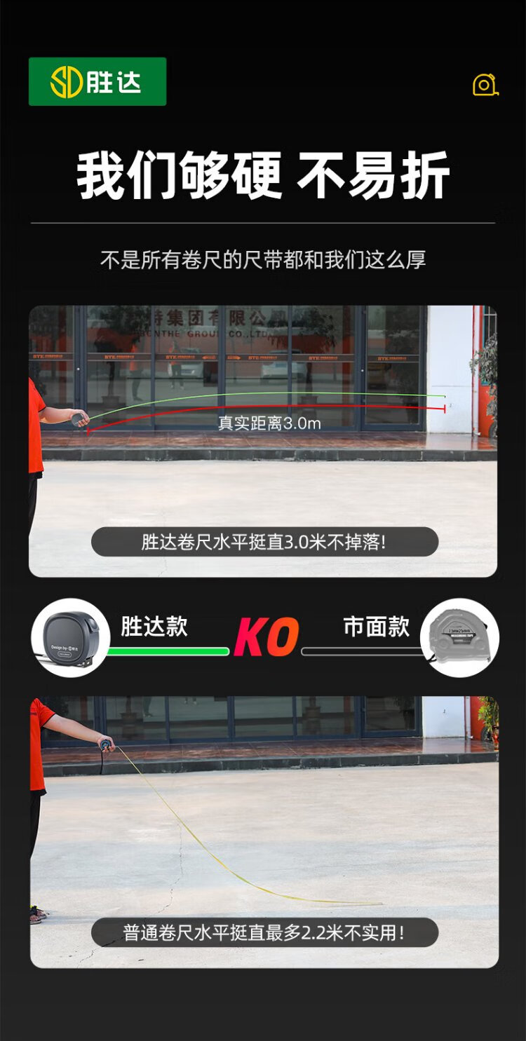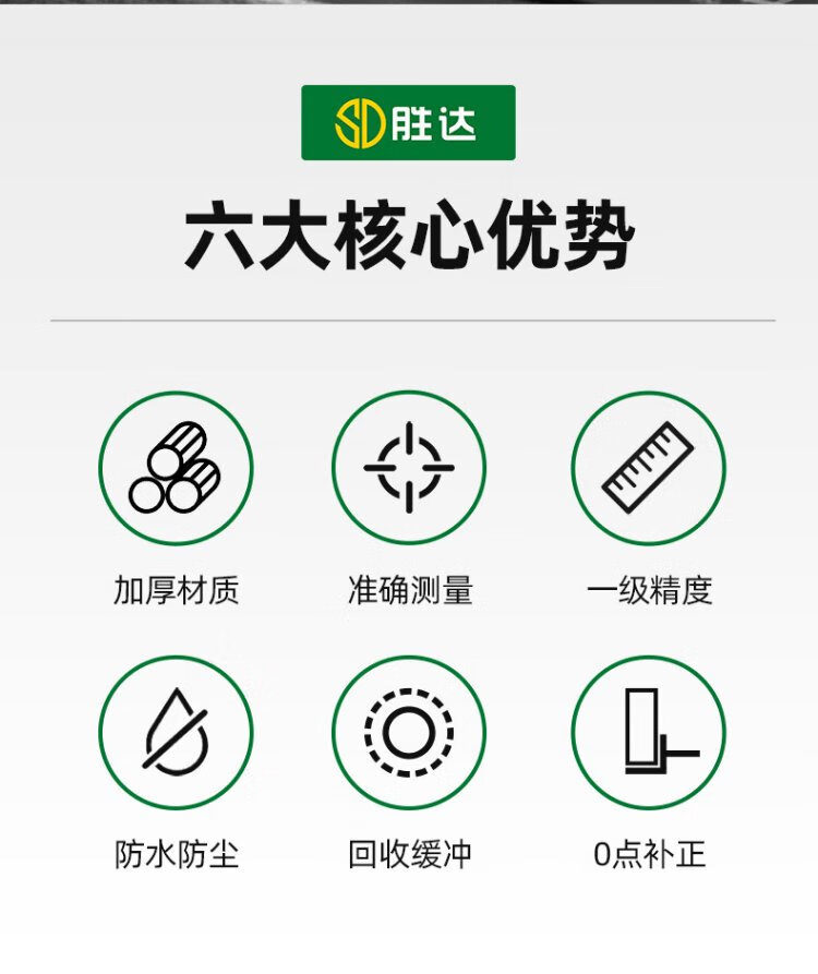 Shengda self-locking tape measure 3 meters household genuine steel tape measure thickened and hardened meter ruler box ruler high-precision ruler 3m*16mm