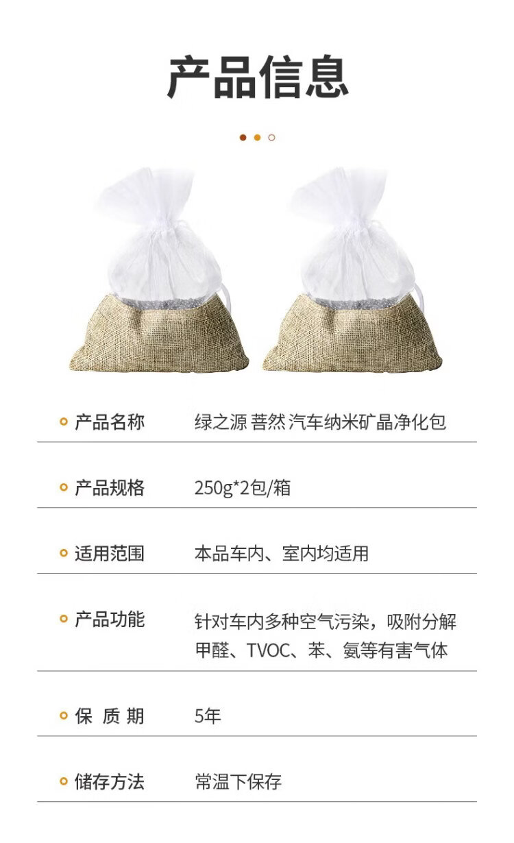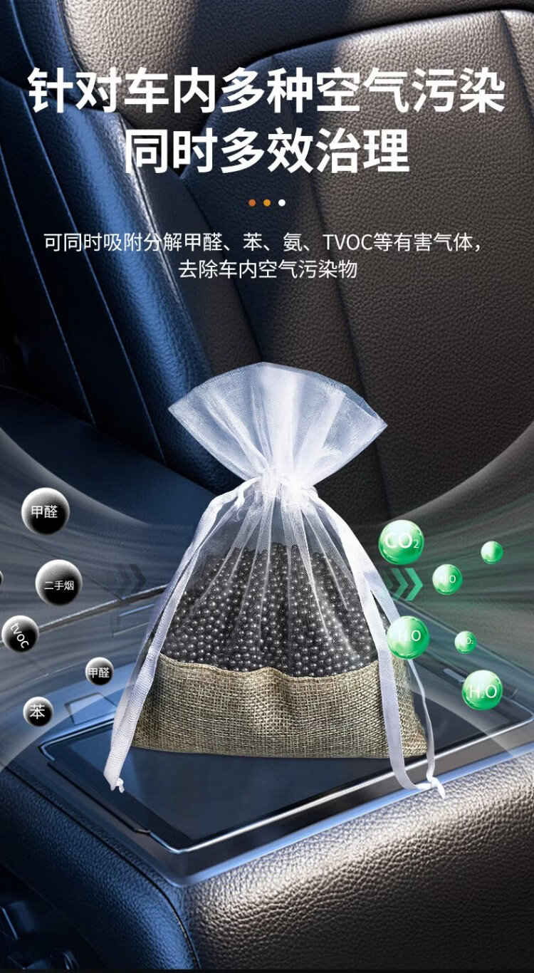 Greensource new car formaldehyde and odor removal bamboo charcoal bag car activated carbon bag Boran 250g*2 car purifier