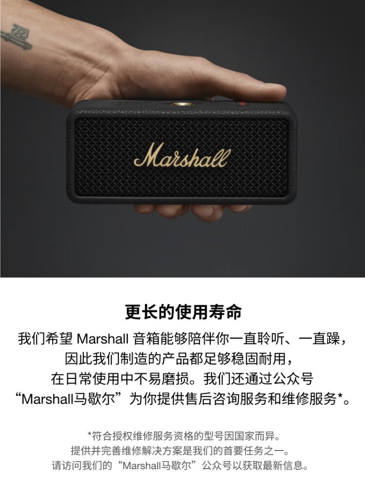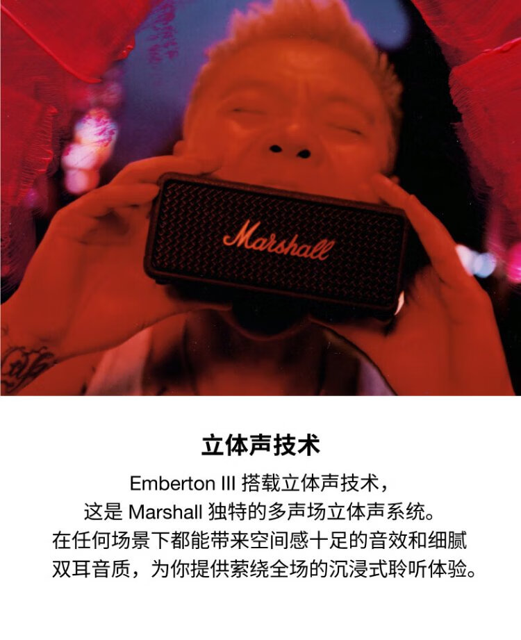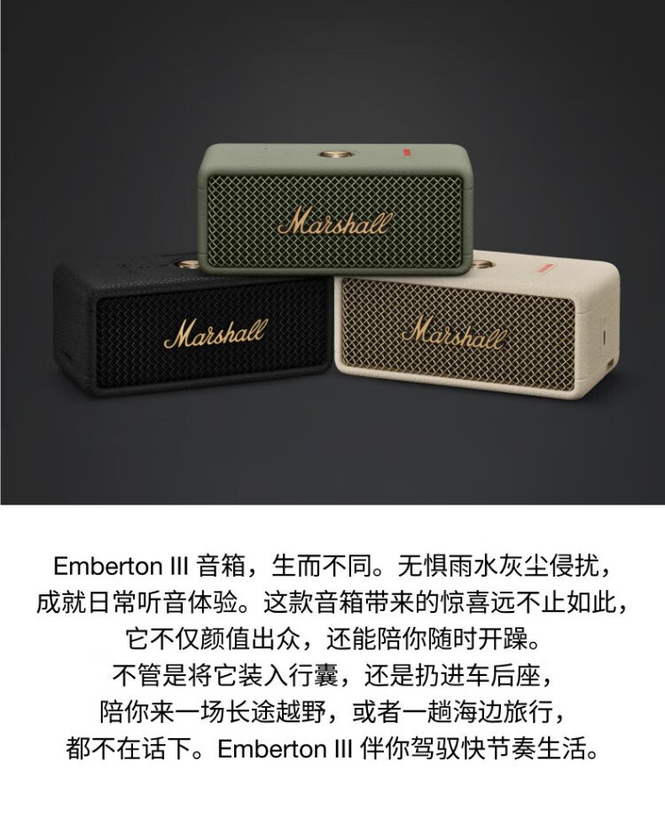 MARSHALL EMBERTON III speaker portable 3rd generation wireless Bluetooth home outdoor dustproof and waterproof long battery life gift small speaker black gold