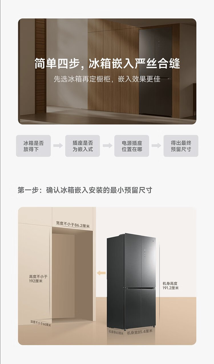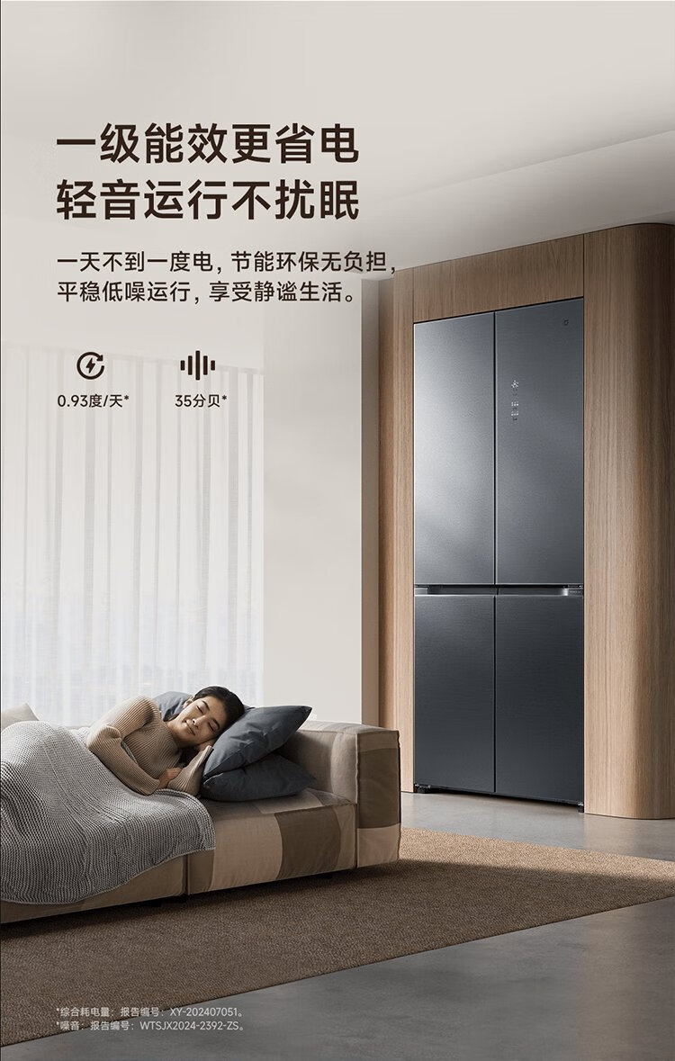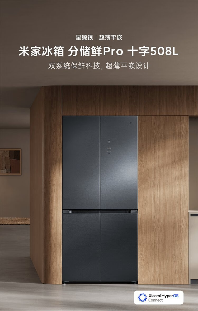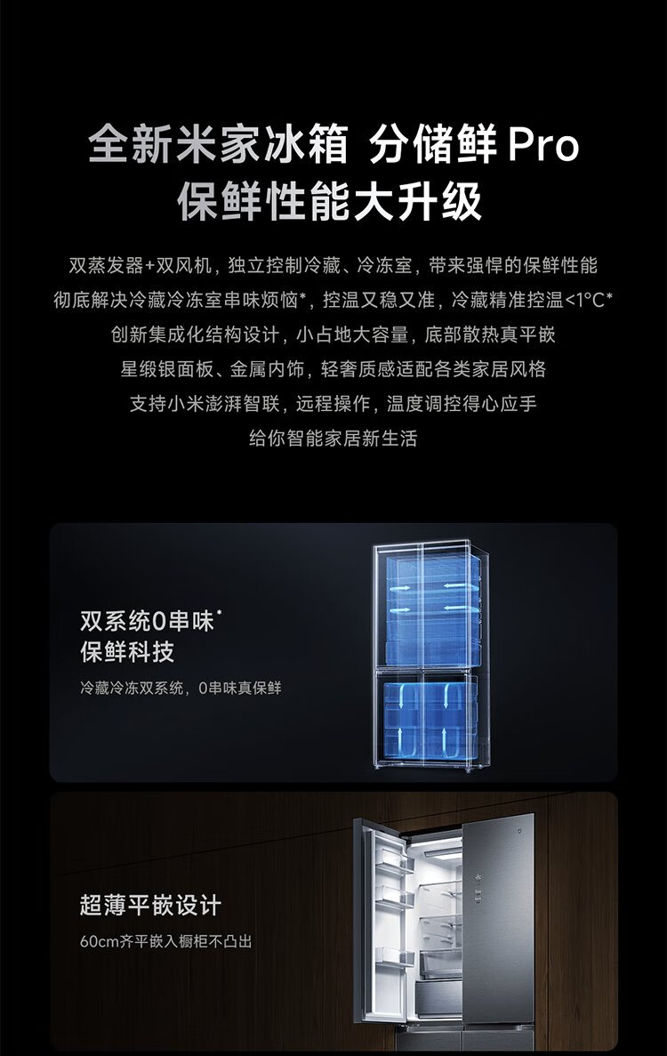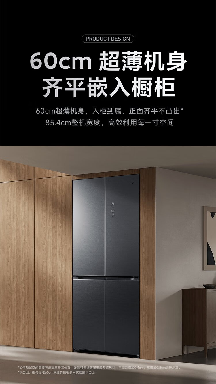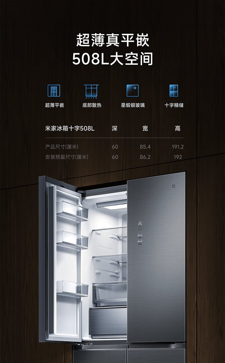 Mijia Xiaomi 508L cross-fold four-door first-class energy-efficiency dual-system dual-cycle 60cm ultra-thin zero-embedded government subsidy trade-in refrigerator BCD-508WTGBI