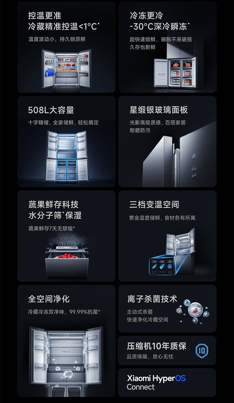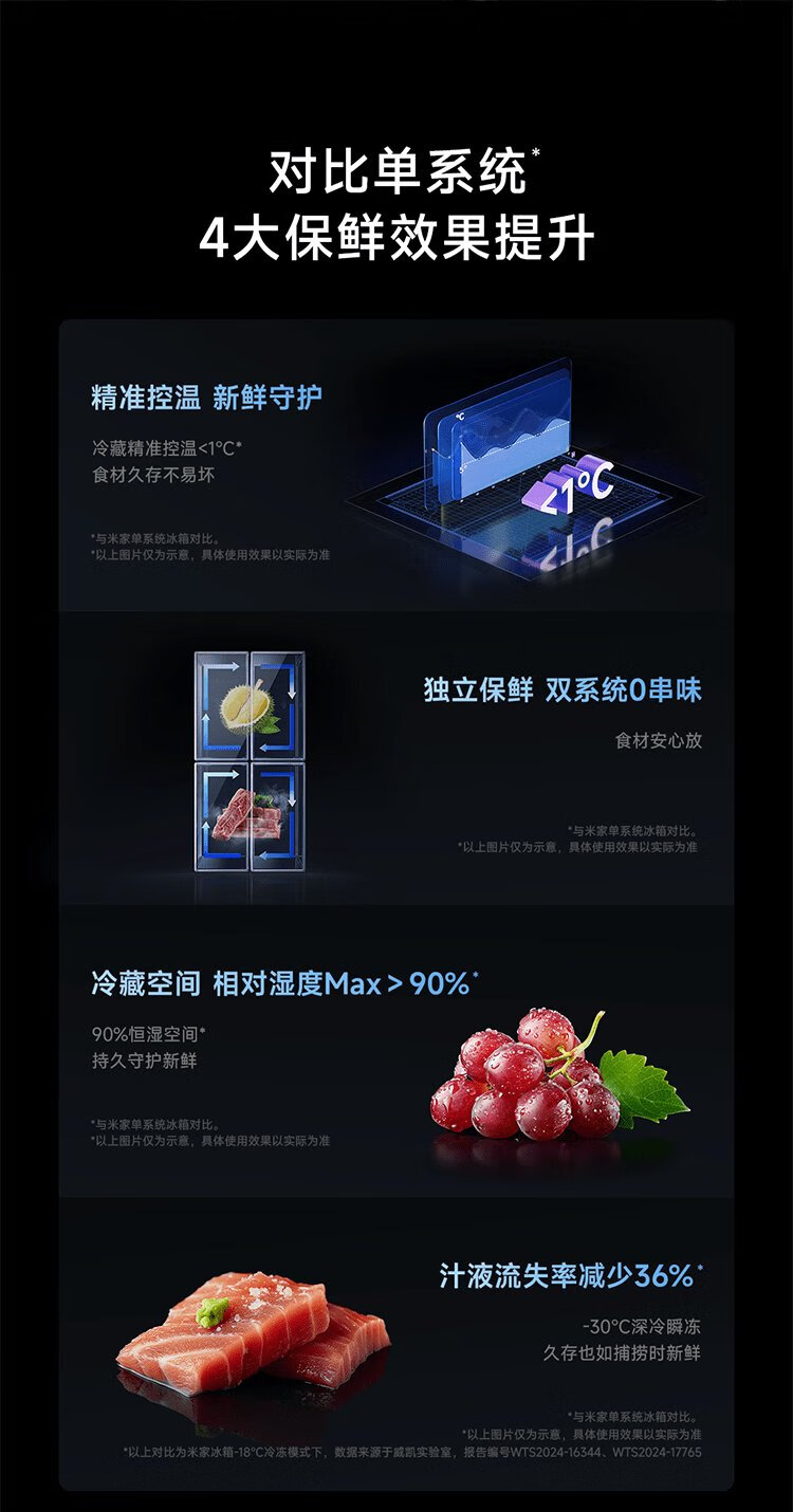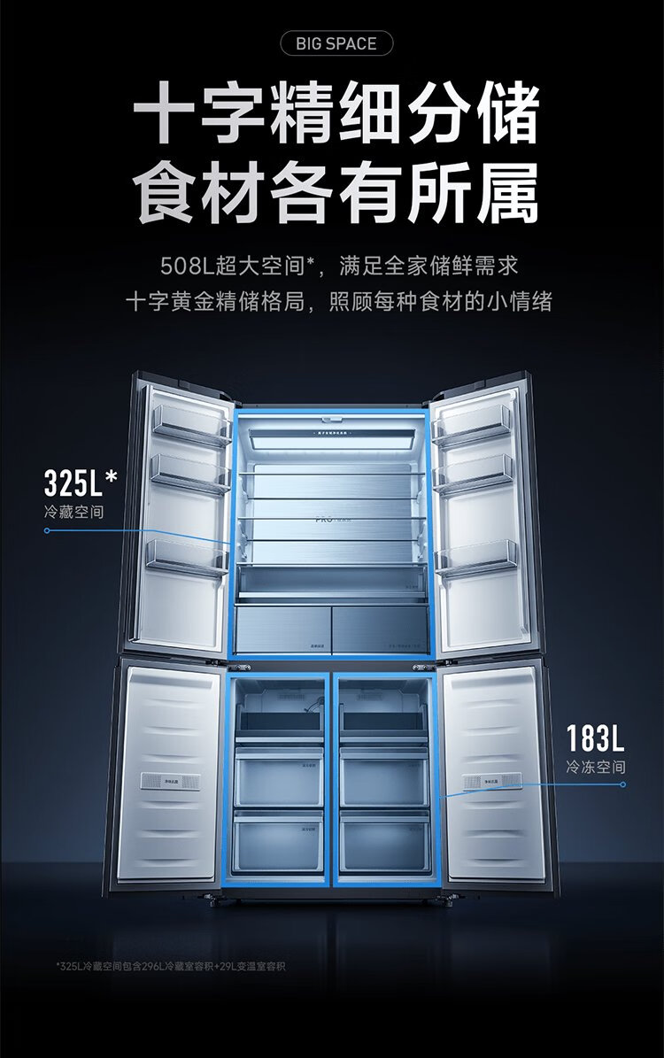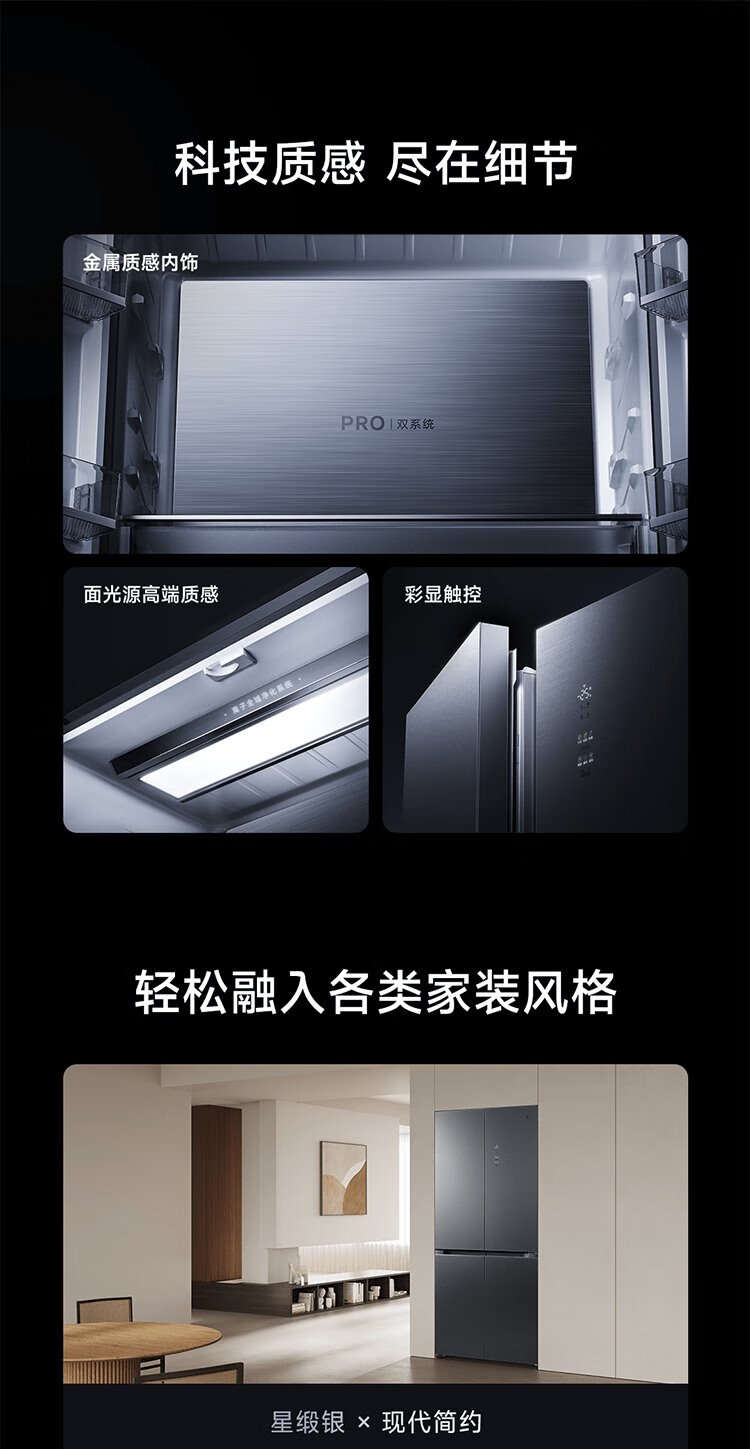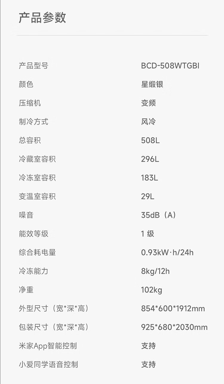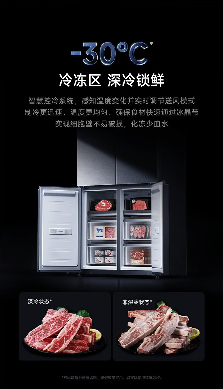 Mijia Xiaomi 508L cross-fold four-door first-class energy-efficiency dual-system dual-cycle 60cm ultra-thin zero-embedded government subsidy trade-in refrigerator BCD-508WTGBI