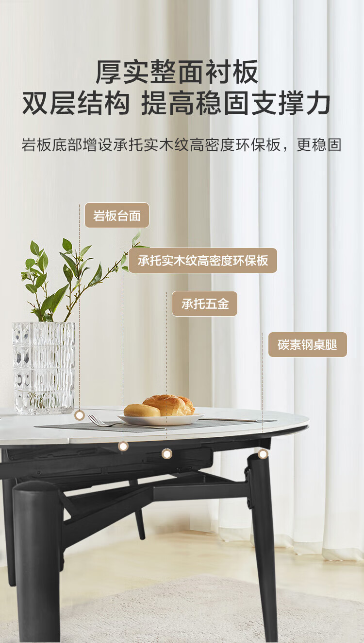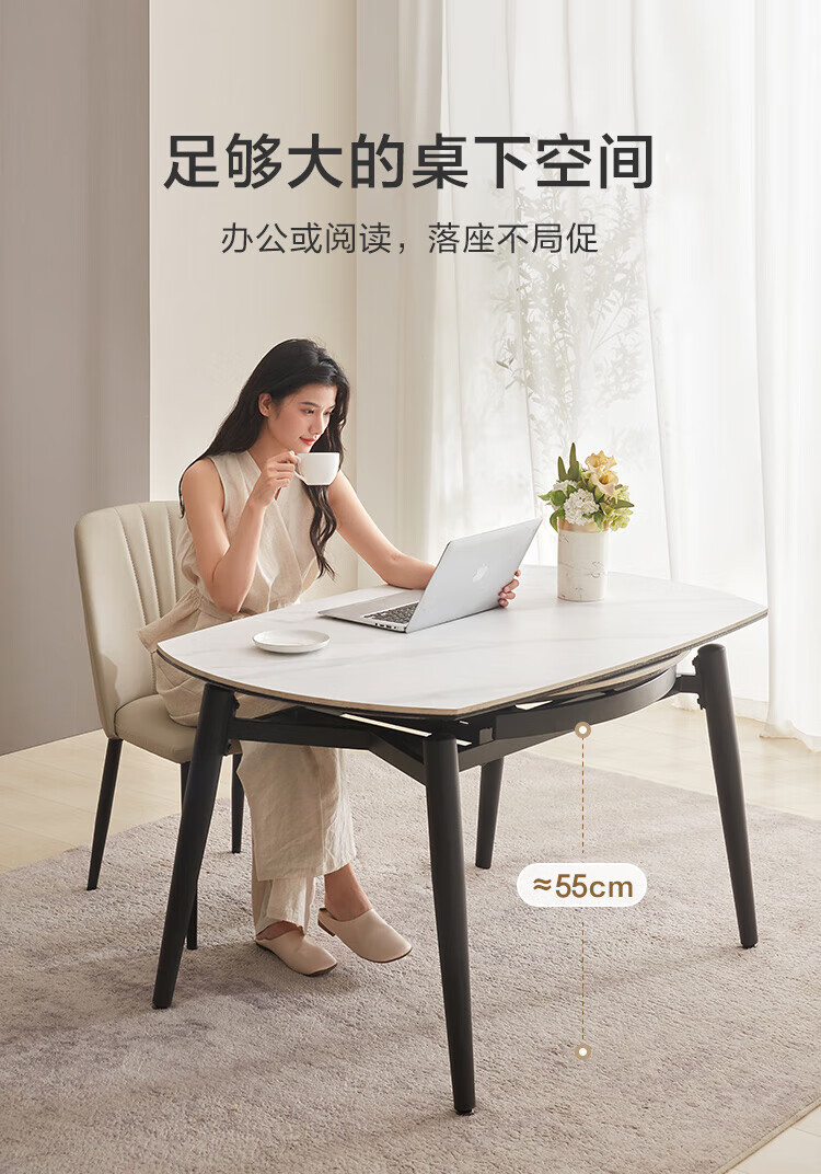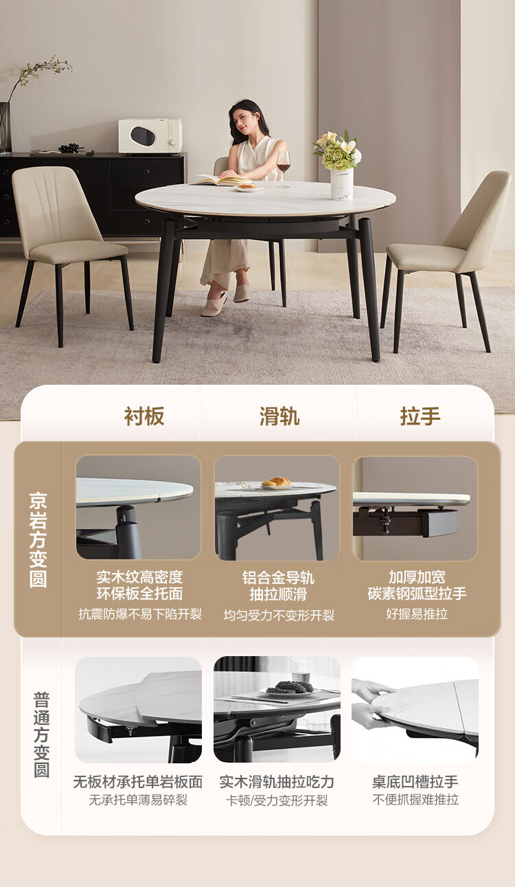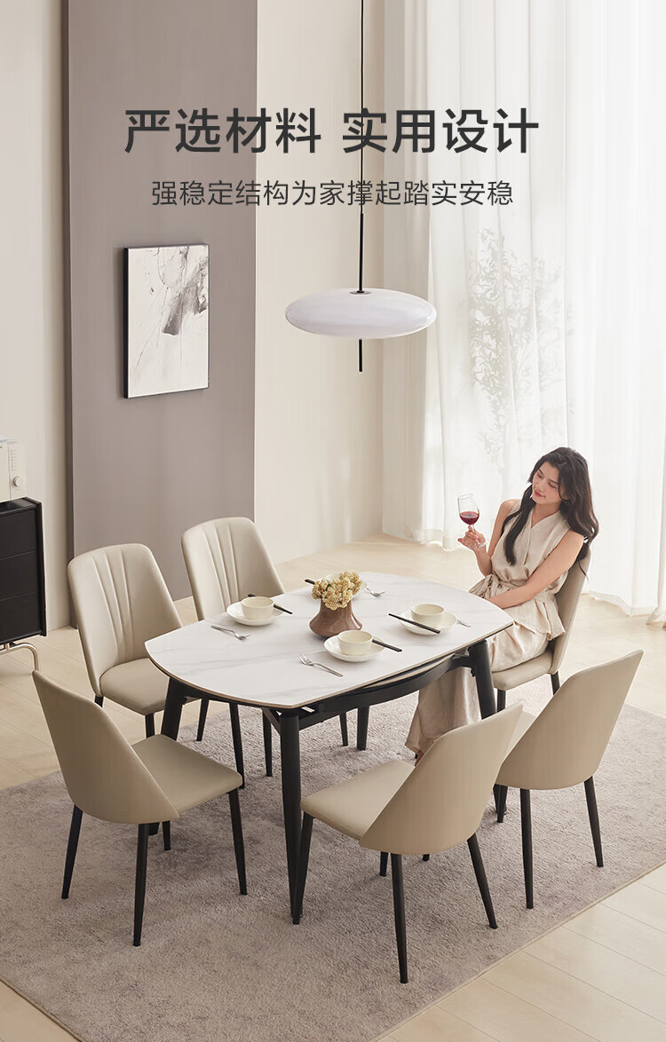 Jingjing Tokyo Made Home Jingyan Dining Table Home Slate Dining Table Small Apartment Retractable Dining Table and Chair Combination 1.3m1 Table 4 Chairs