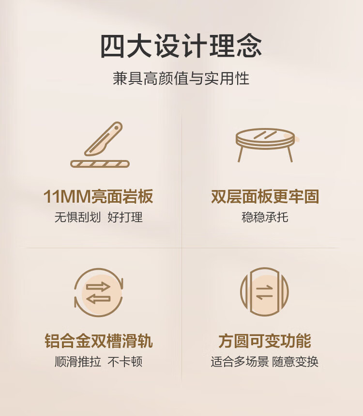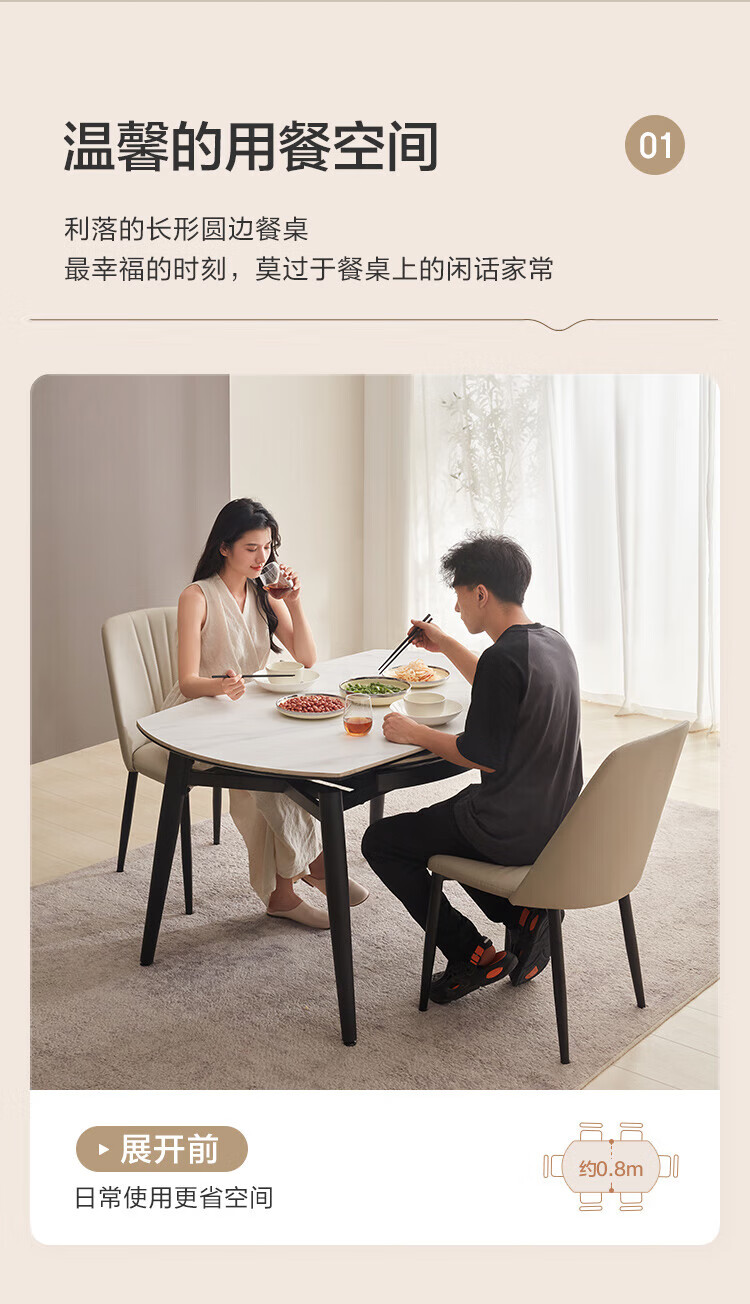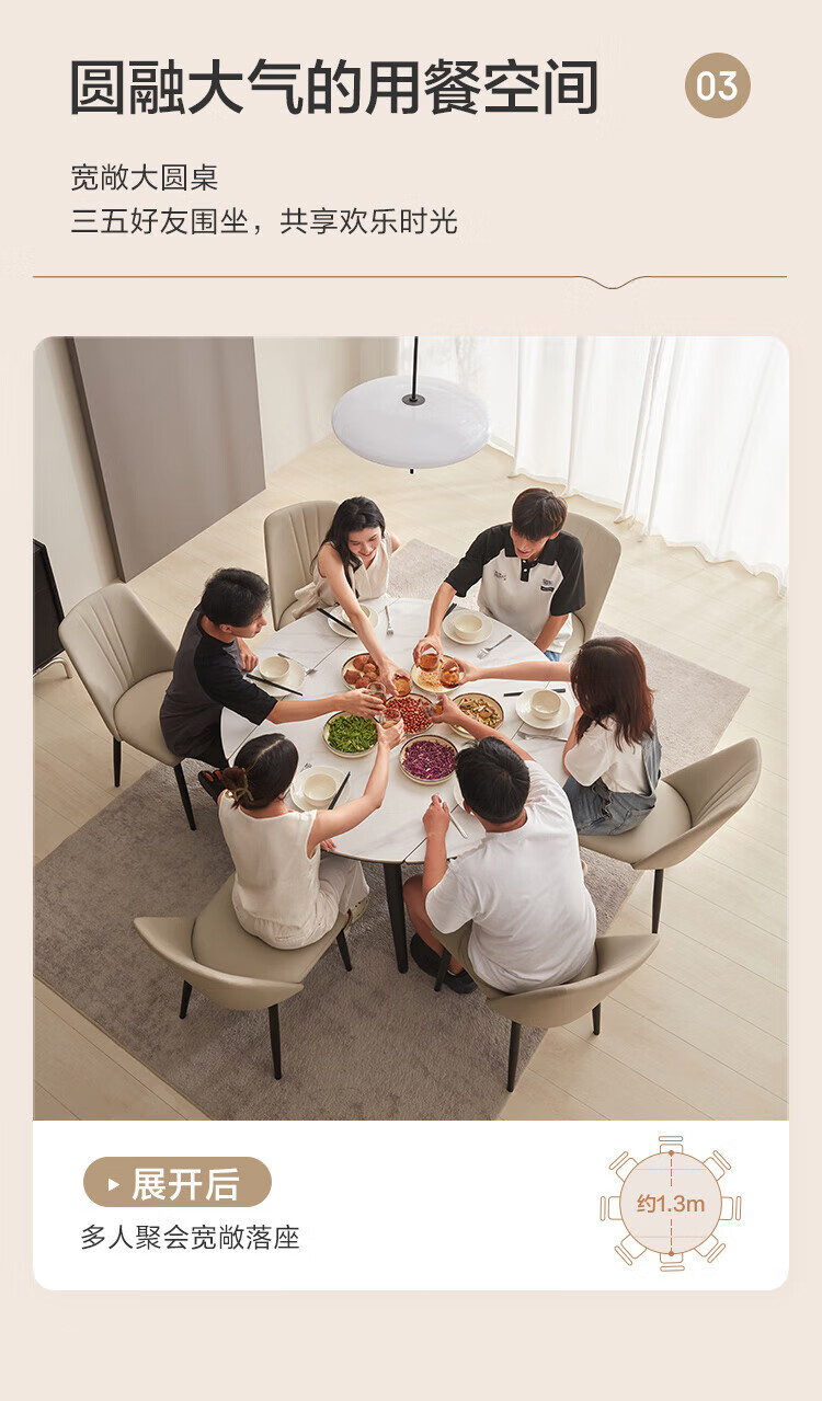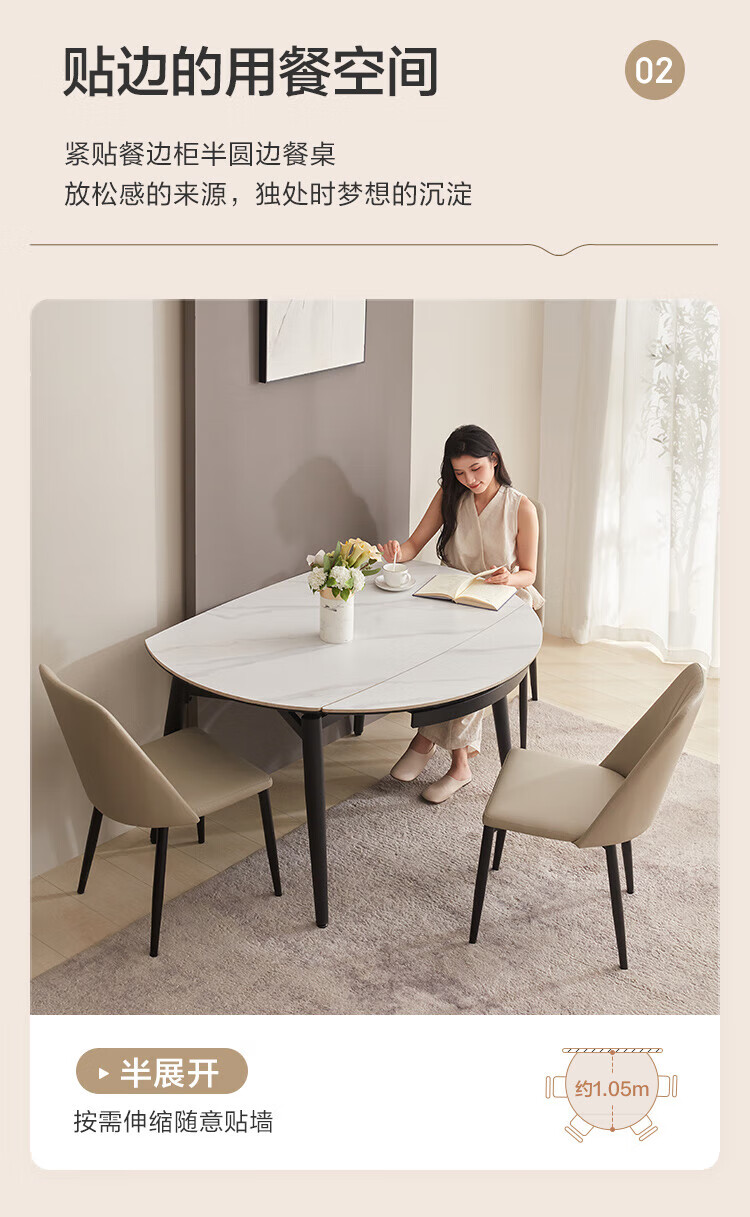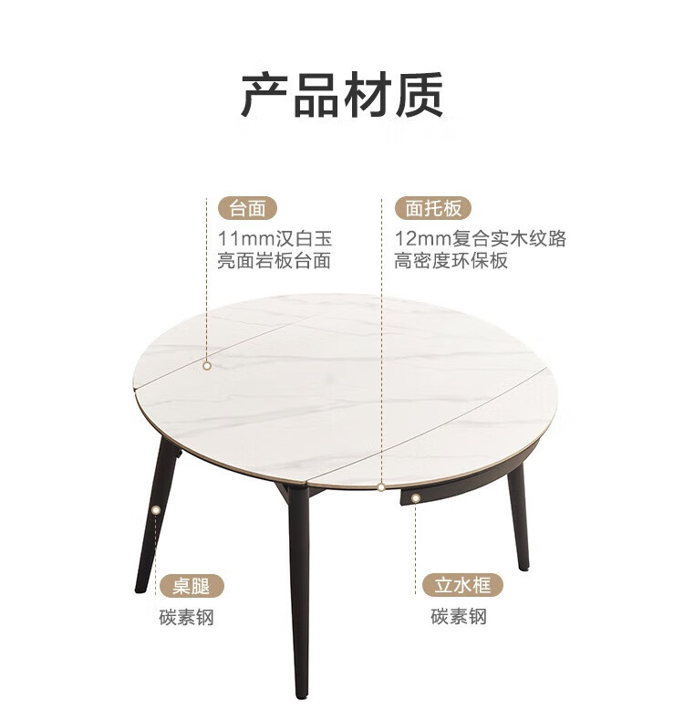 Jingjing Tokyo Made Home Jingyan Dining Table Home Slate Dining Table Small Apartment Retractable Dining Table and Chair Combination 1.3m1 Table 4 Chairs