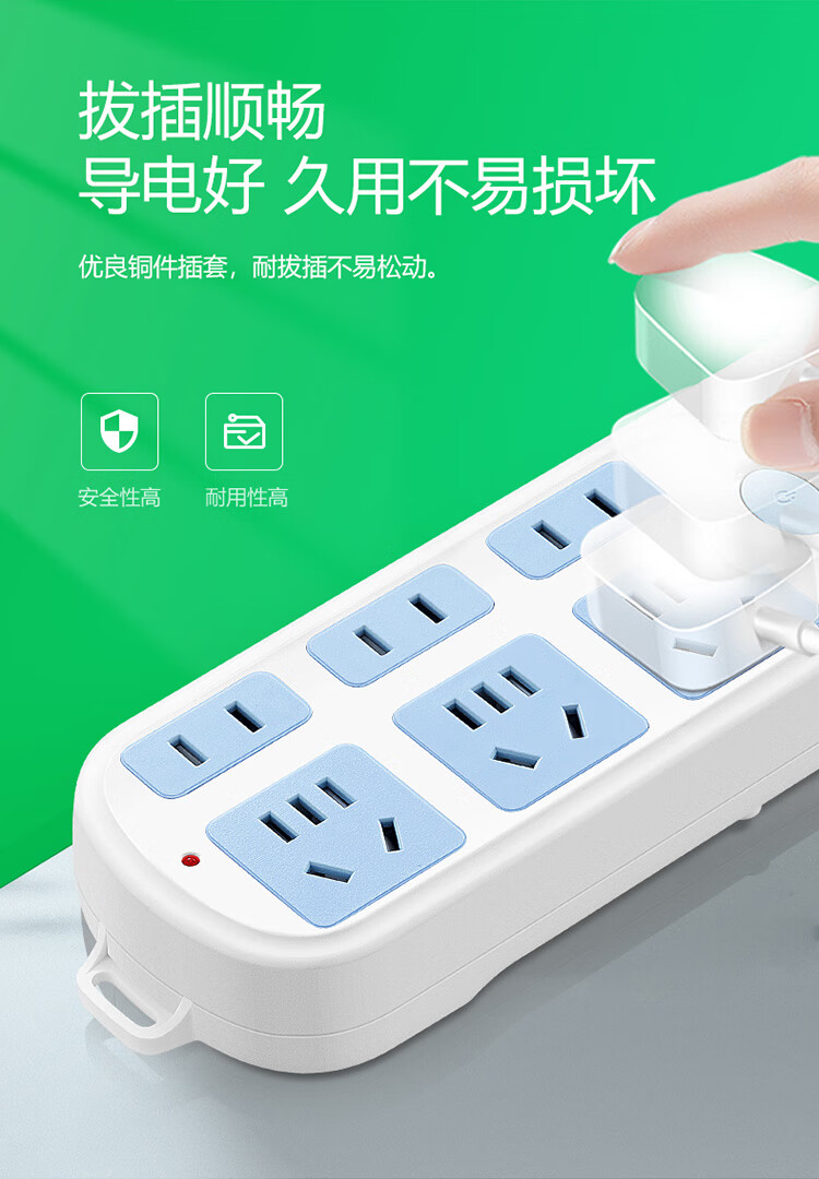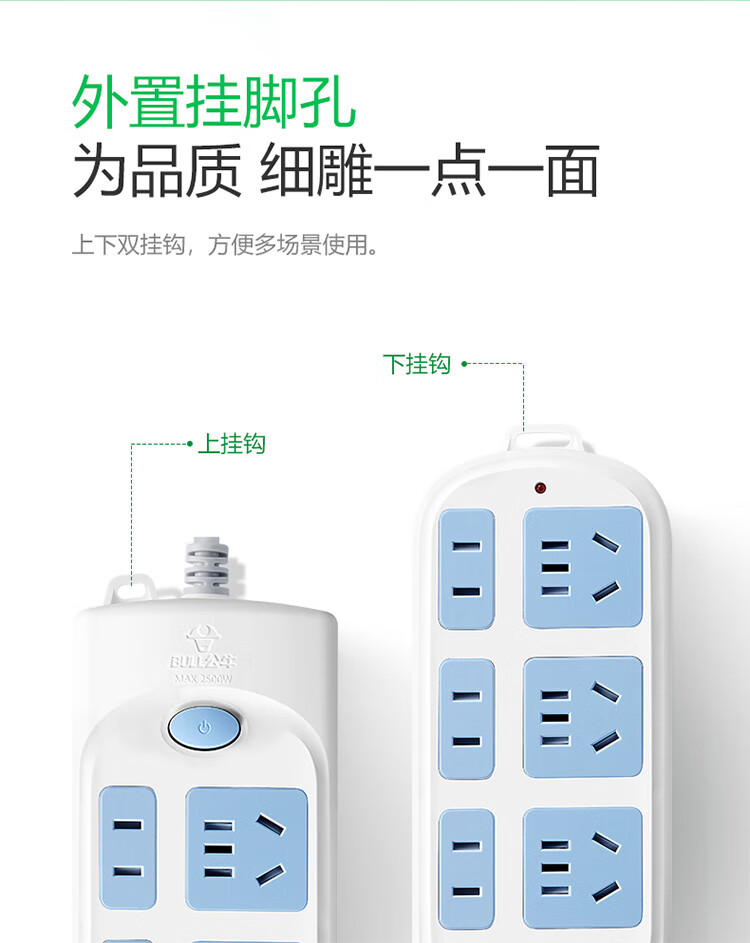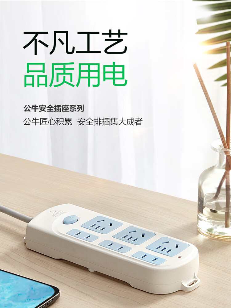 Bull (BULL) six-position two-three plug multi-hole GN-609 3-meter new national standard row socket wiring drag strip master switch plug patch panel wire tray socket surface-mounted expansion multi-hole socket