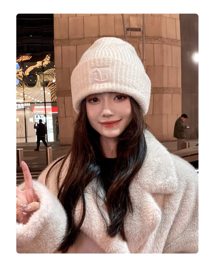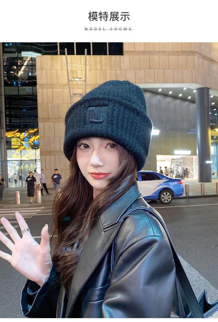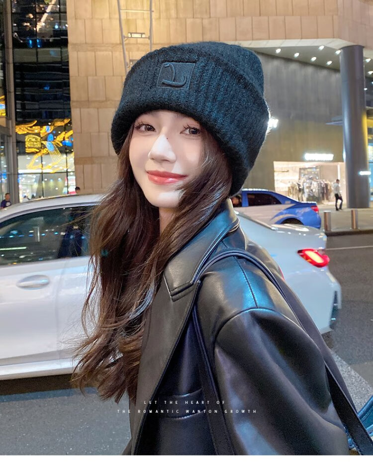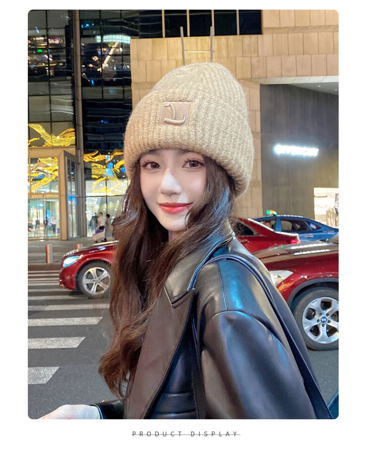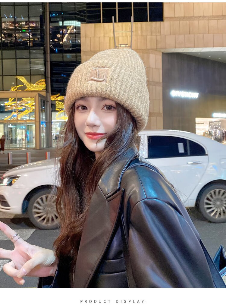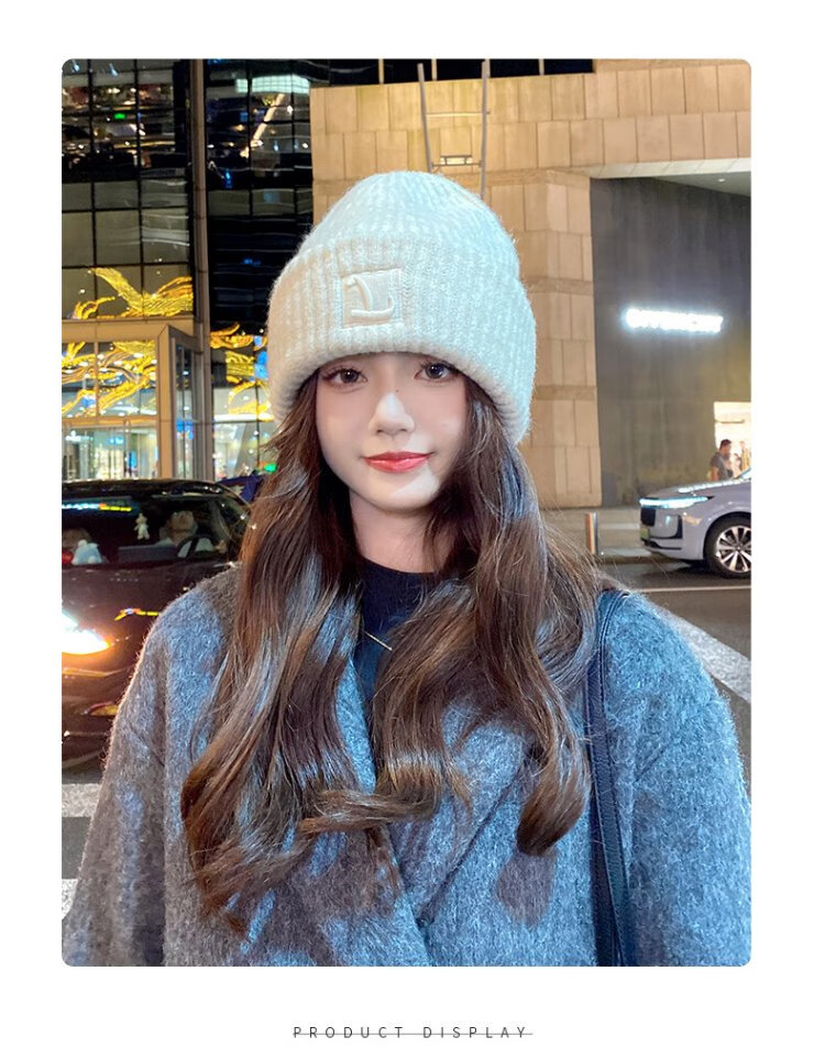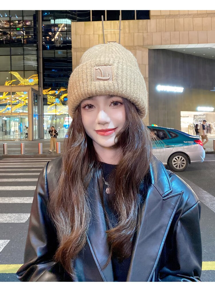 Dusenna large head circumference woolen hat winter women's warm wool pile hat showing face small outdoor cold hat knitted hat