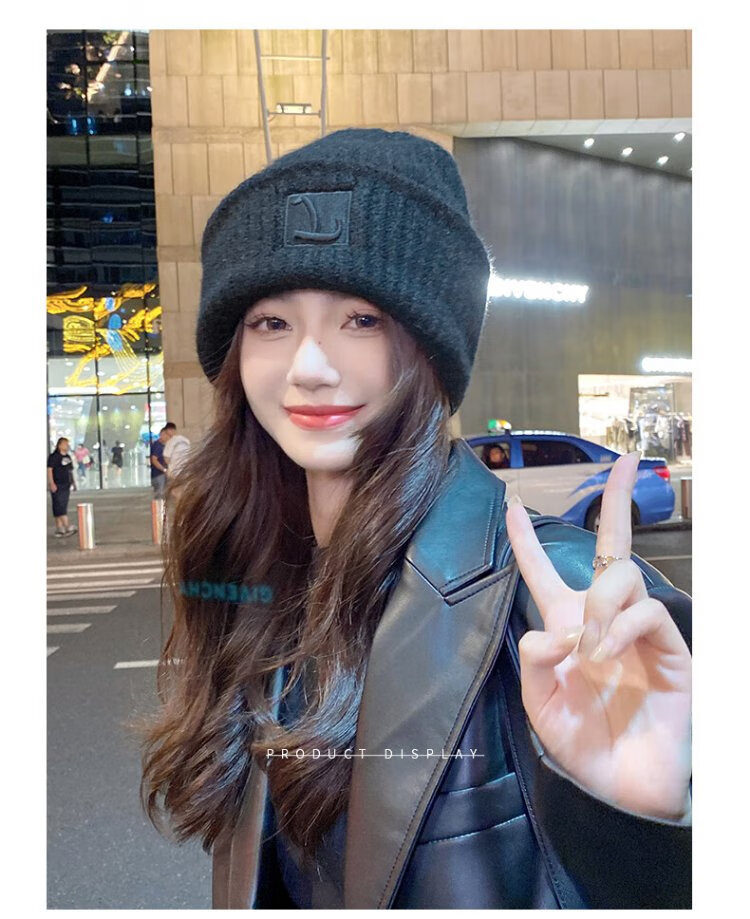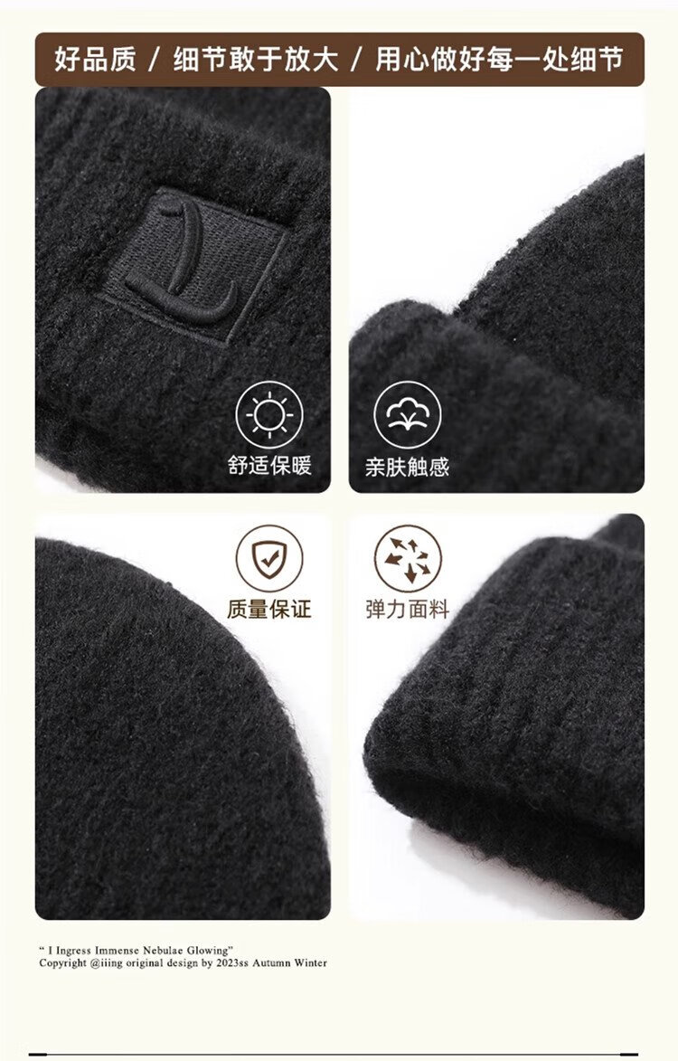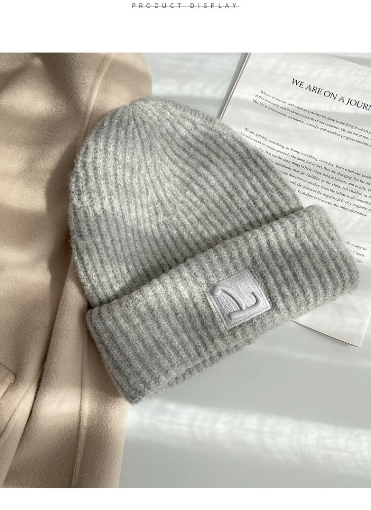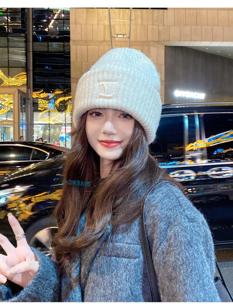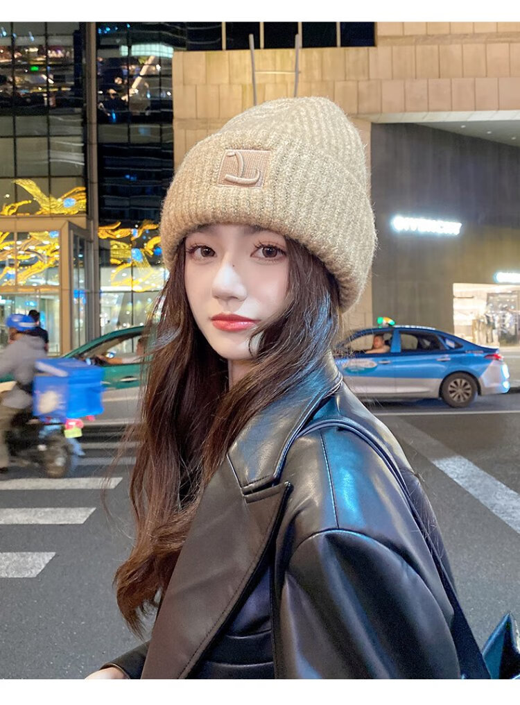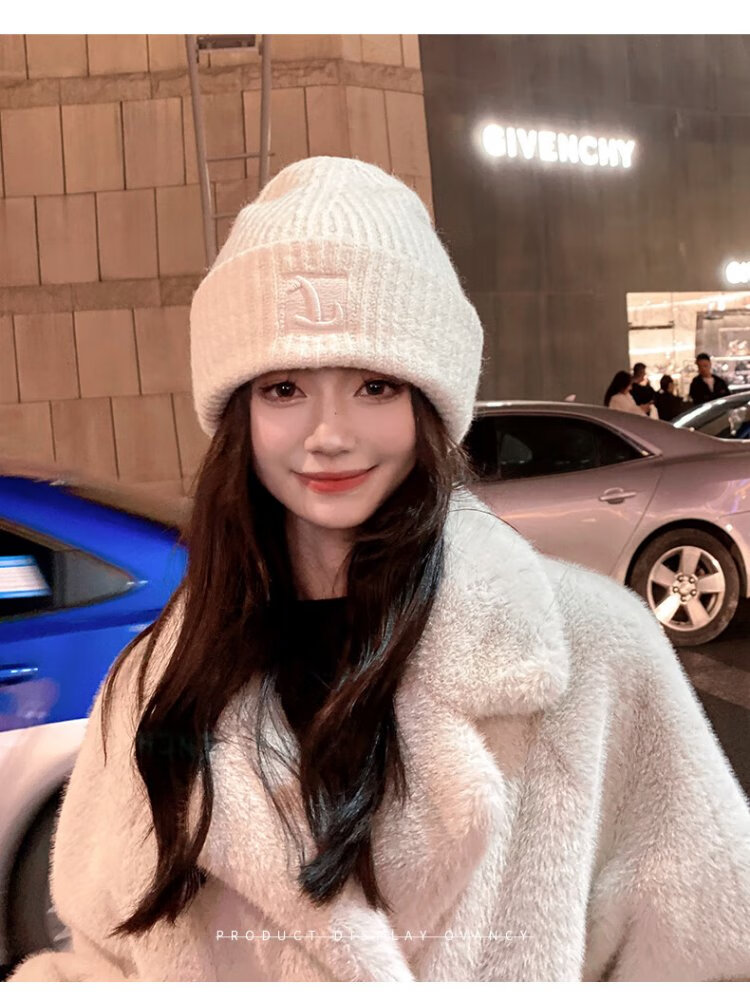 Dusenna large head circumference woolen hat winter women's warm wool pile hat showing face small outdoor cold hat knitted hat
