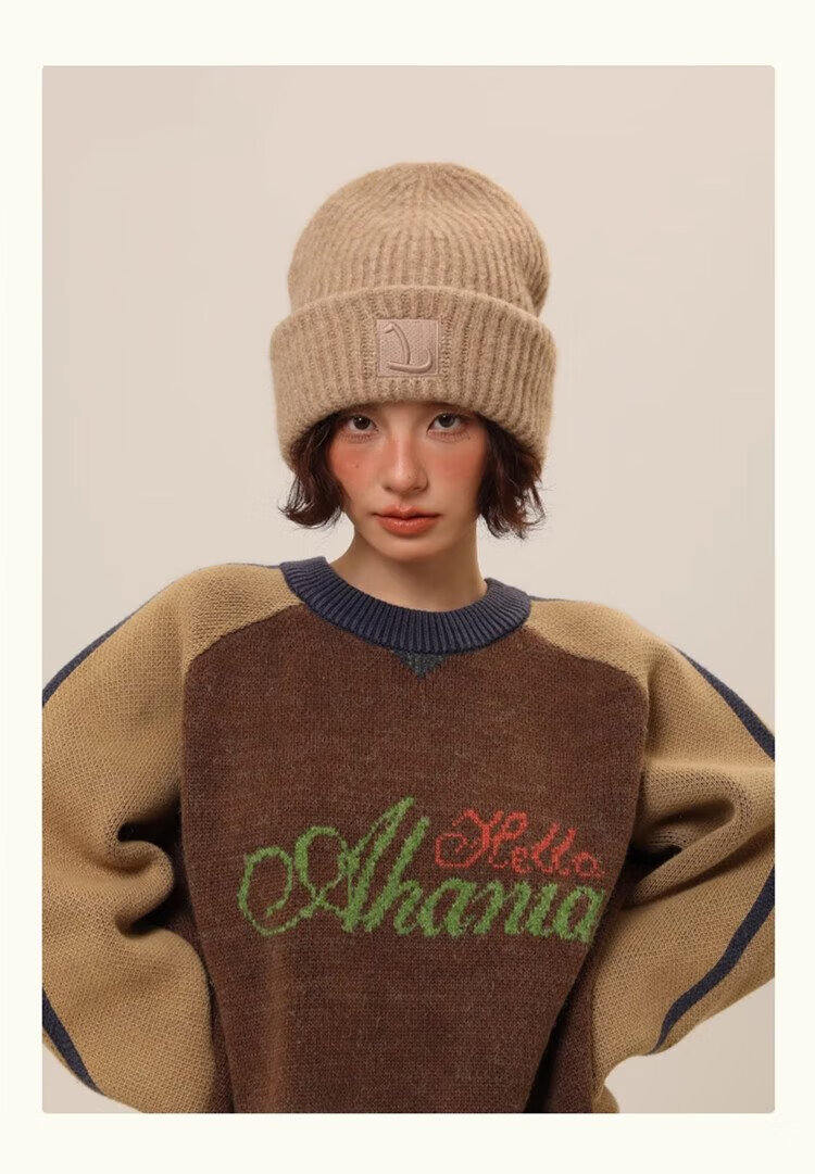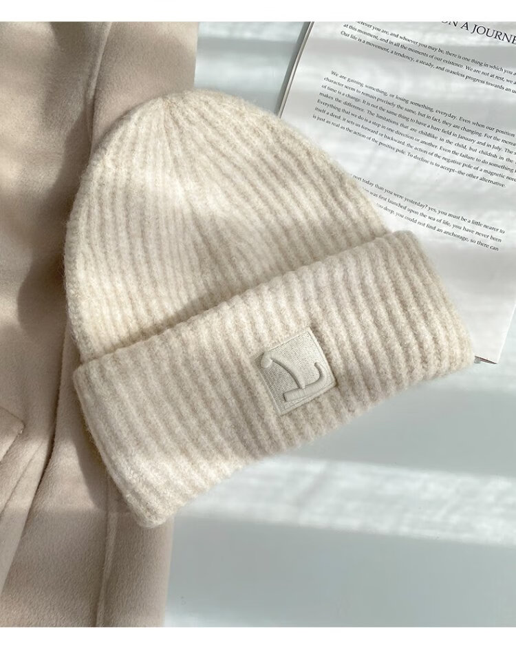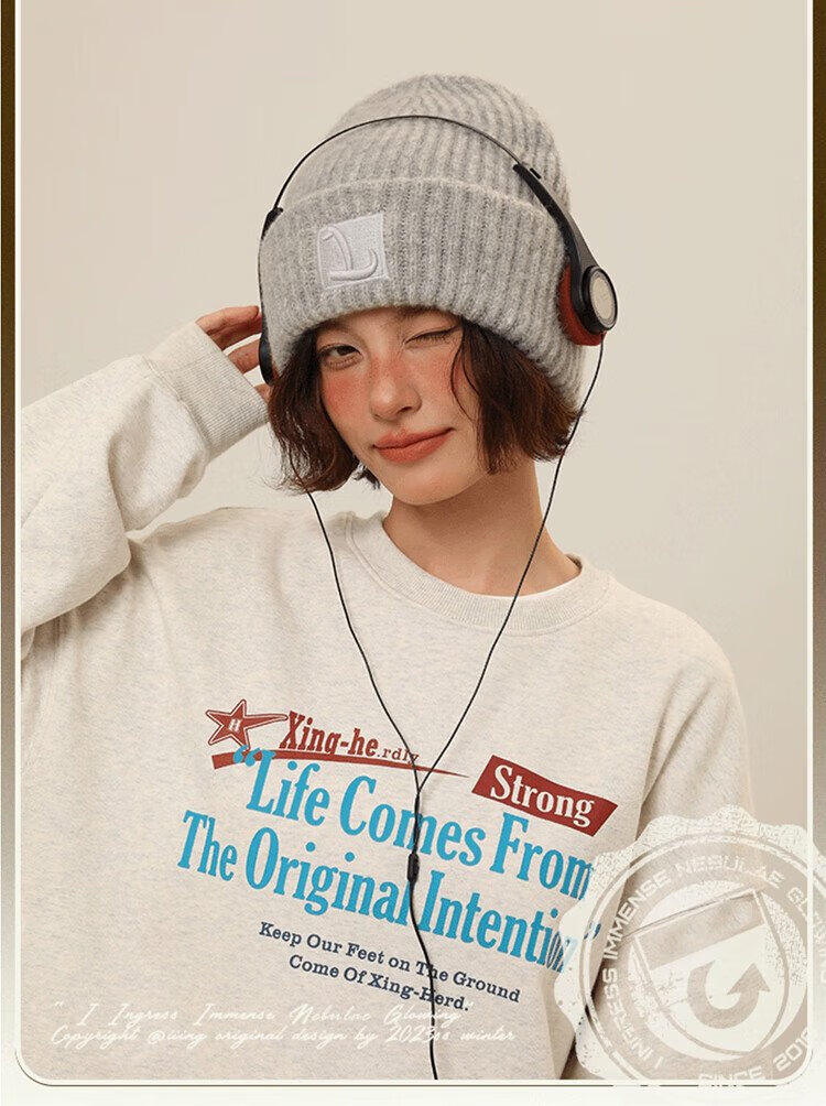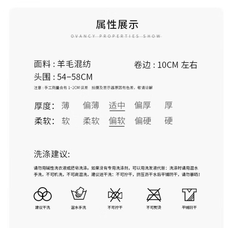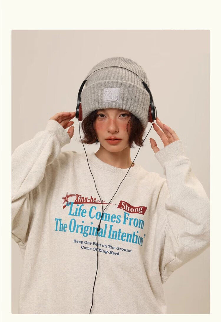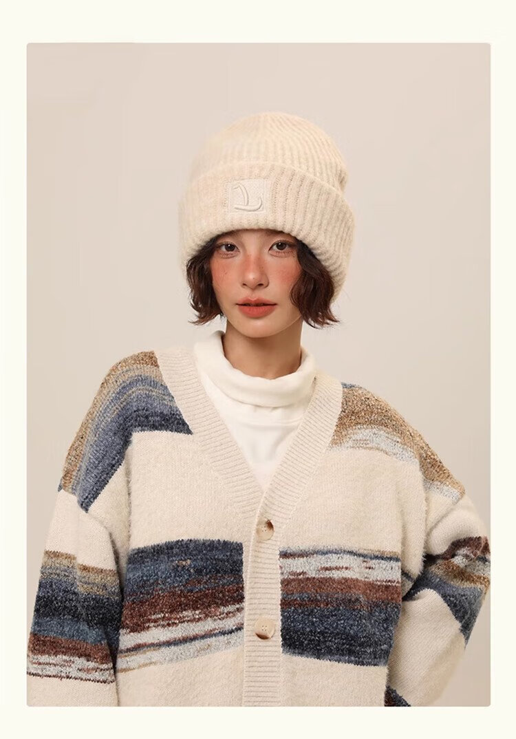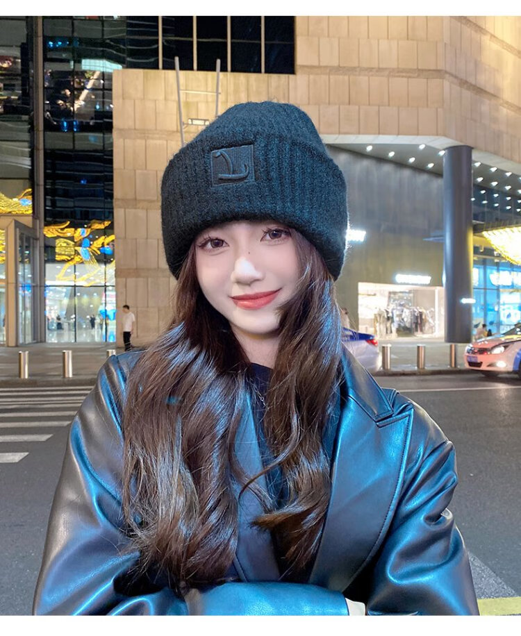 Dusenna large head circumference woolen hat winter women's warm wool pile hat showing face small outdoor cold hat knitted hat