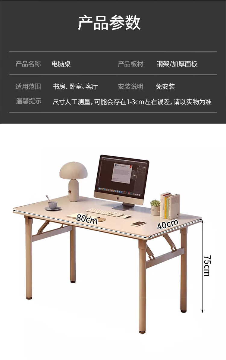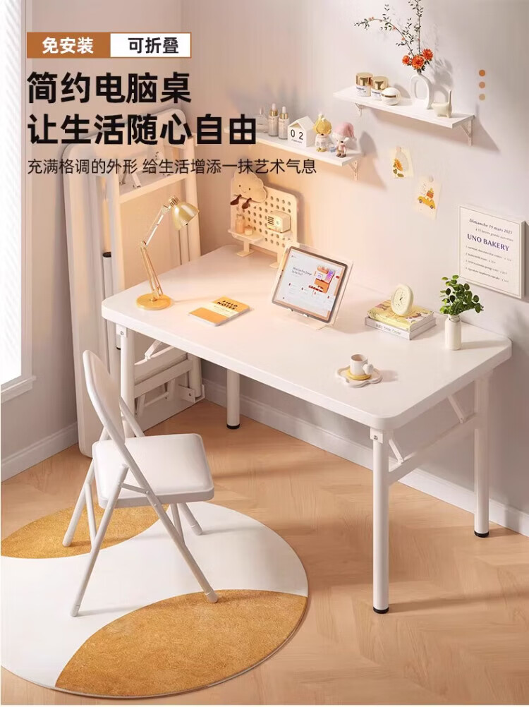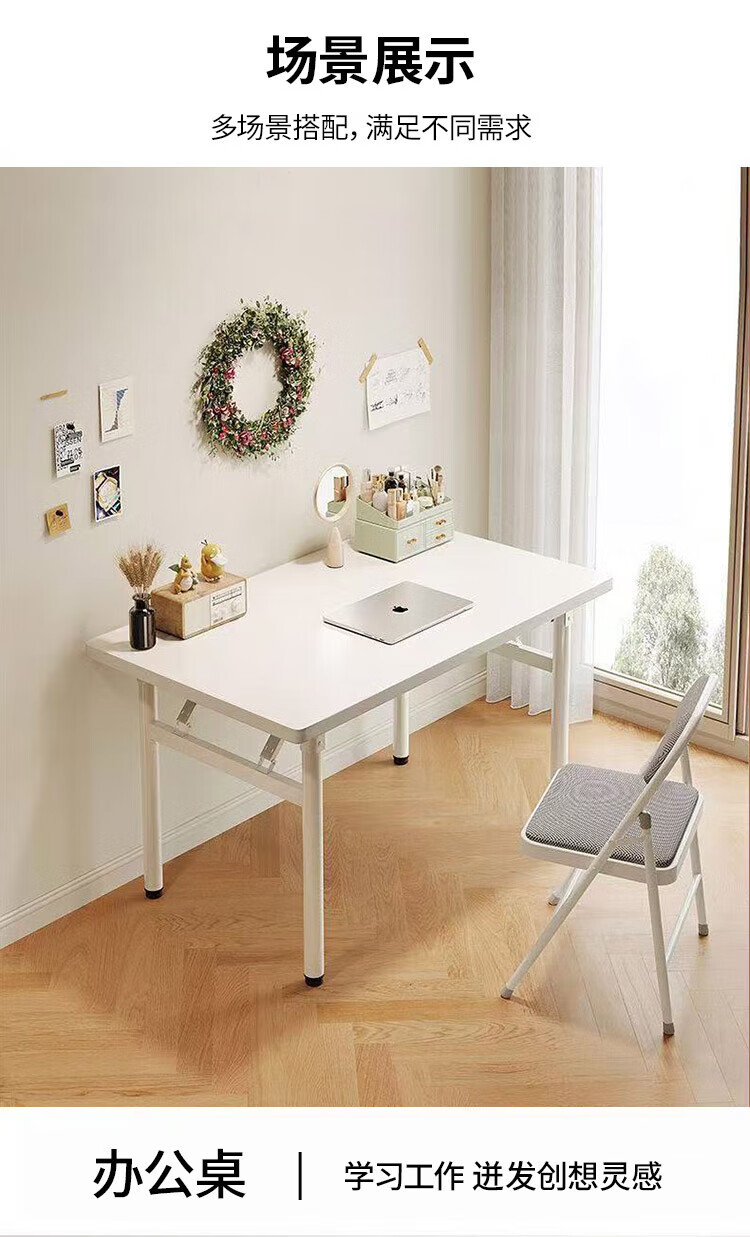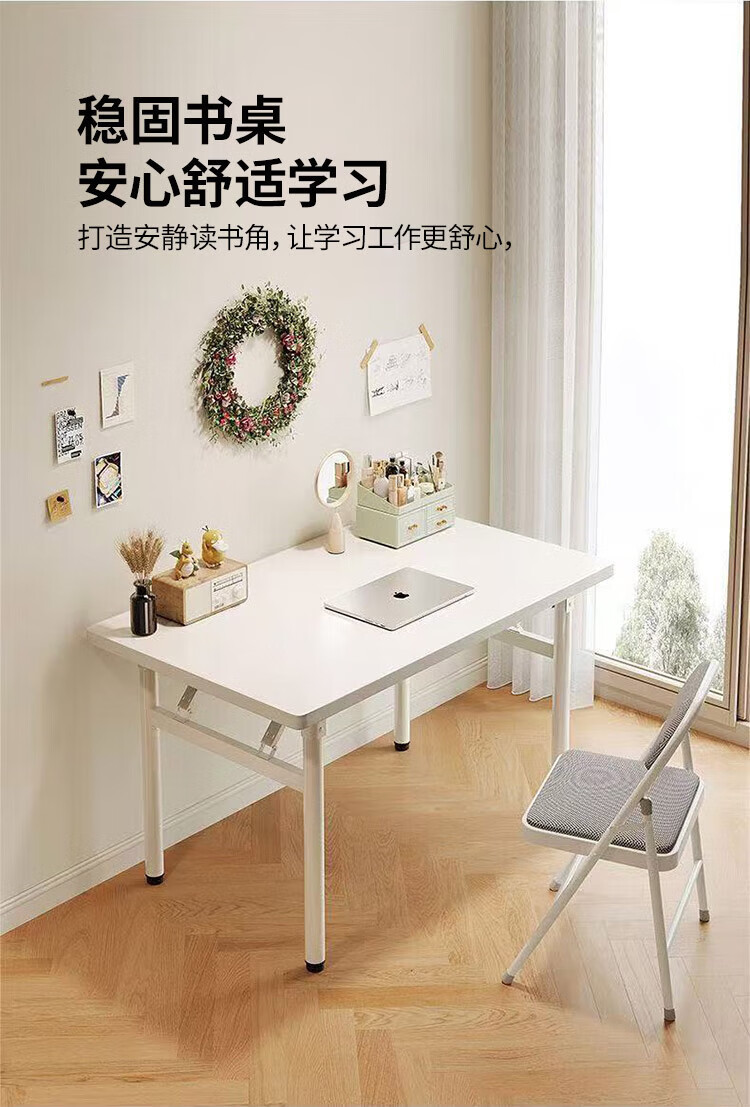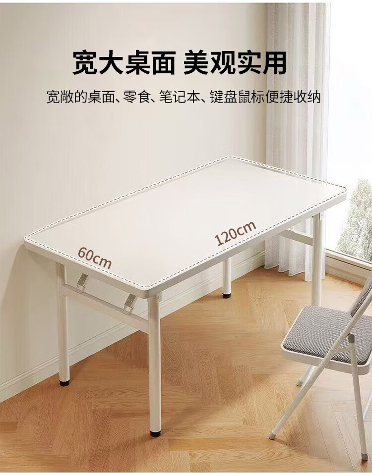 Jingcai computer table home folding table desk study table office desk training table long table JZ35 white 120*60cm