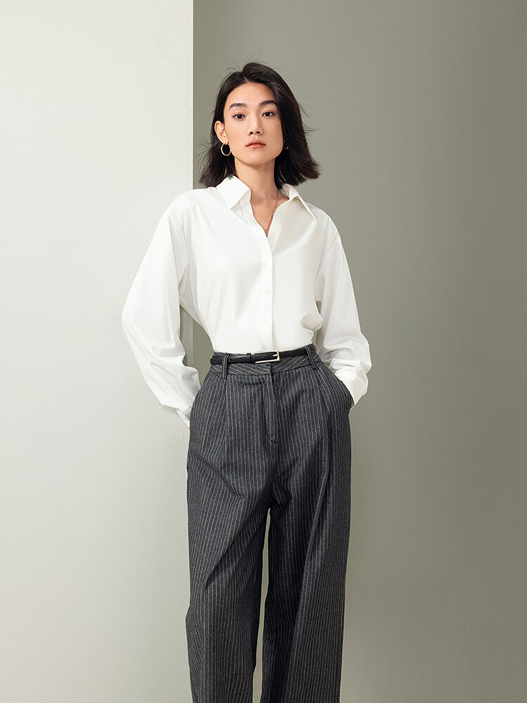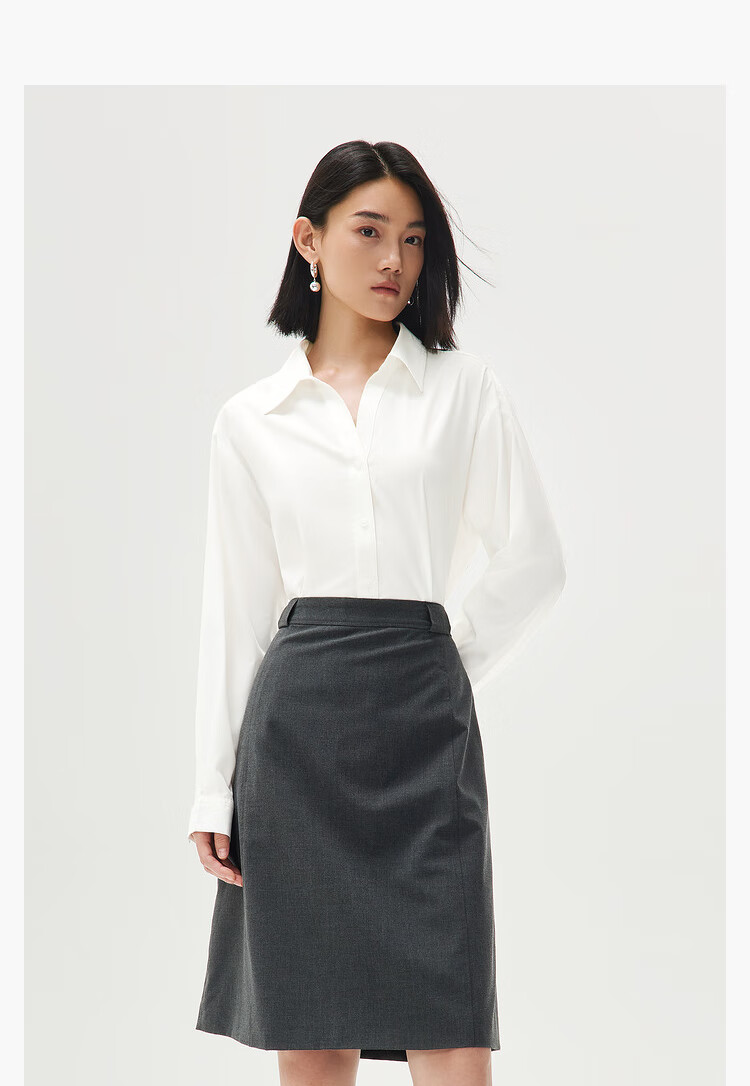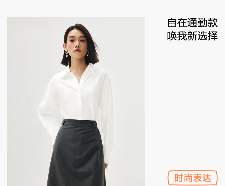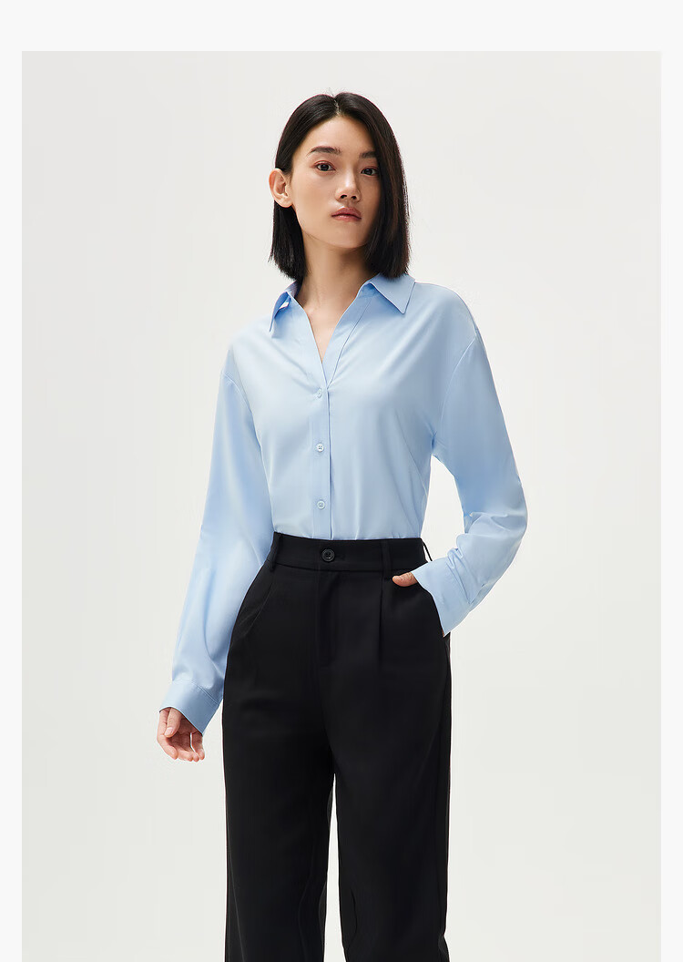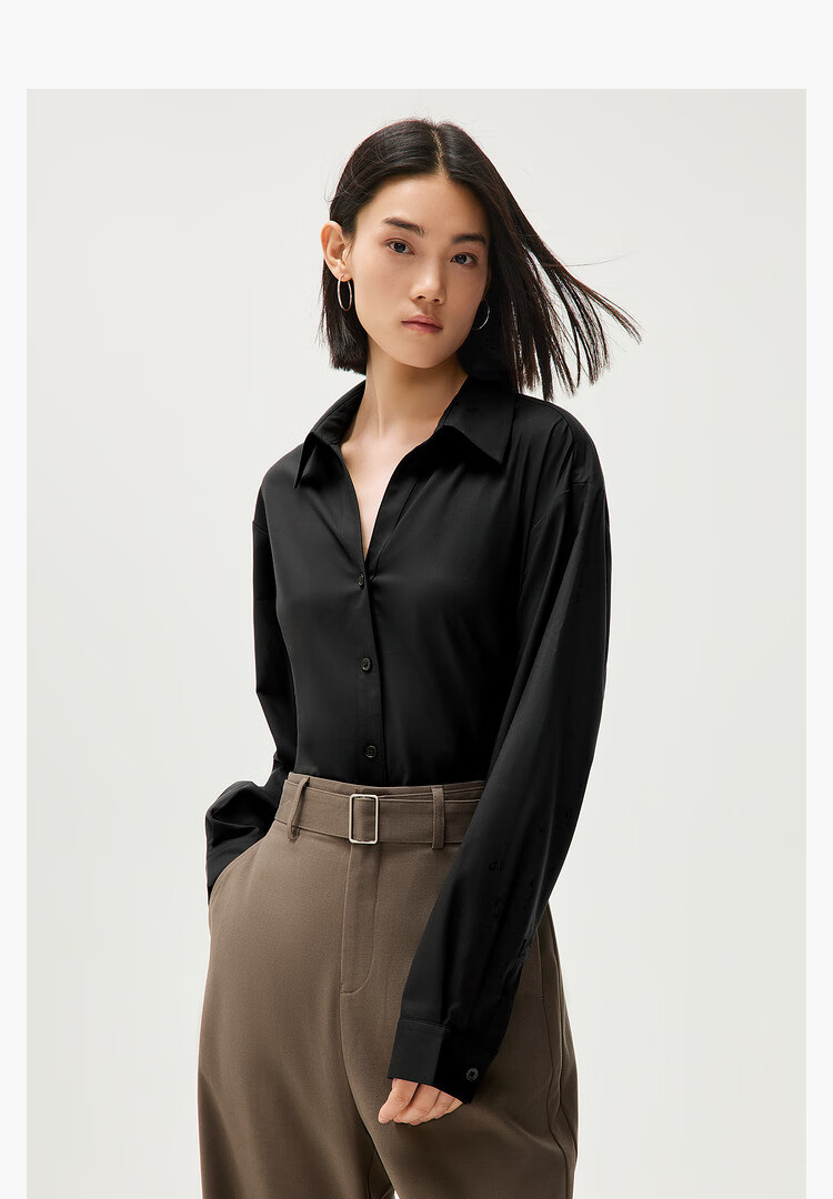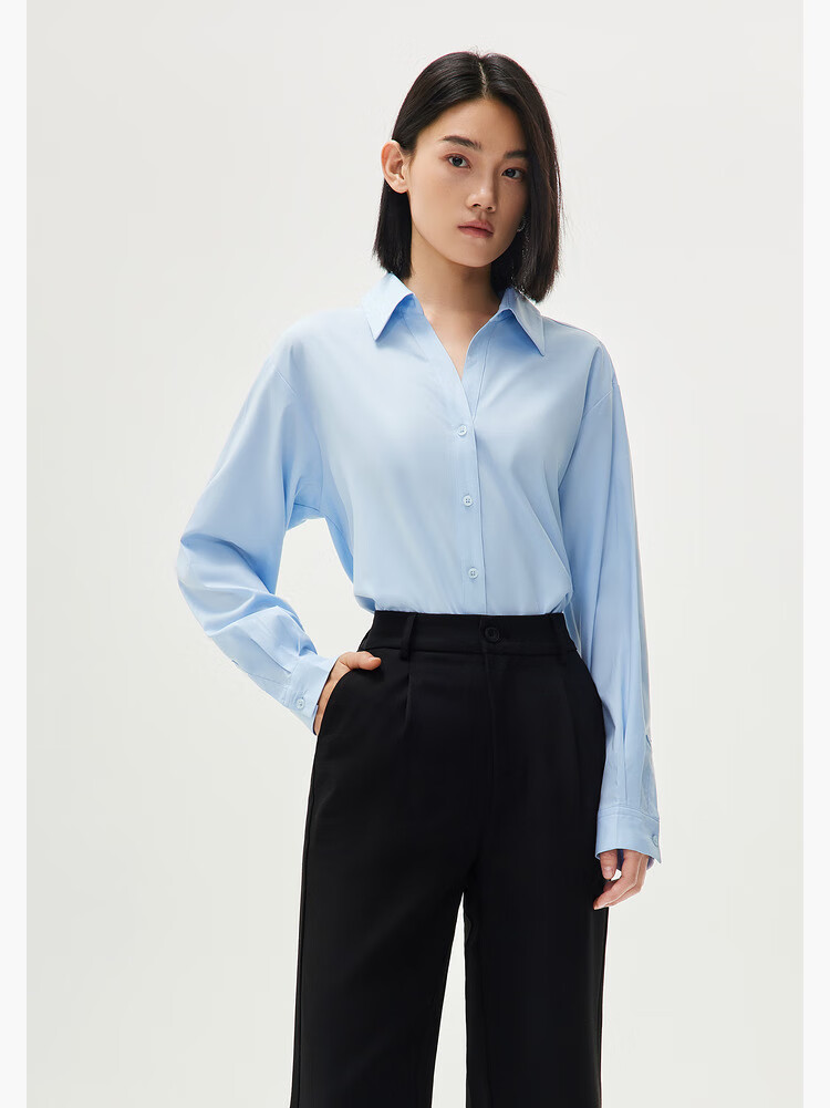 HLA Heilan long-sleeved shirt women's spring and autumn mulberry silk casual shirt for women