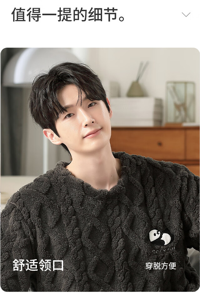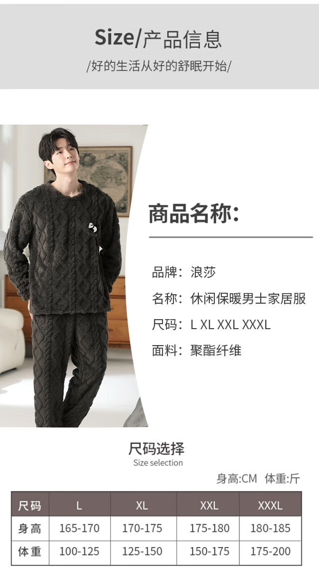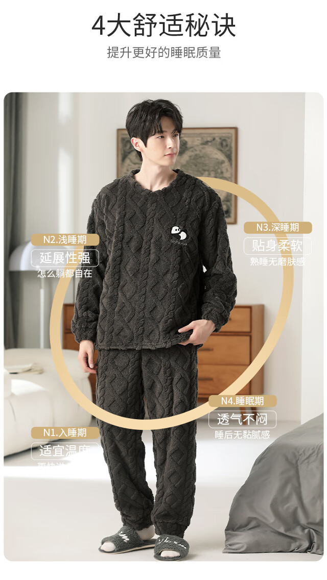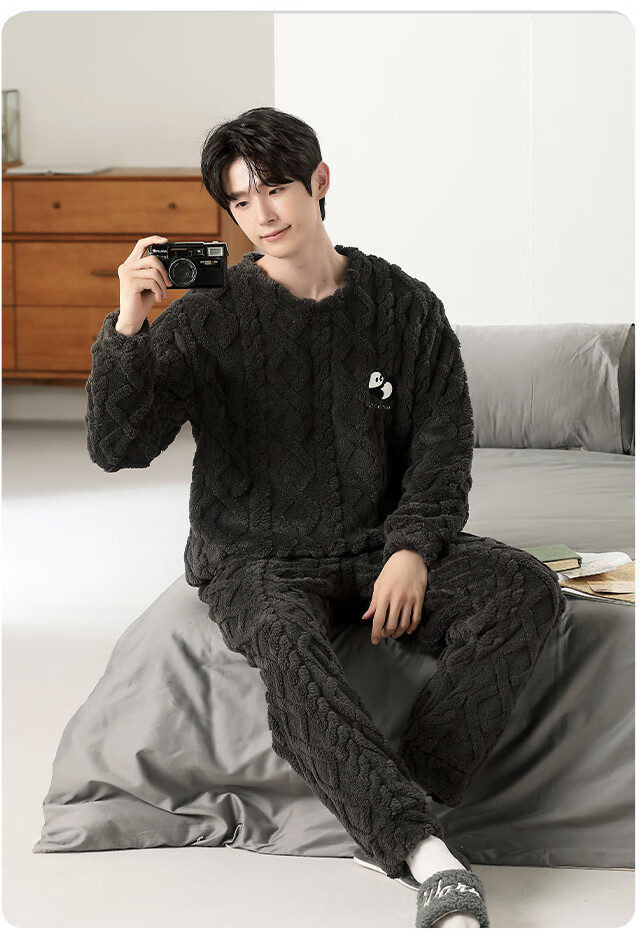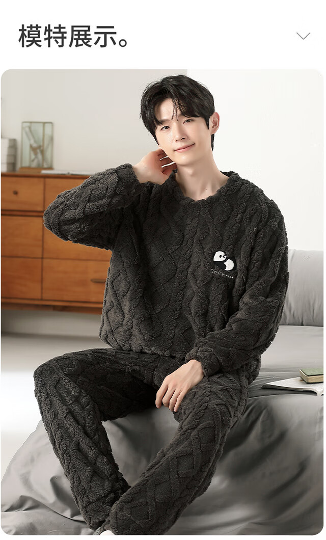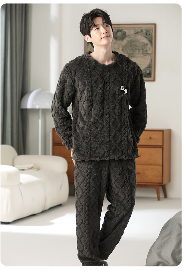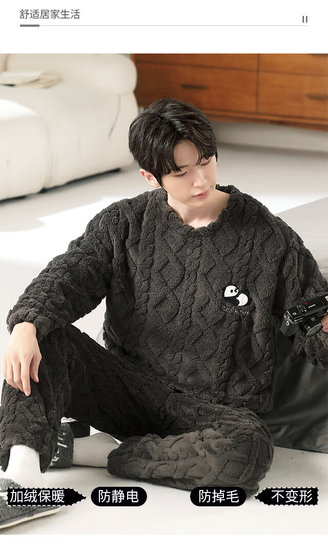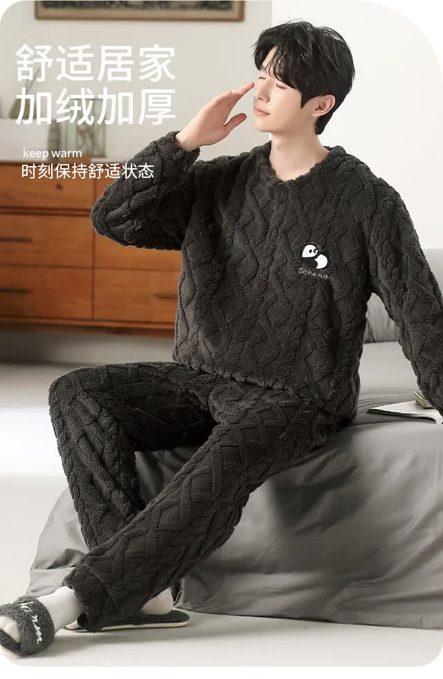 Langsha pajamas men's winter pullover plus velvet thickened coral velvet outer wear home clothes two-piece set men's warm velvet suit