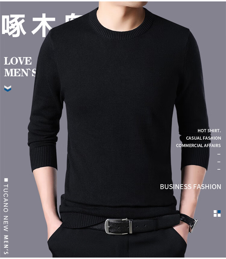 Woodpecker (TUCANO) Turtleneck Sweater Men's Autumn and Winter Fashionable Knitted Sweater Comfortable, Warm and Versatile Men's Tops Bottoming Shirt Black XL