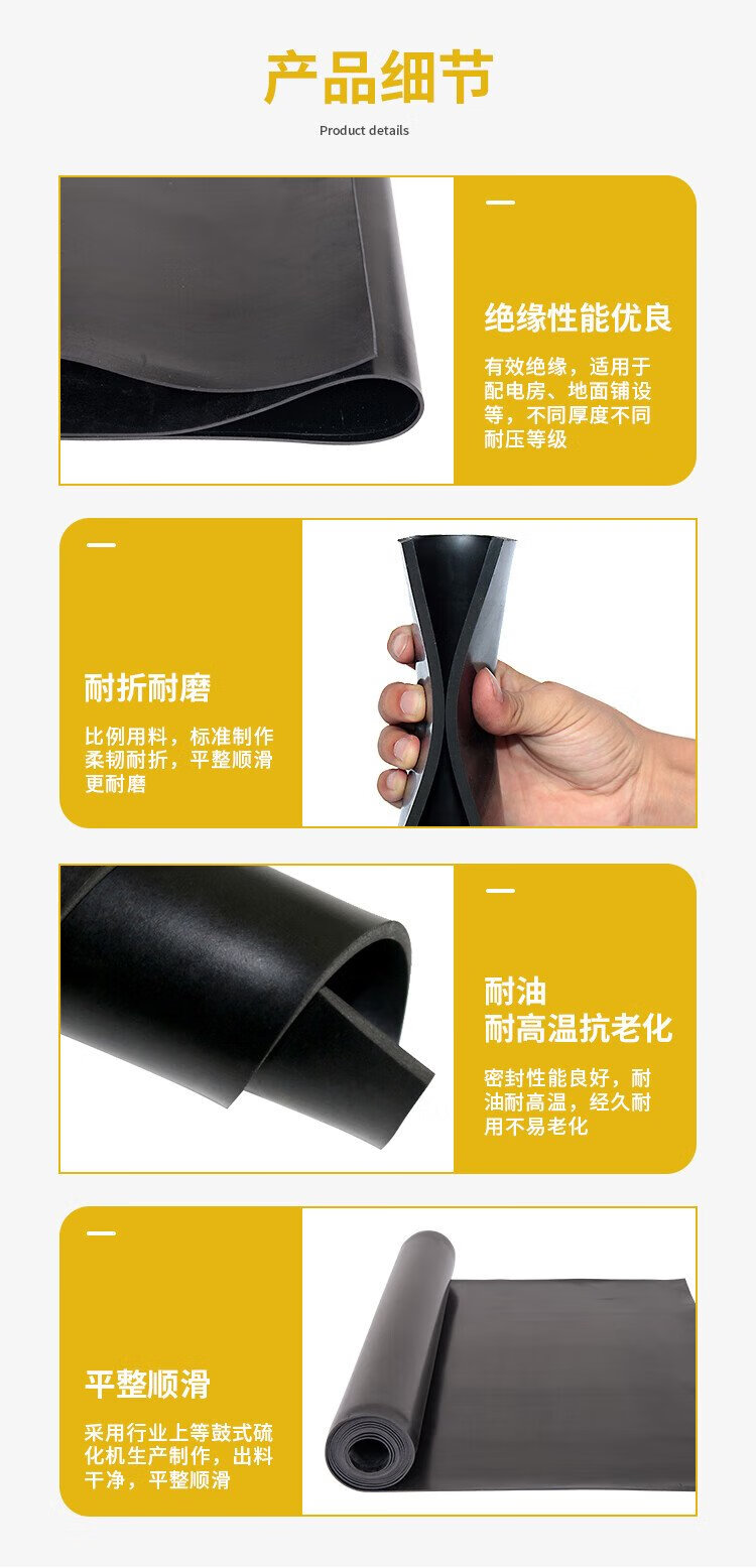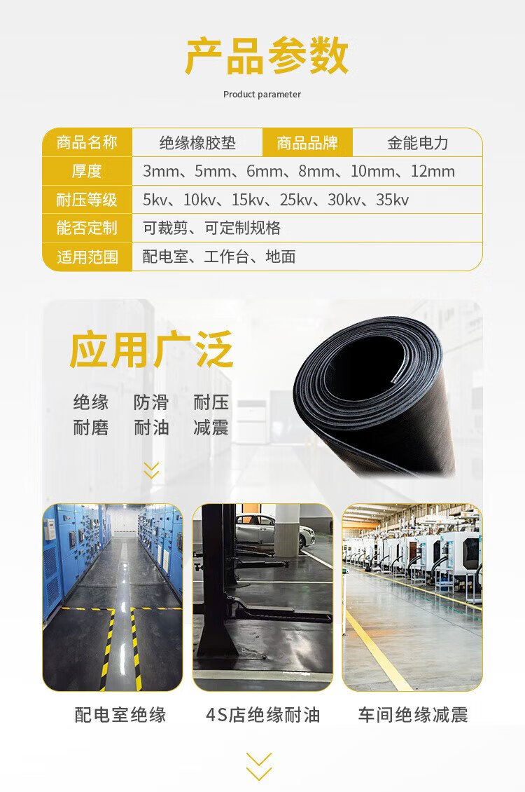 Jinneng Electric Power Insulating Mat 5kv 3mm thick black flat surface 1m*1m high voltage insulating mat power distribution room insulating floor mat