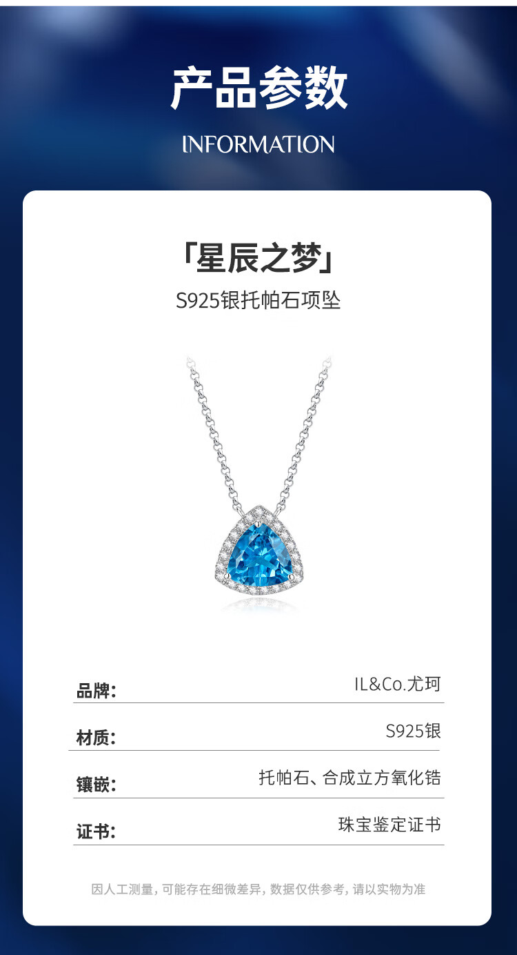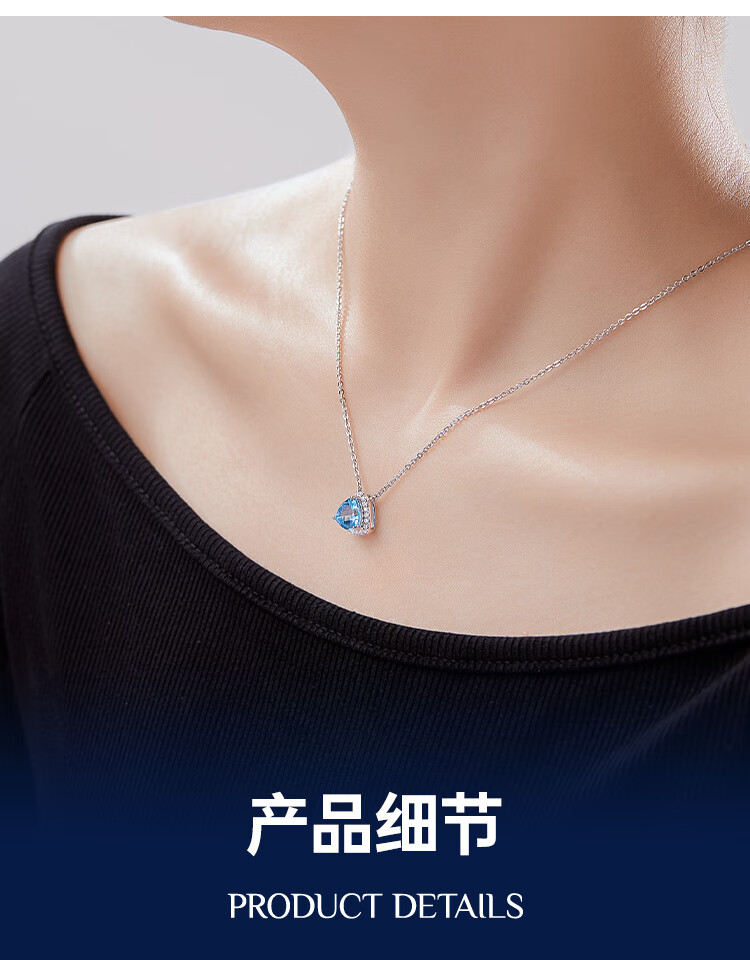 IL&CO Youke Water Drop Necklace Women's Light Luxury Topaz Clavicle Chain Birthday Valentine's Day Gift for Girlfriend and Wife
