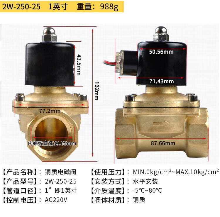 ELECALL solenoid valve (1 inch) AC220V copper water valve oil valve air valve normally closed type 2W-250-25