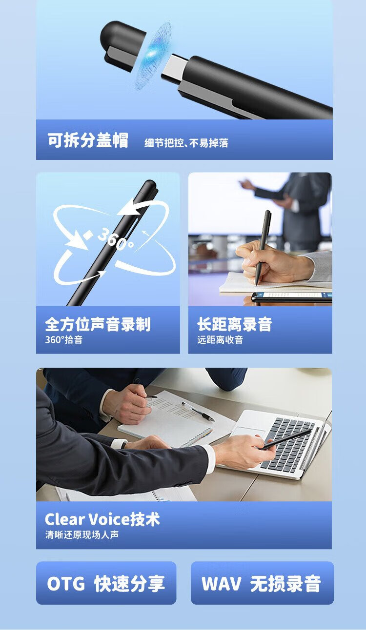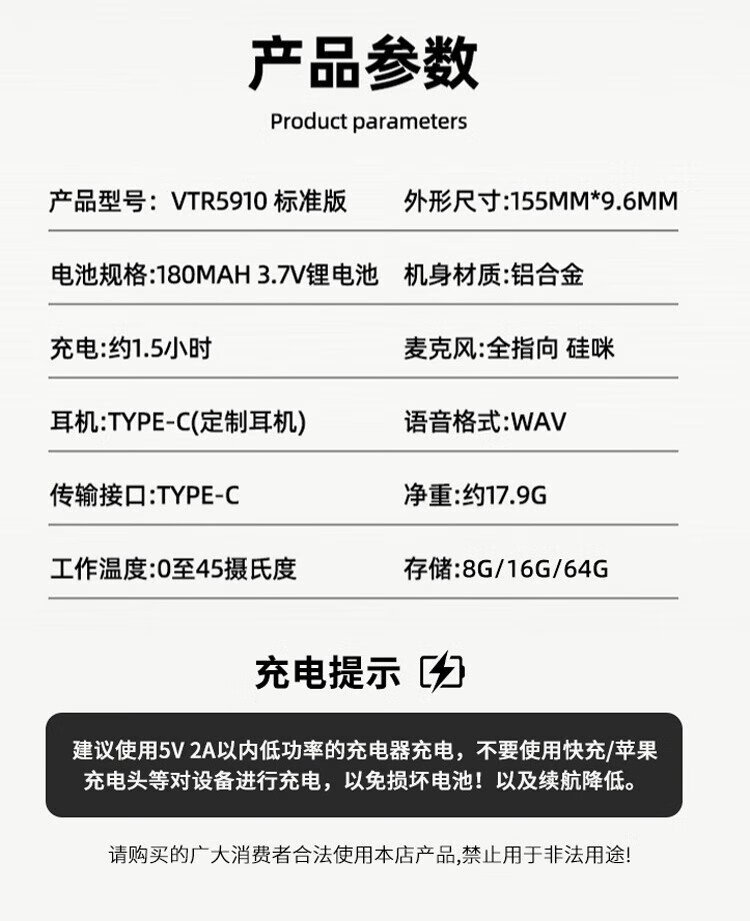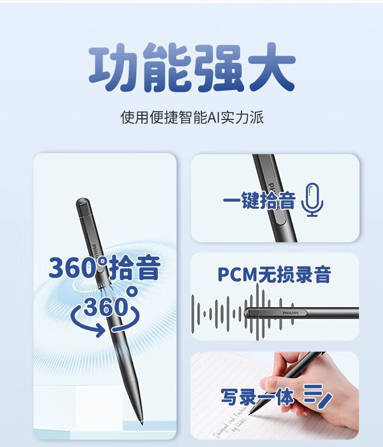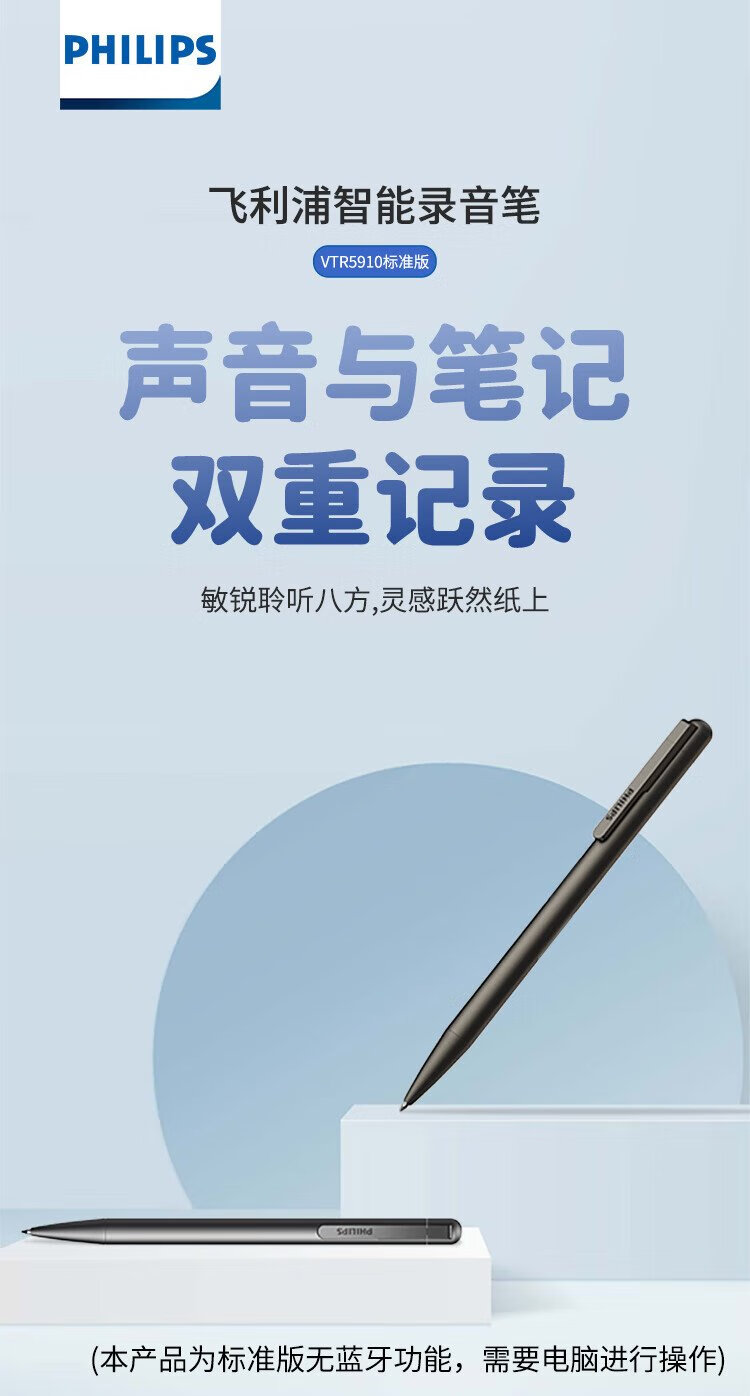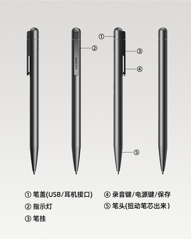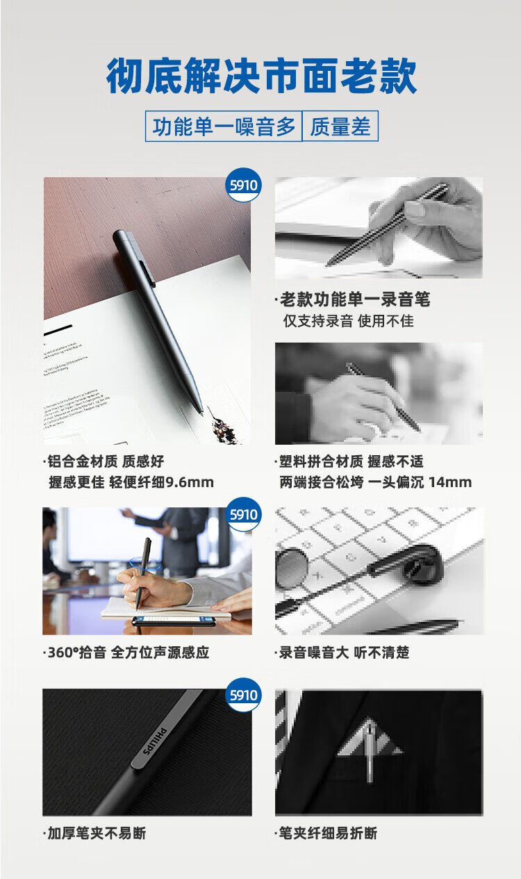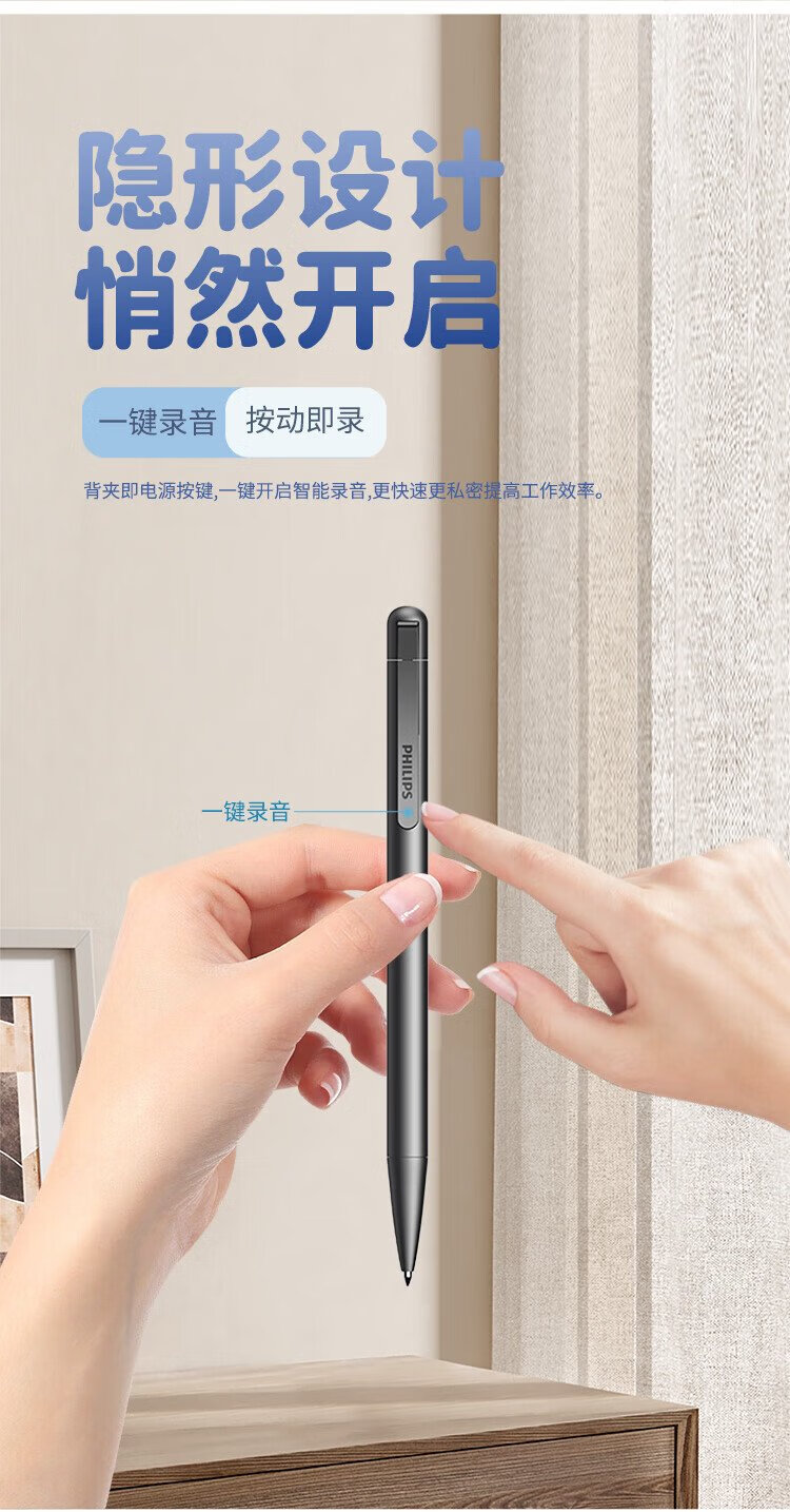 Philips (PHILIPS) pen-type recorder VTR5910 standard version 16G high-definition noise reduction portable small meeting lawyer portable recording evidence collection learning equipment black pen-shaped professional recording artifact
