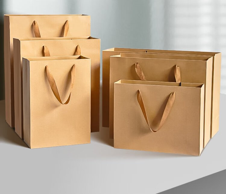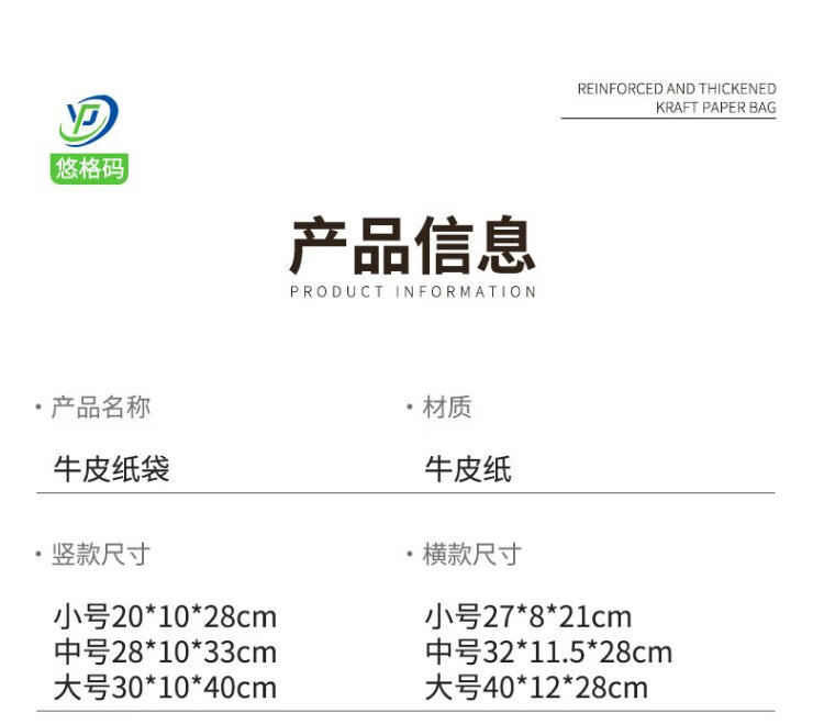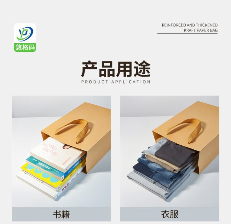 Yugema thickened kraft paper bag handbag gift bag clothing tea gift shopping bag business meeting paper bag original color vertical large size 10 pieces 30*10*40cm