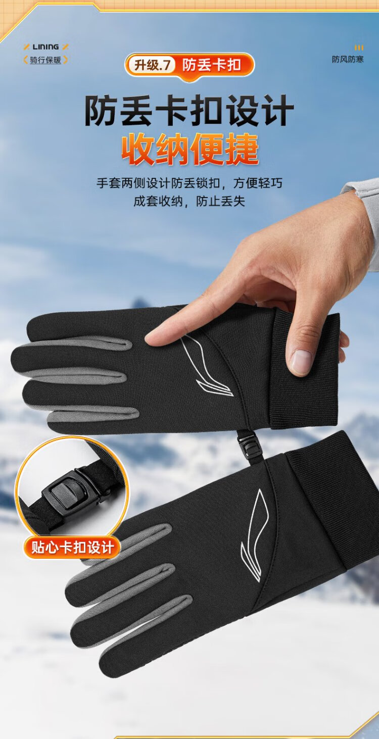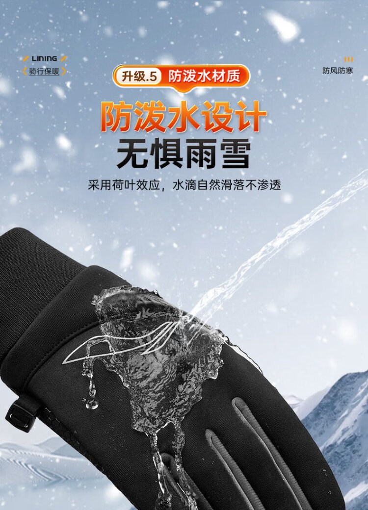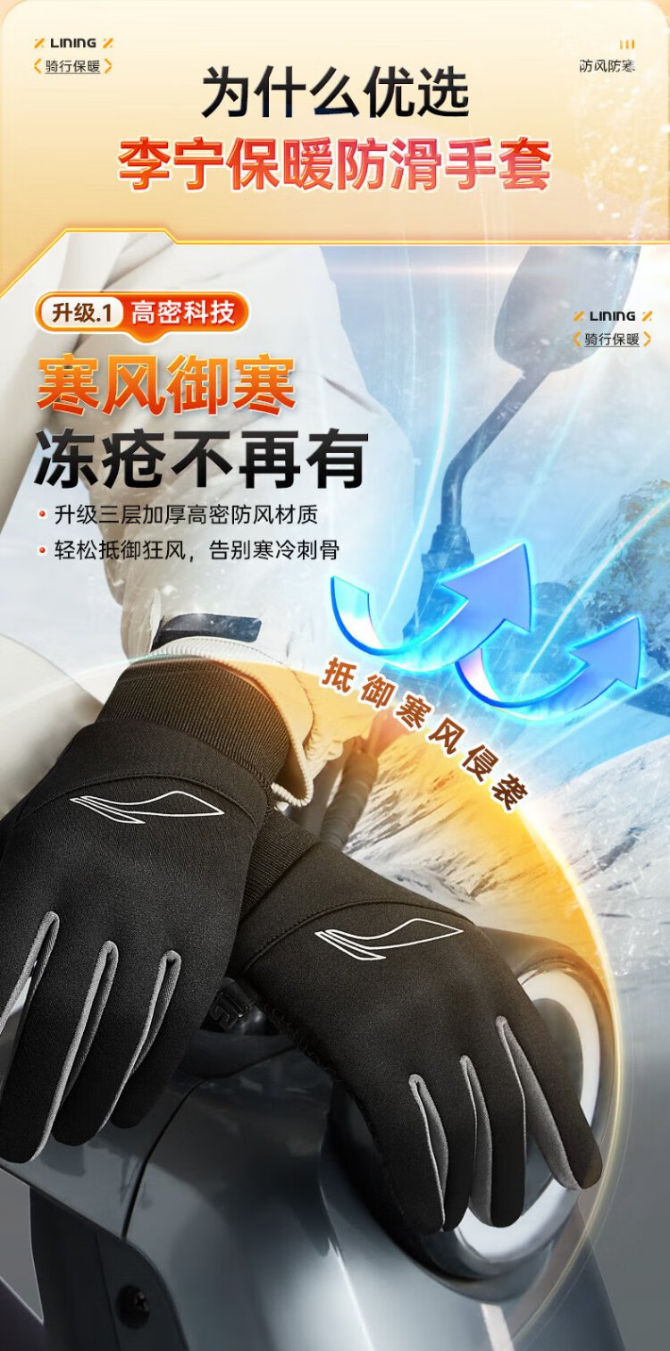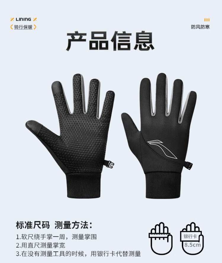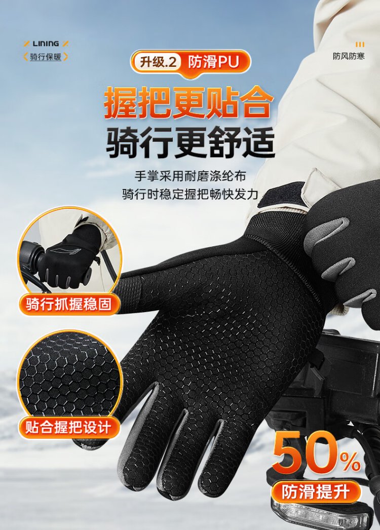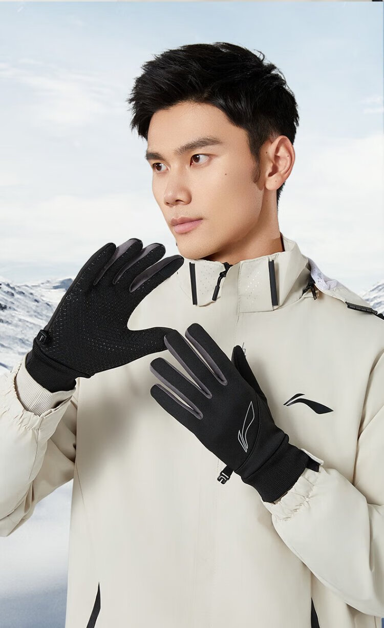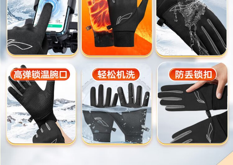Li Ning Cycling Gloves Winter Warmth Windproof and Cold Riding Motorcycle Electric Bicycle Leather Outdoor Sports Touch Screen Skiing