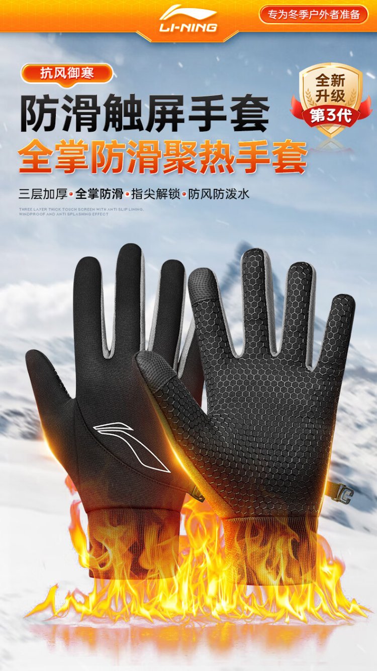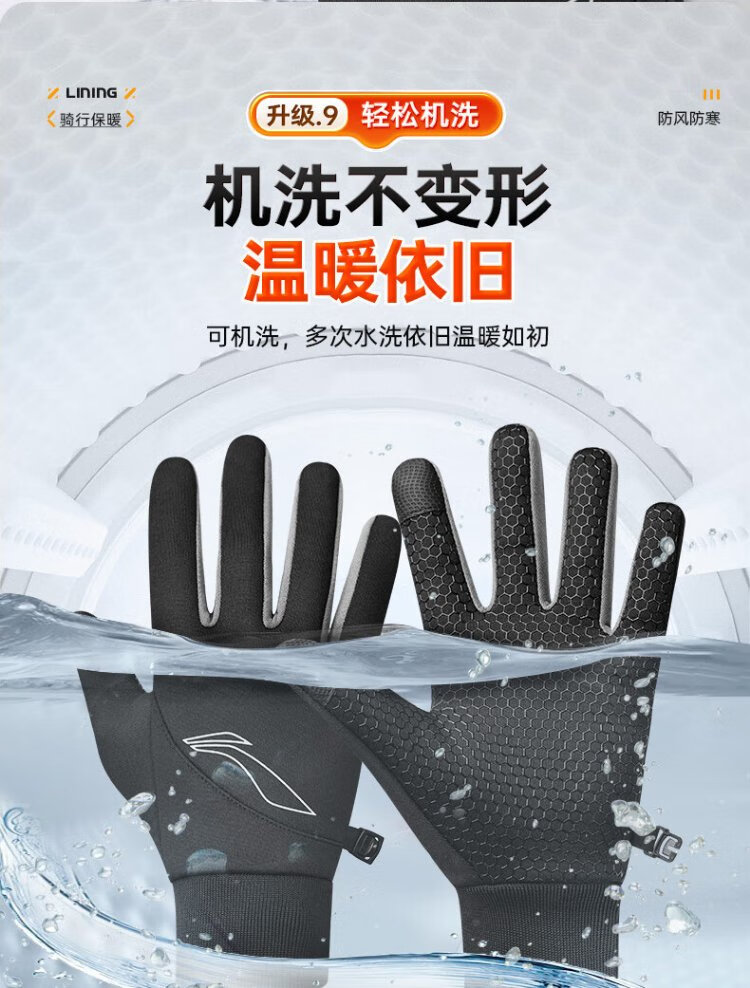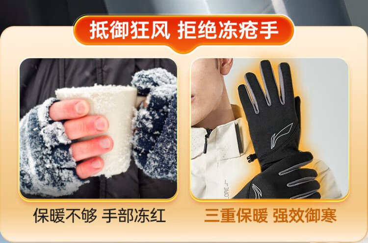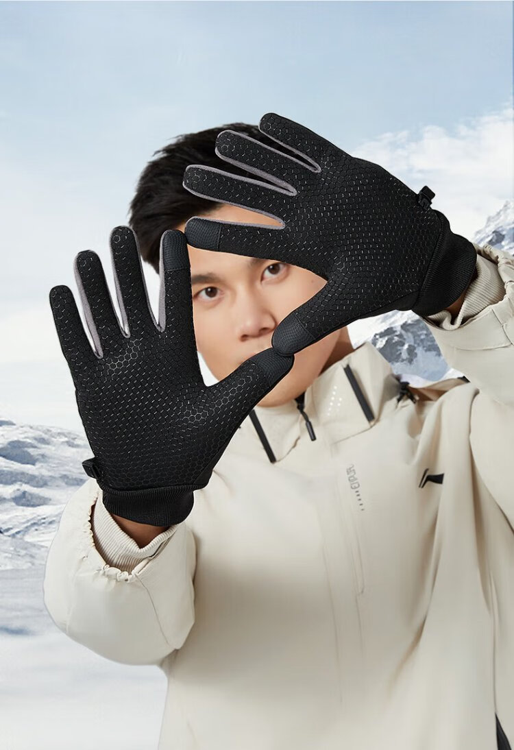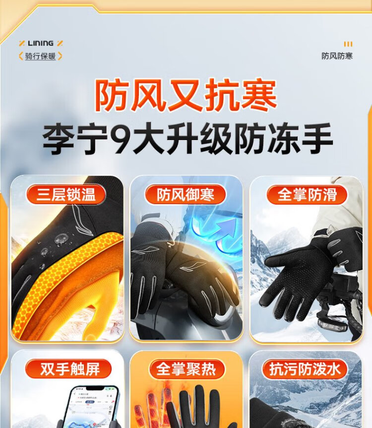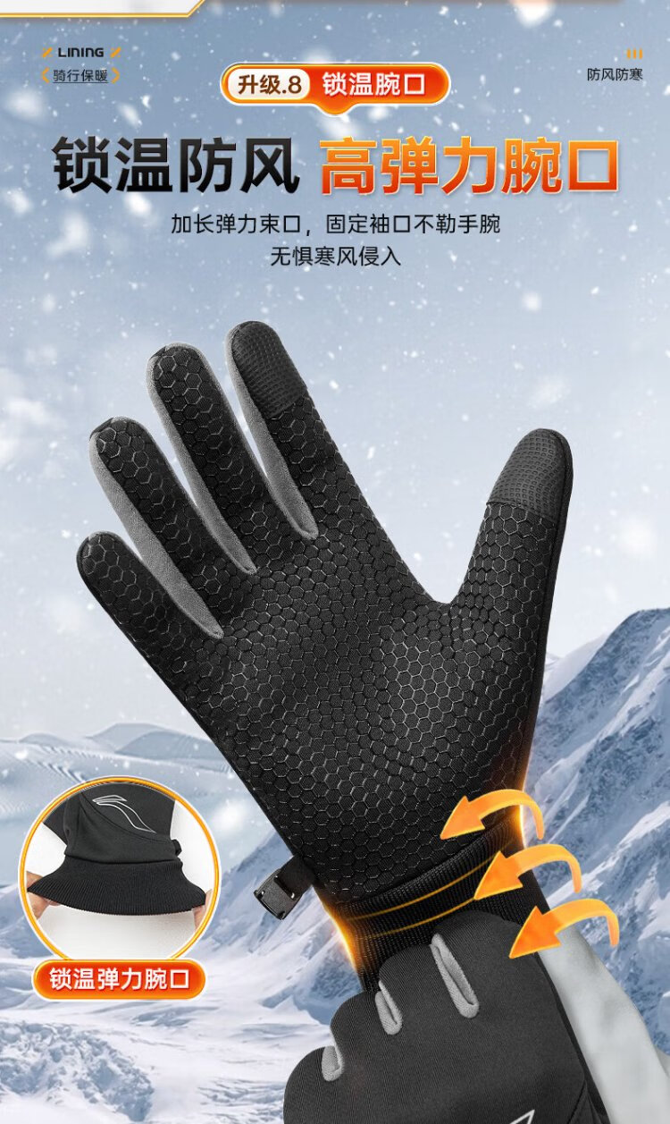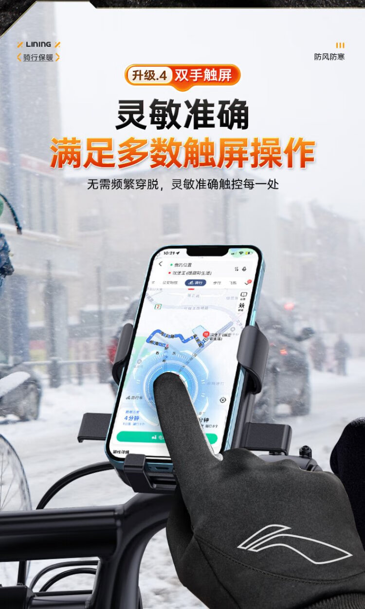 Li Ning Cycling Gloves Winter Warmth Windproof and Cold Riding Motorcycle Electric Bicycle Leather Outdoor Sports Touch Screen Skiing