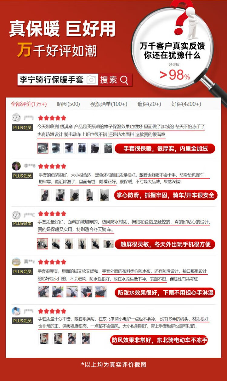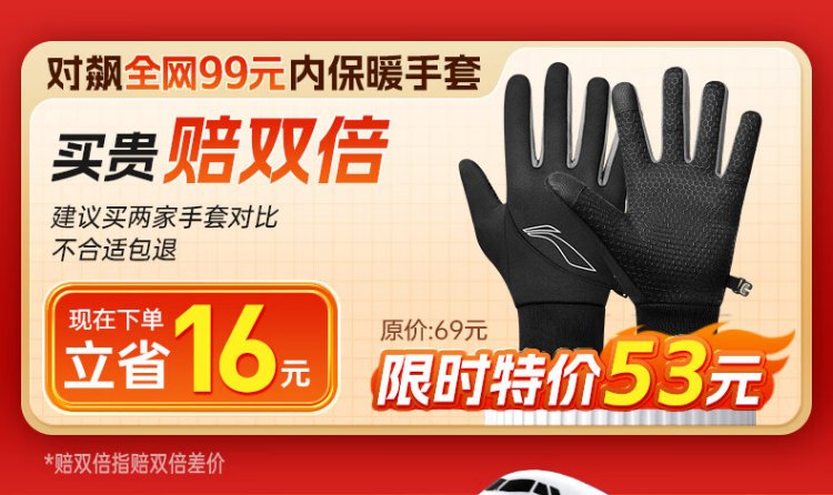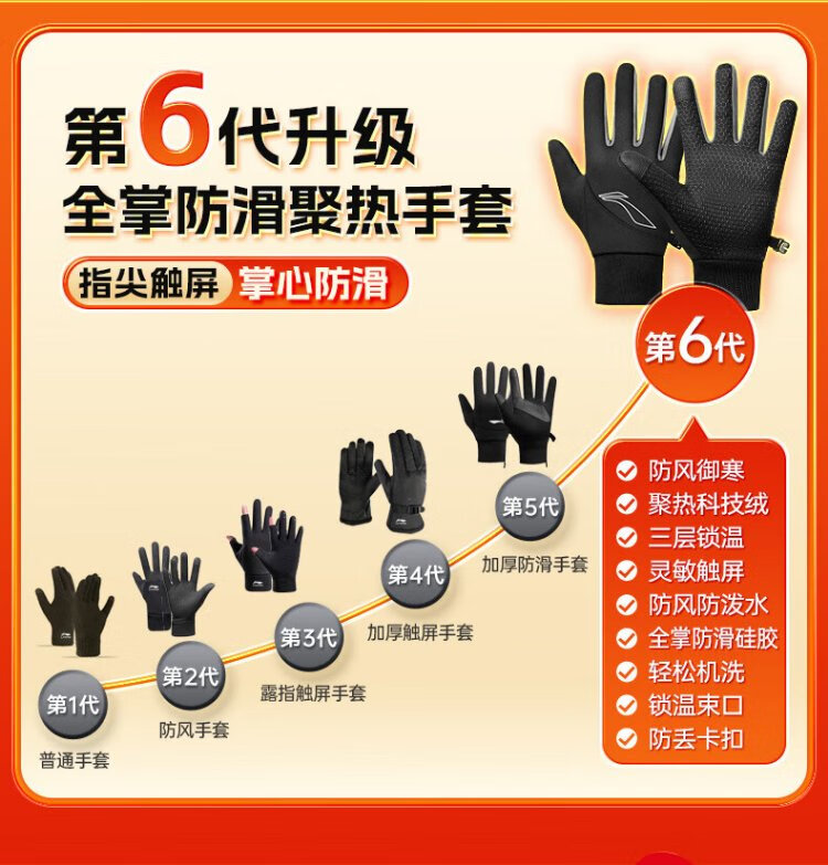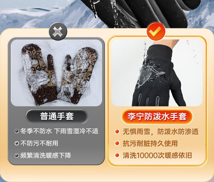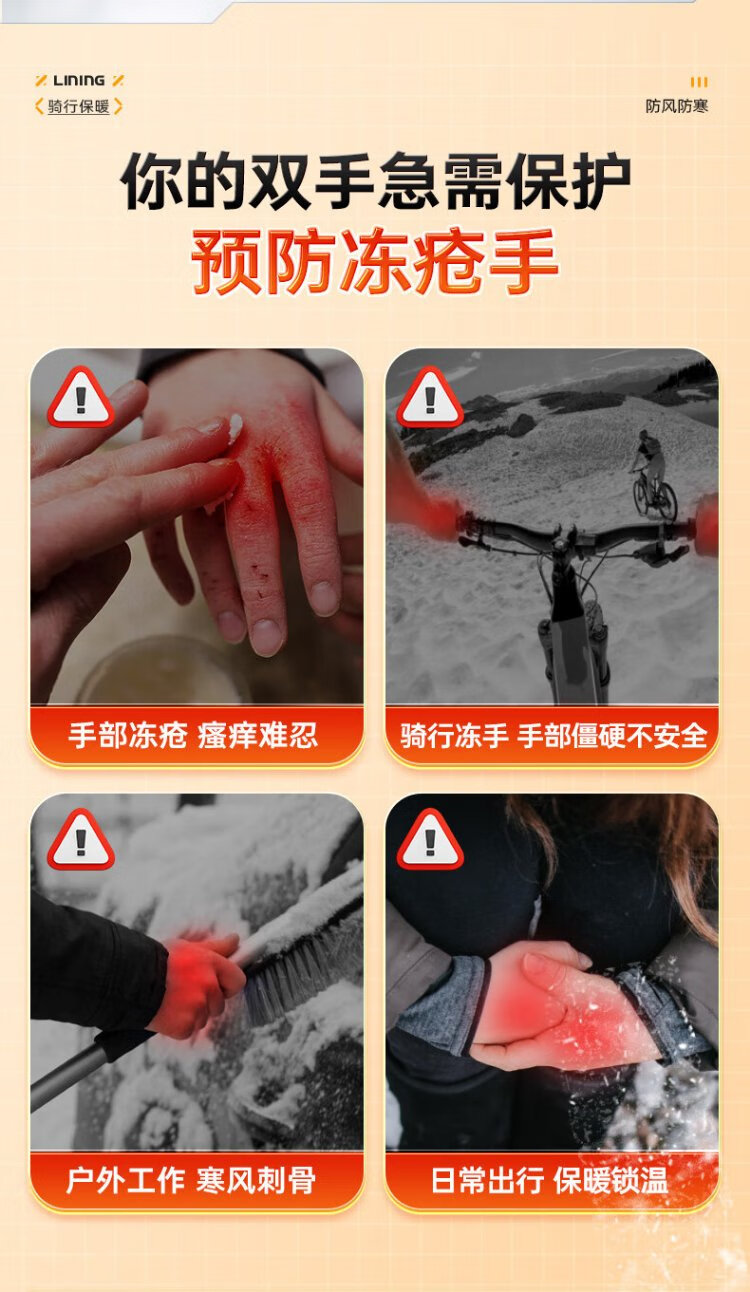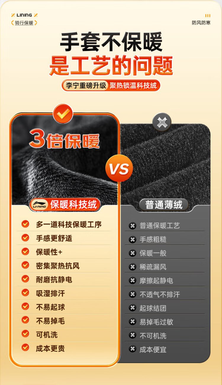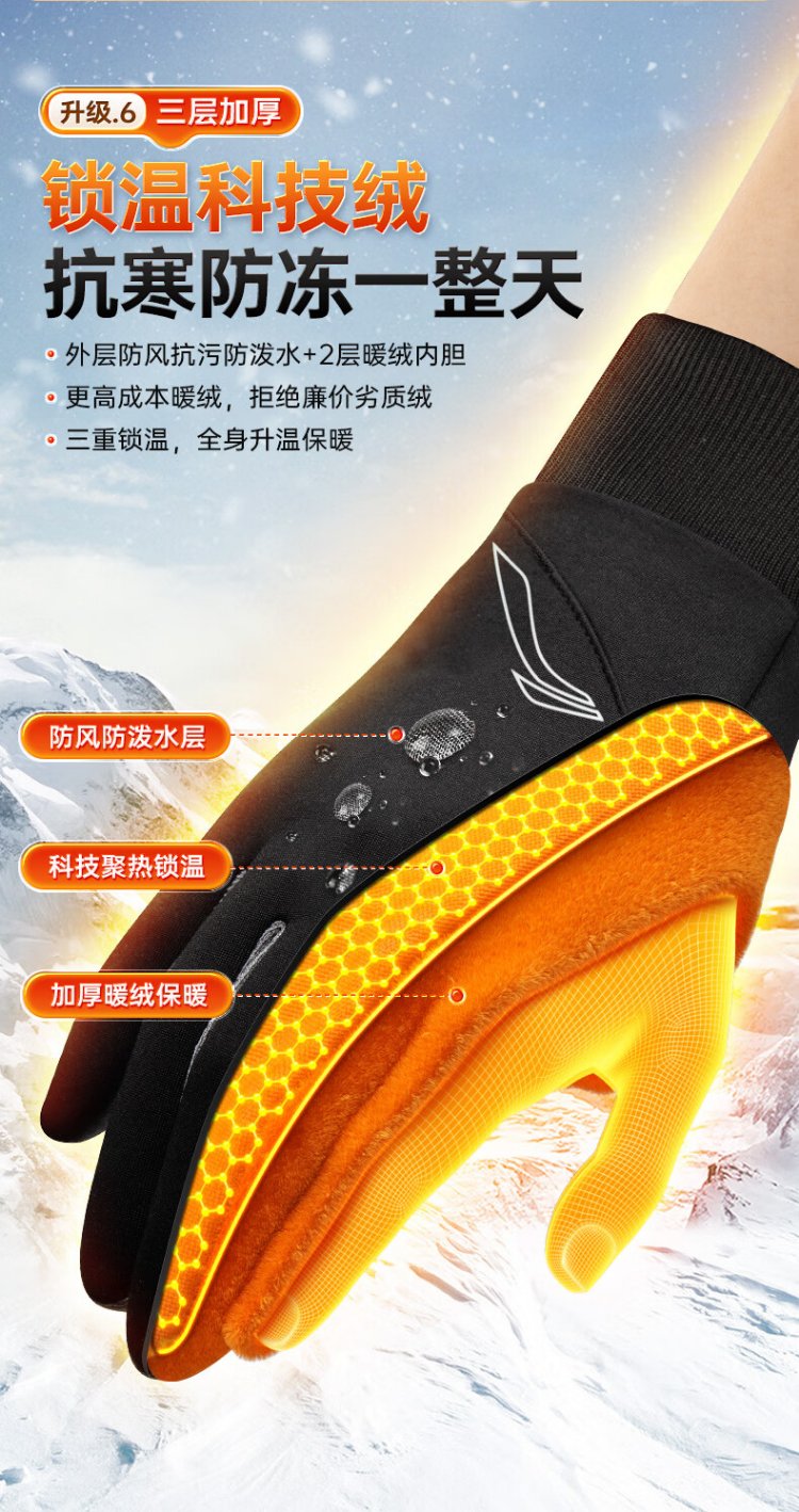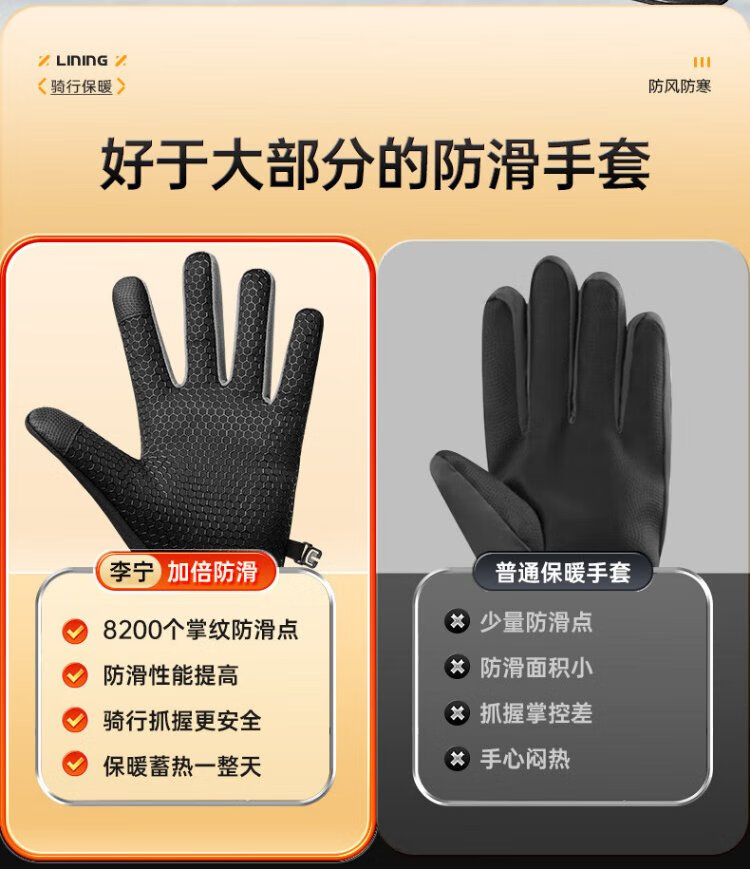 Li Ning Cycling Gloves Winter Warmth Windproof and Cold Riding Motorcycle Electric Bicycle Leather Outdoor Sports Touch Screen Skiing