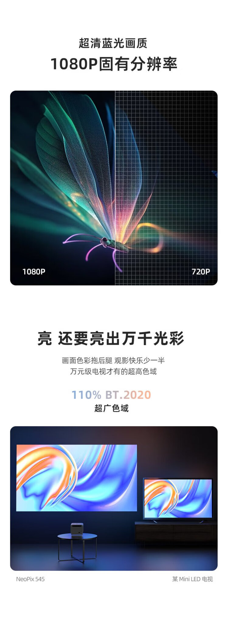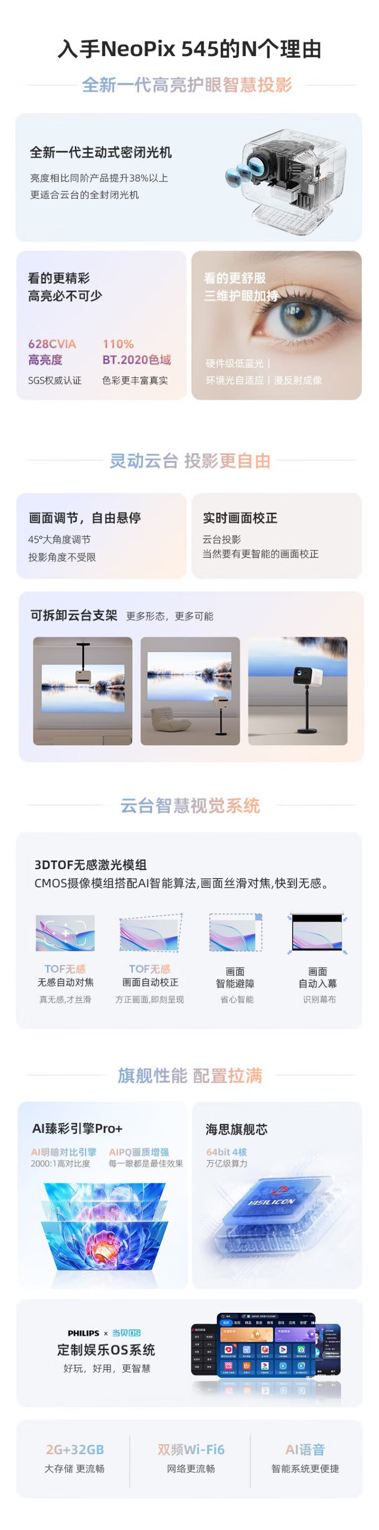 Philips (PHILIPS) NeoPix 545 projector home high-definition home theater TV office game projector (non-sensory autofocus, fully enclosed optical machine, ultra-clear image quality)