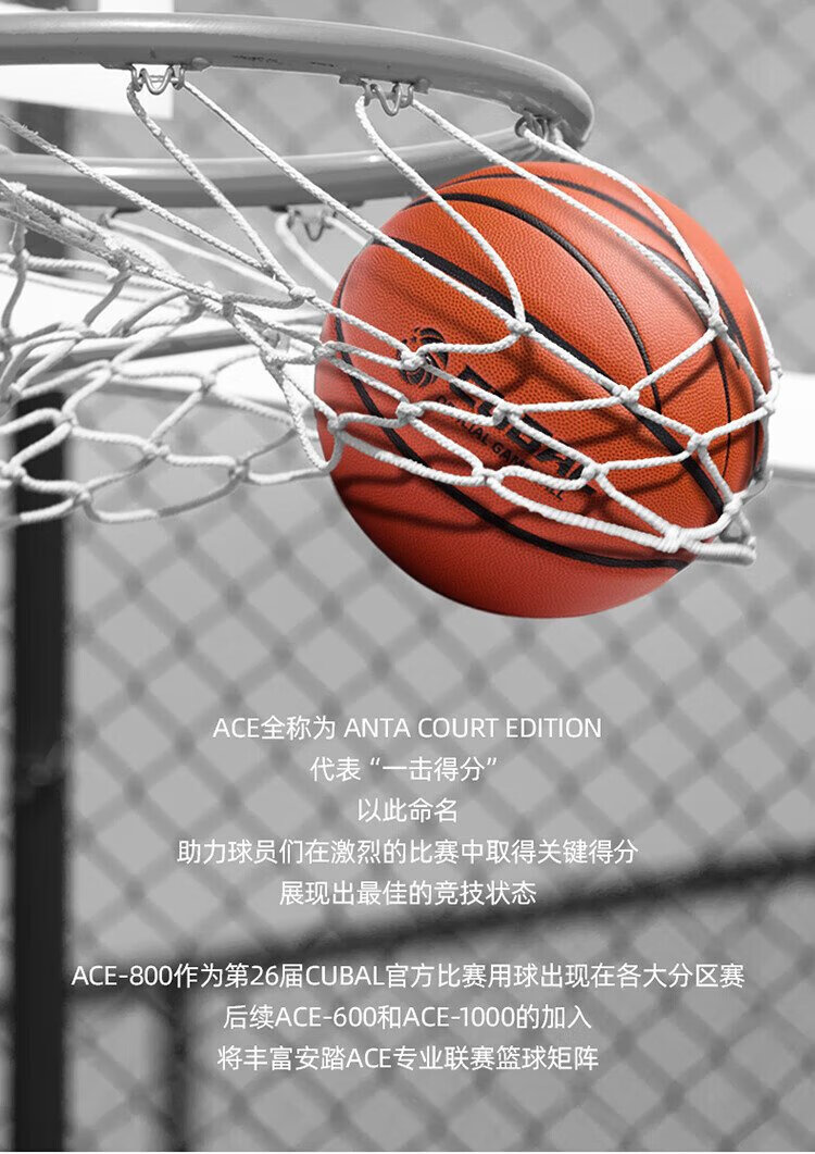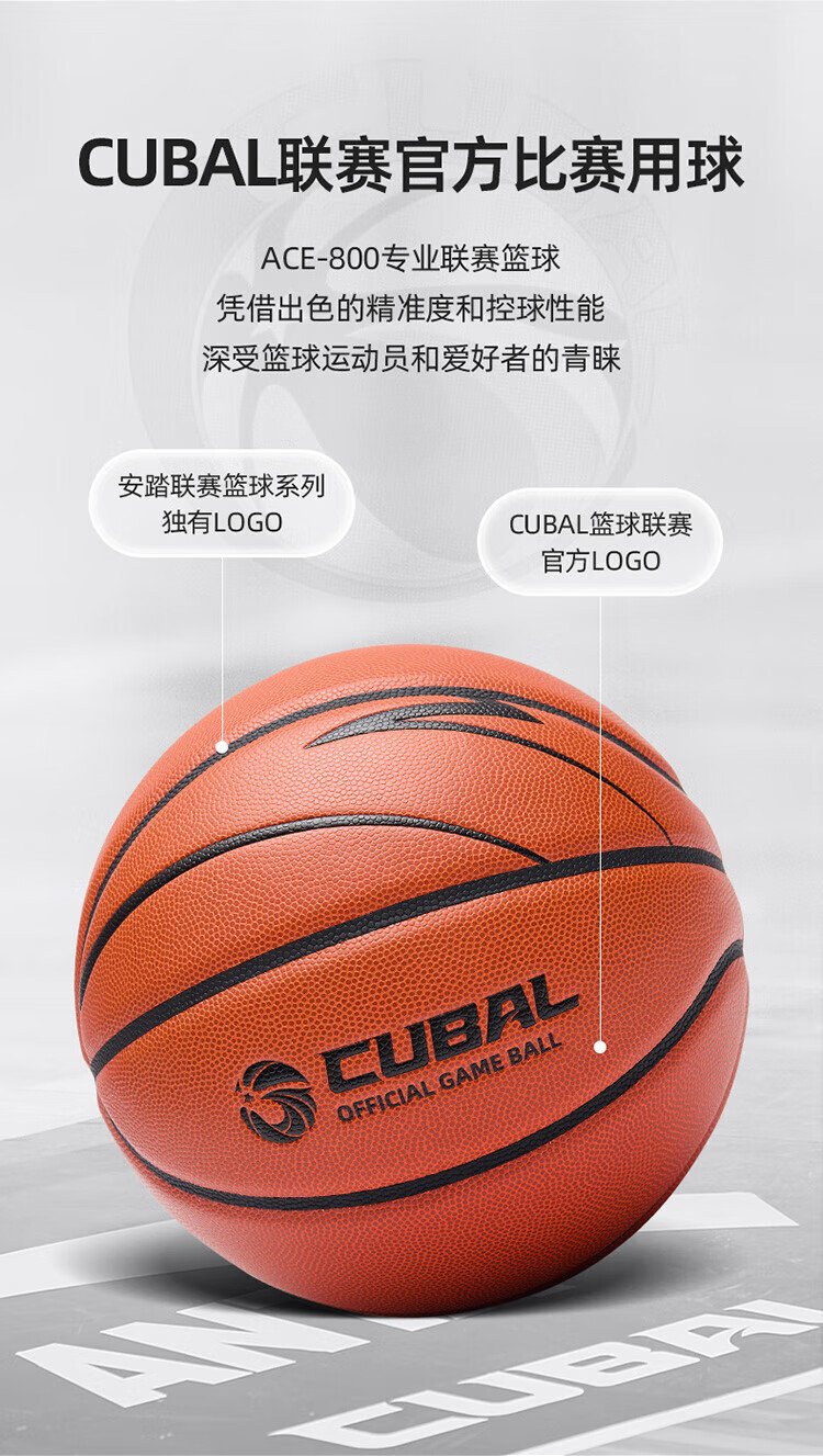 ANTA Basketball No. 7 Basketball ACE-800 Series Professional Superfiber PU Basketball CUBAL Official Game Ball