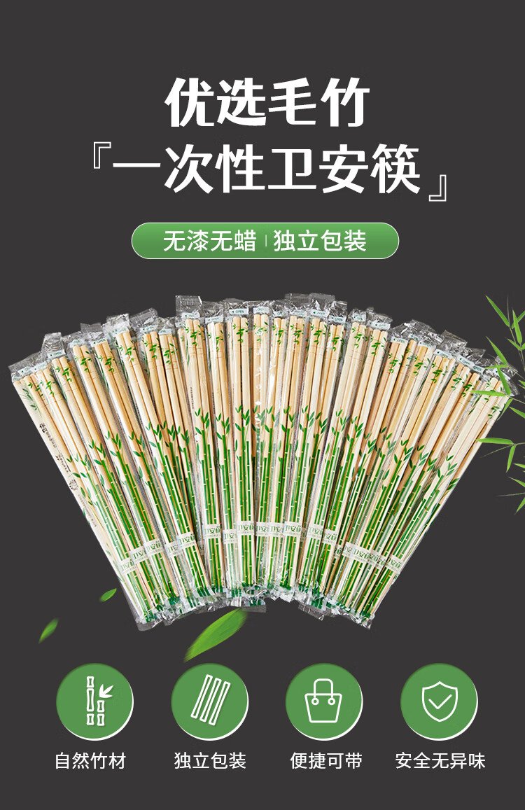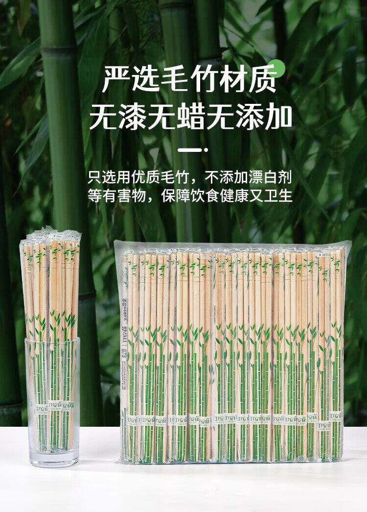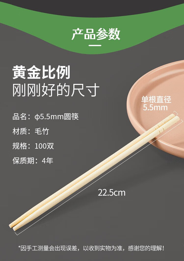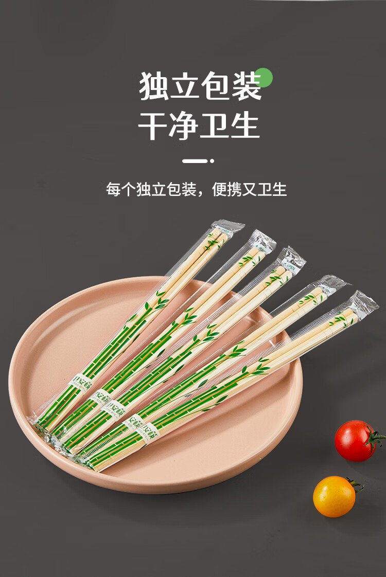 SHUANG YU Disposable Chopsticks Thick and Longer 5.5mm Independently Packed Round Chopsticks 100 Pairs Convenient and Hygienic Bamboo Chopsticks for Hotels