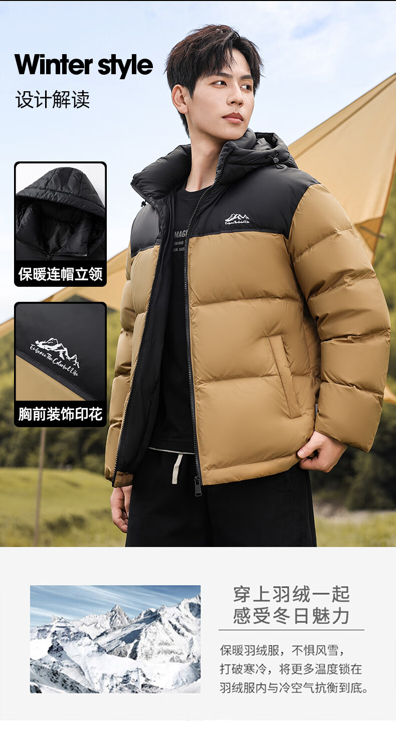 Мужская пуховик YAYA, короткая утолщенная куртка с капюшоном для молодежи и среднего возраста, зимняя повседневная куртка с цветными блоками 212F, черный 185