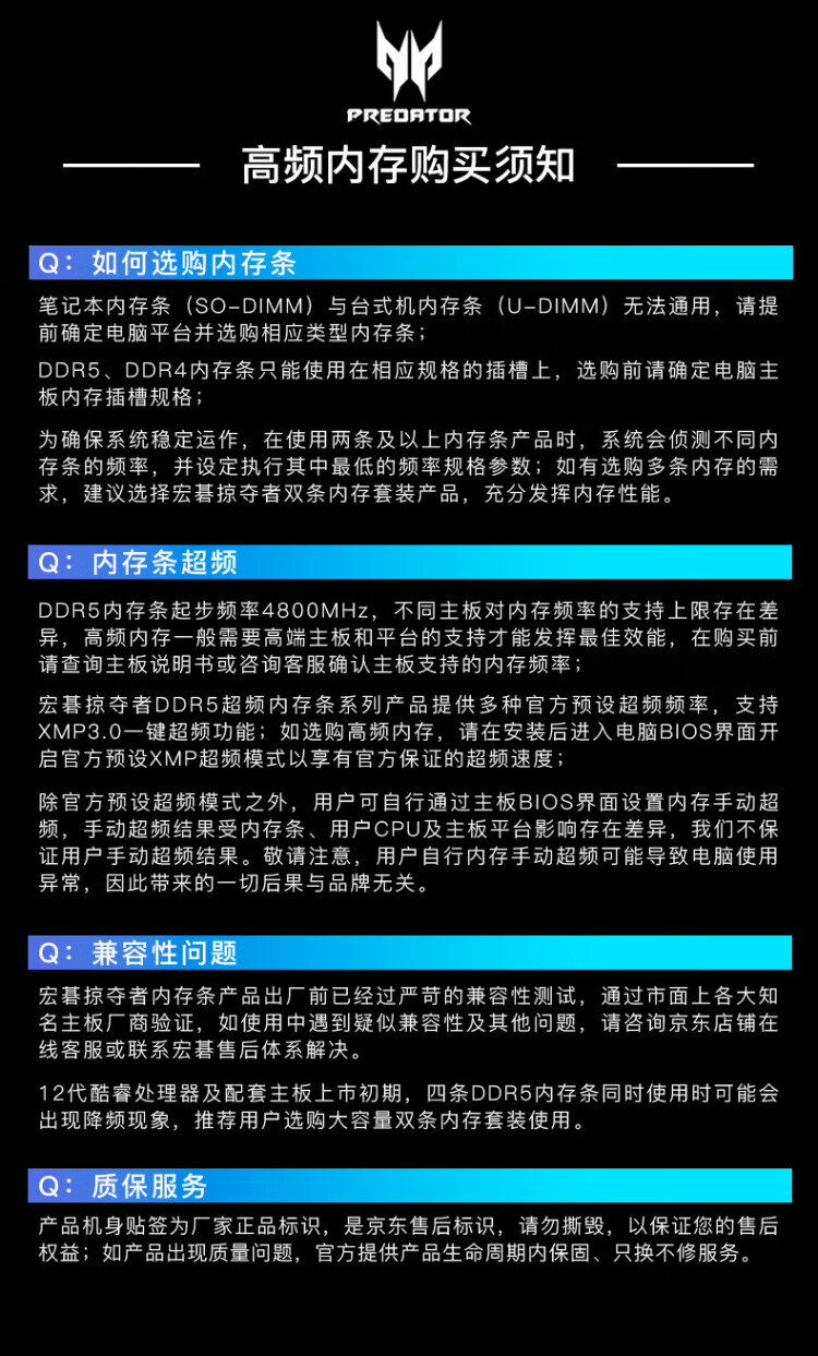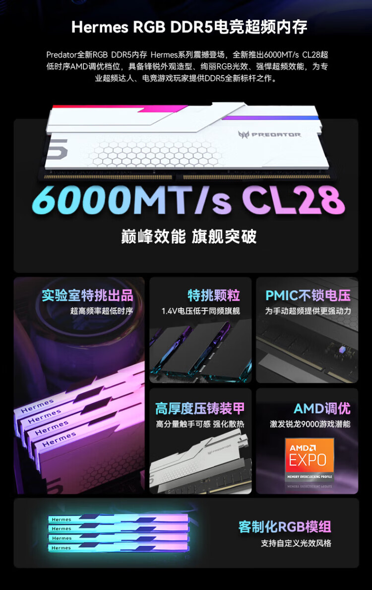 Acer PREDATOR 32G (16G 2) set DDR5 6000 frequency desktop memory stick Hermes Ice Blade series RGB light strip (C28) Shi Yaohei AI computer accessories