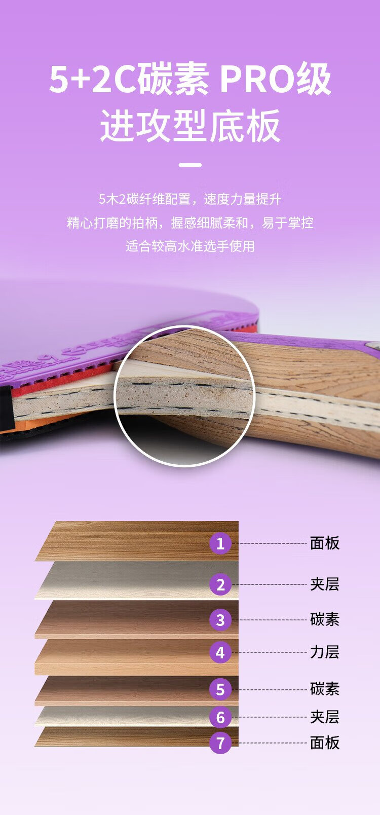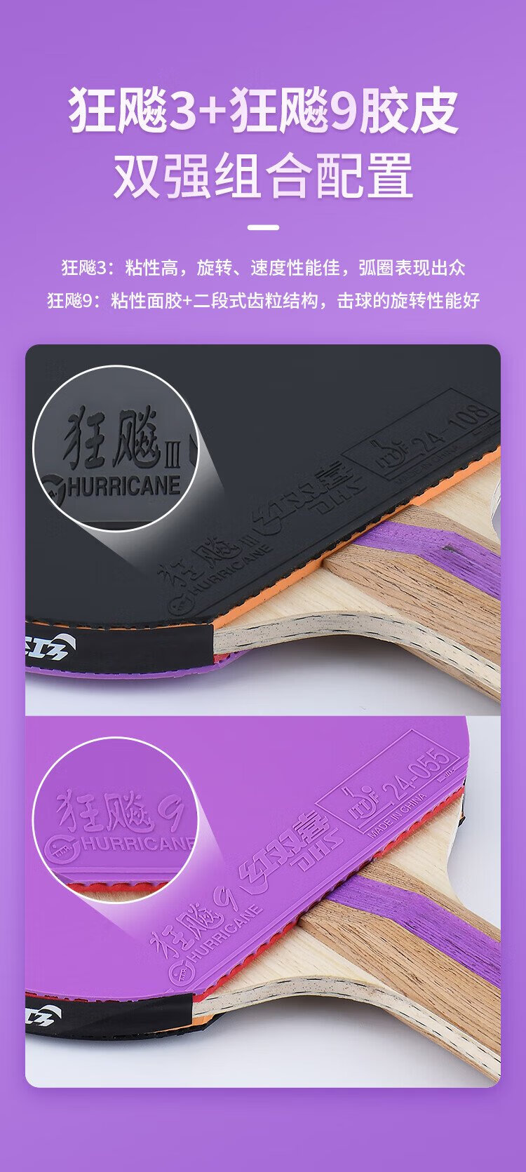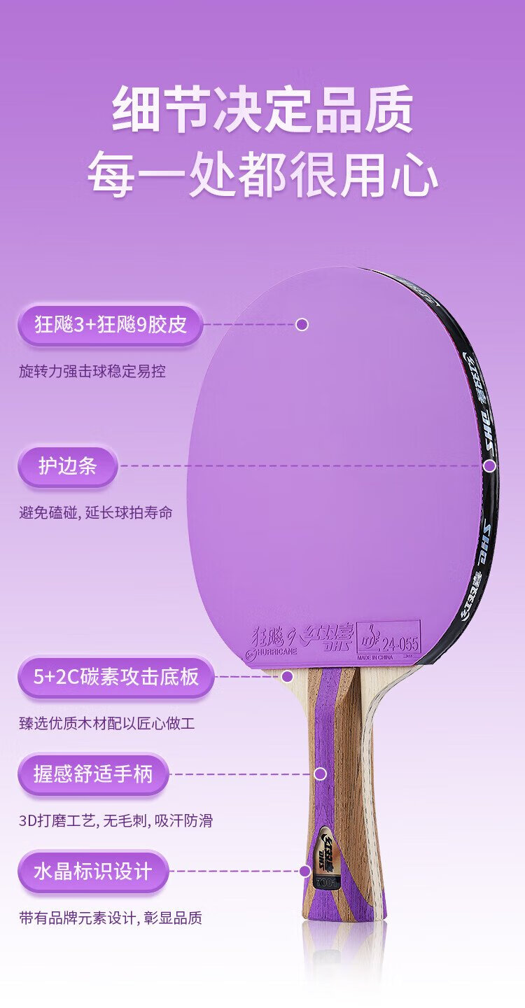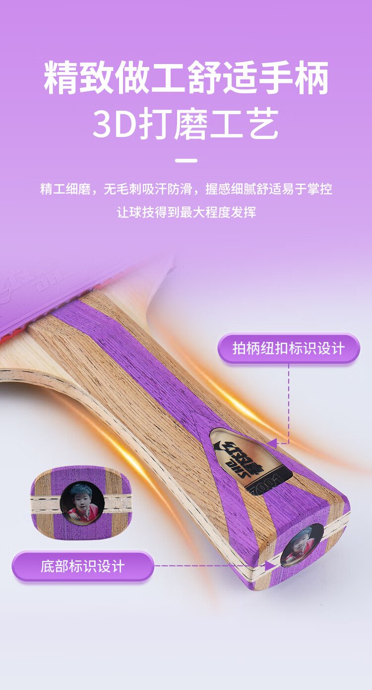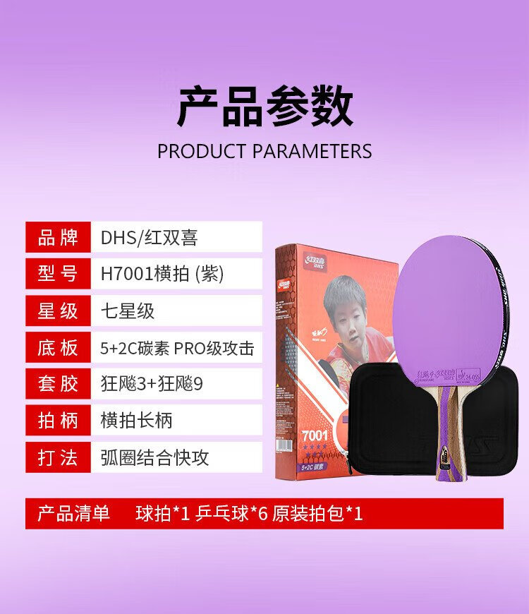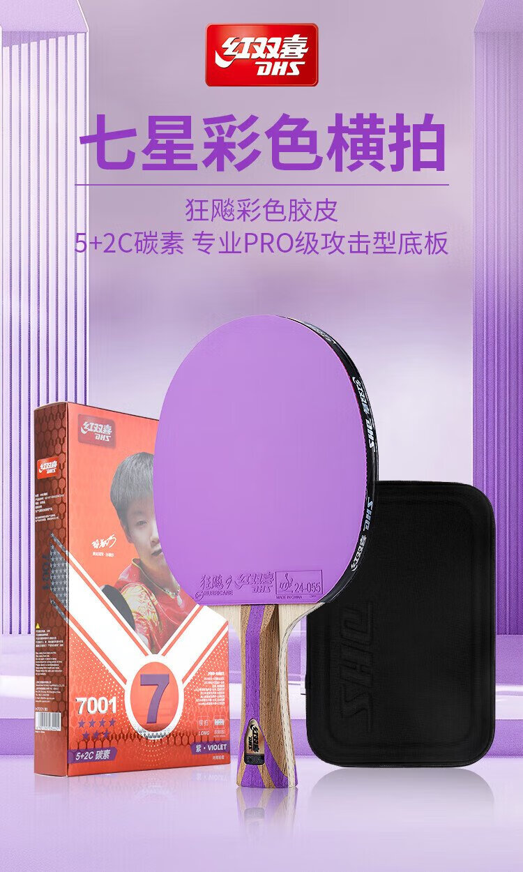Double Happiness (DHS) seven-star table tennis racket finished product double-sided reverse adhesive color rubber H7001 horizontal shot