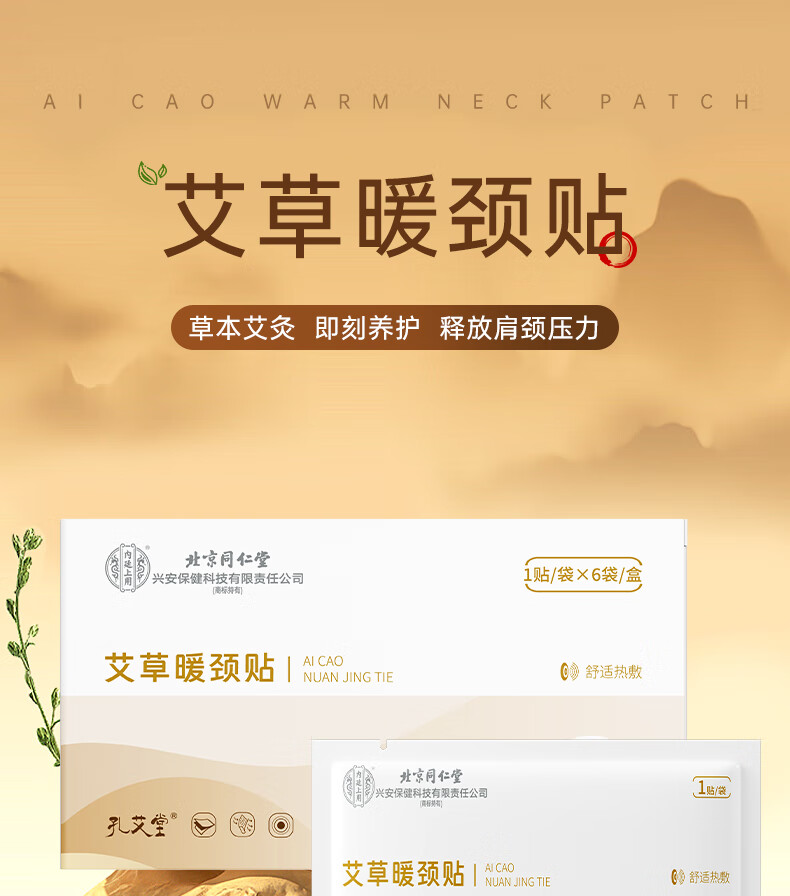 Tong Ren Tang Beijing Tong Ren Tang Mugwort Warming Neck Patch Moxibustion Cervical Fever Steam Patch Shoulder, Neck and Shoulder Hot Compress Warm Moxibustion Patch