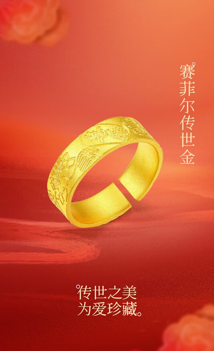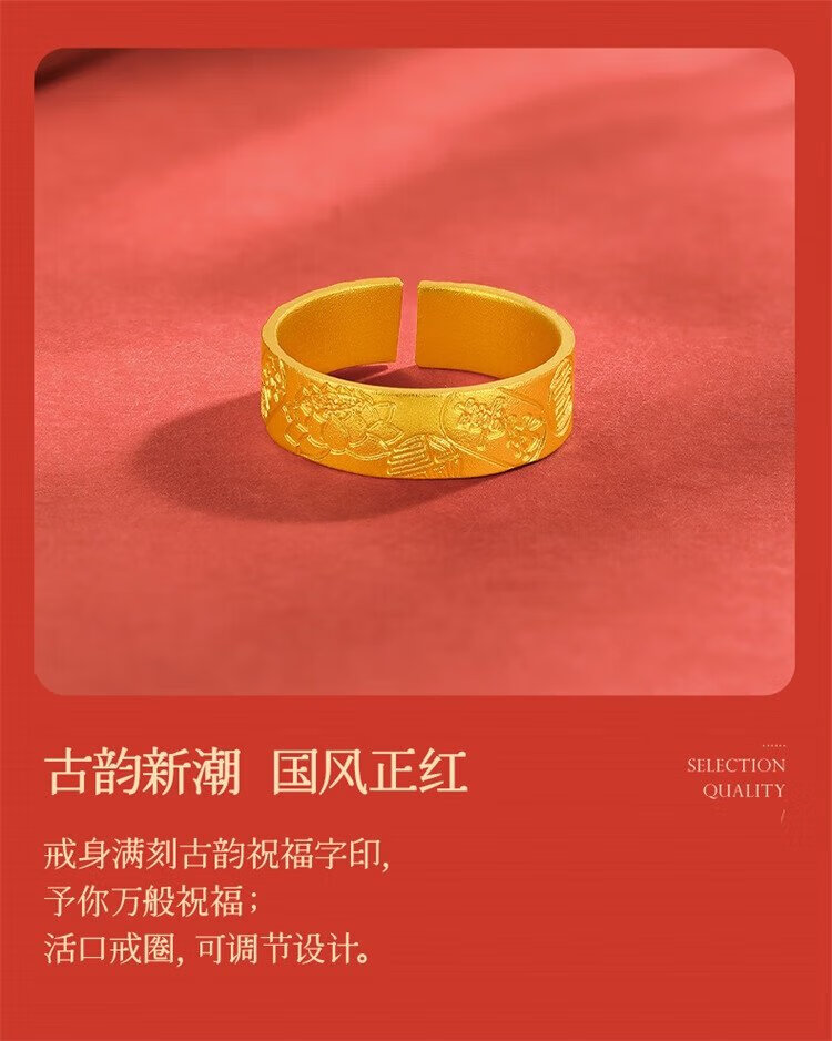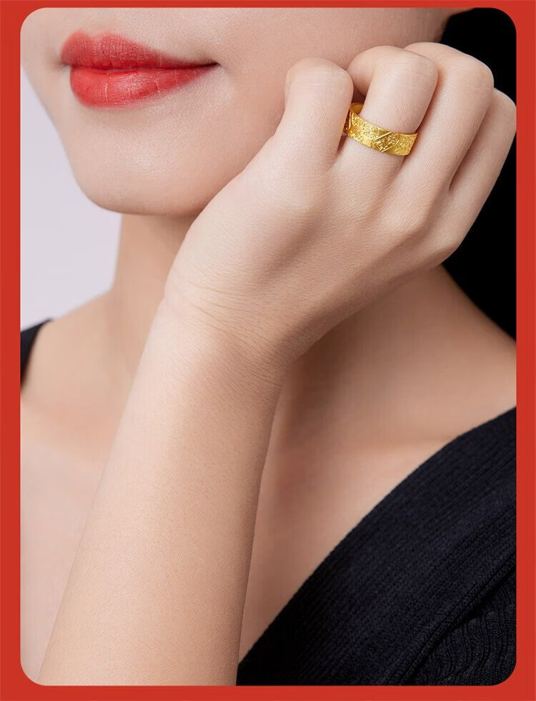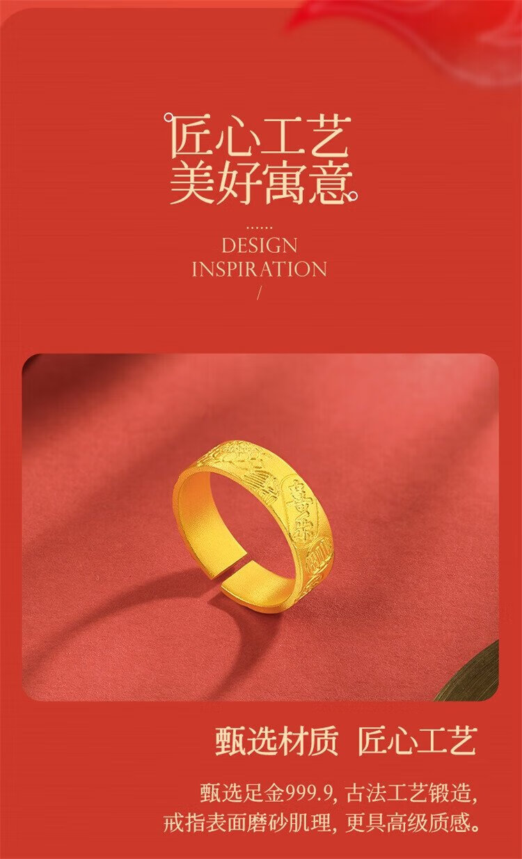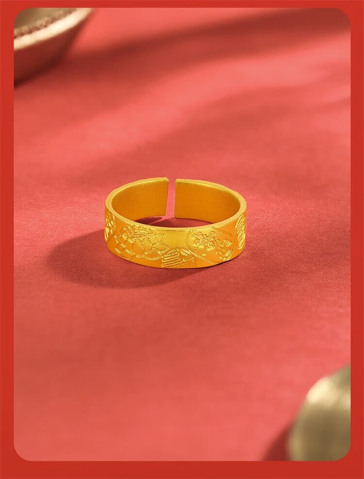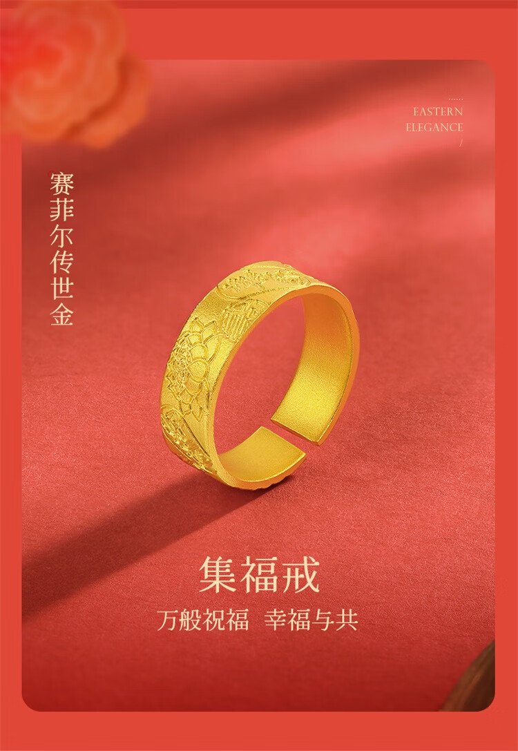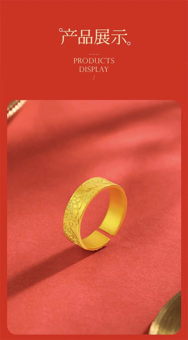 Saphire gold ring for men and women pure gold 999.9 ancient auspicious gold fortune ring open ring about 5.15 grams