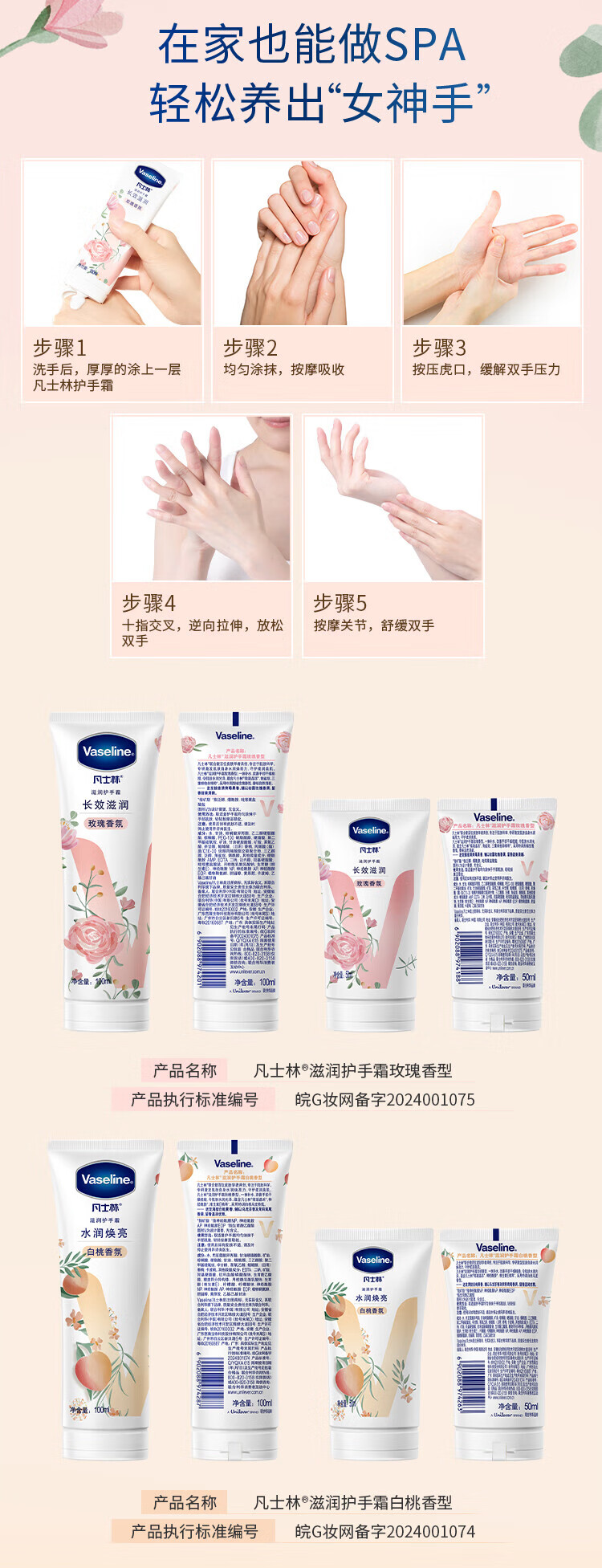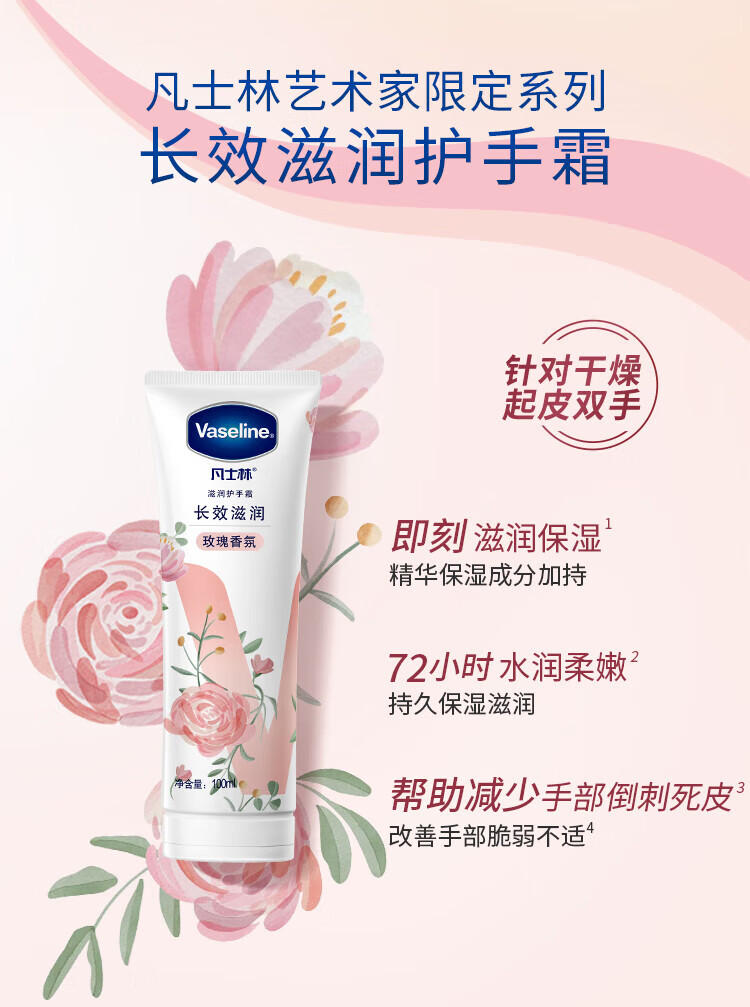Vaseline Limited Edition Hand Cream 100ml Rose Fragrance Moisturizing Hand Care Long-lasting Fragrance