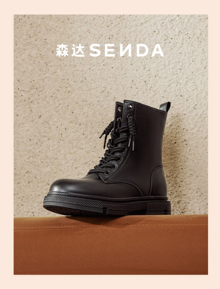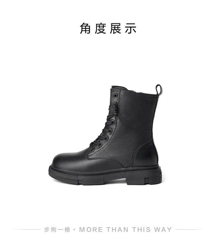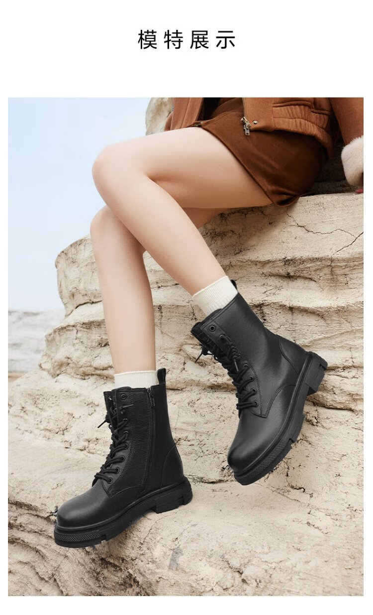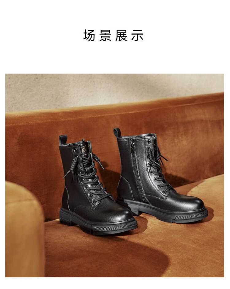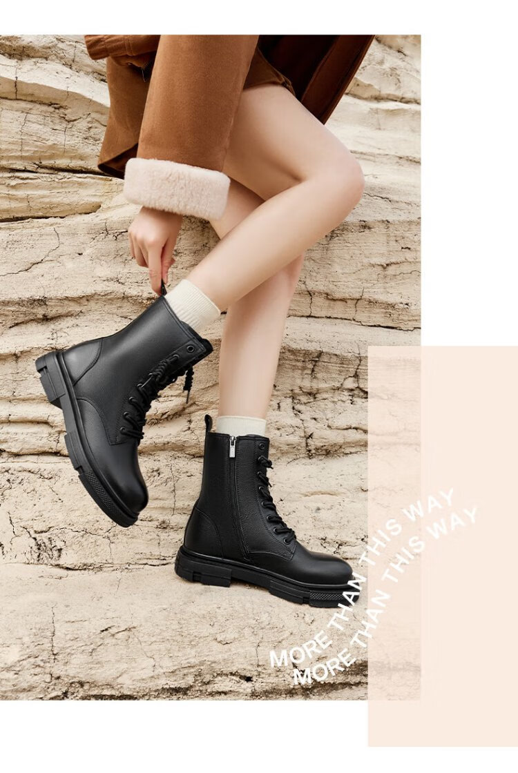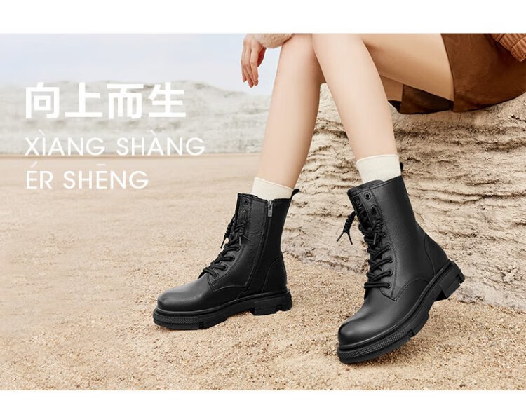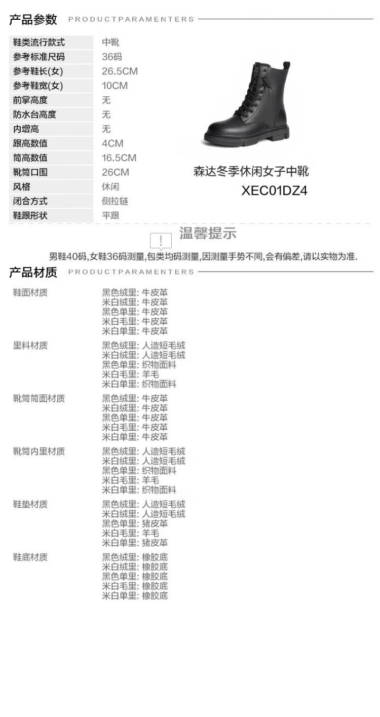 Senda Martin boots women's shopping mall same style cowhide mid-calf leather boots XEC01DZ4 black velvet lining 35